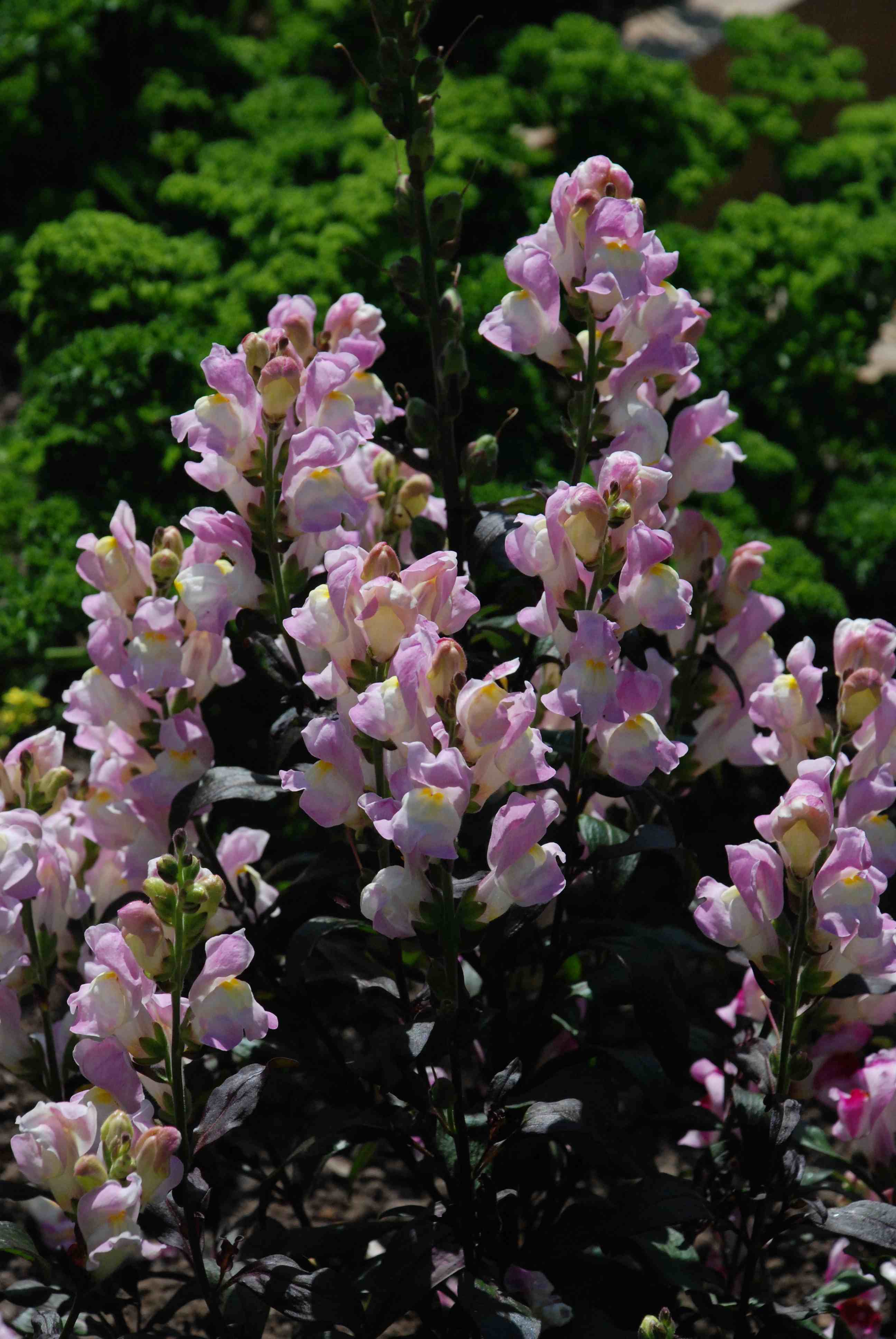 Snapdragons (antirrhinum) are among the best-loved of all flowers. We all get to know them when we are children and as a child I loved playing with the flowers; pinching the sides so they opened their mouths. This opening action is the flower’s clever way of making sure they get pollinated properly and preventing nectar and precious pollen from being ‘stolen’ by insects that are unable to pollinate the flowers. The anthers (that produce pollen) and stigma (that accepts the pollen to ensure seed production) are situated at the top of the flower and small insects would be able to get to the nectar at the back of the flower without doing the plant any good. So only bumblebees are big and strong enough to get in when they land on the base of the flowers and push their way in, transferring pollen, on their backs, to the stigmas. Clever eh!
