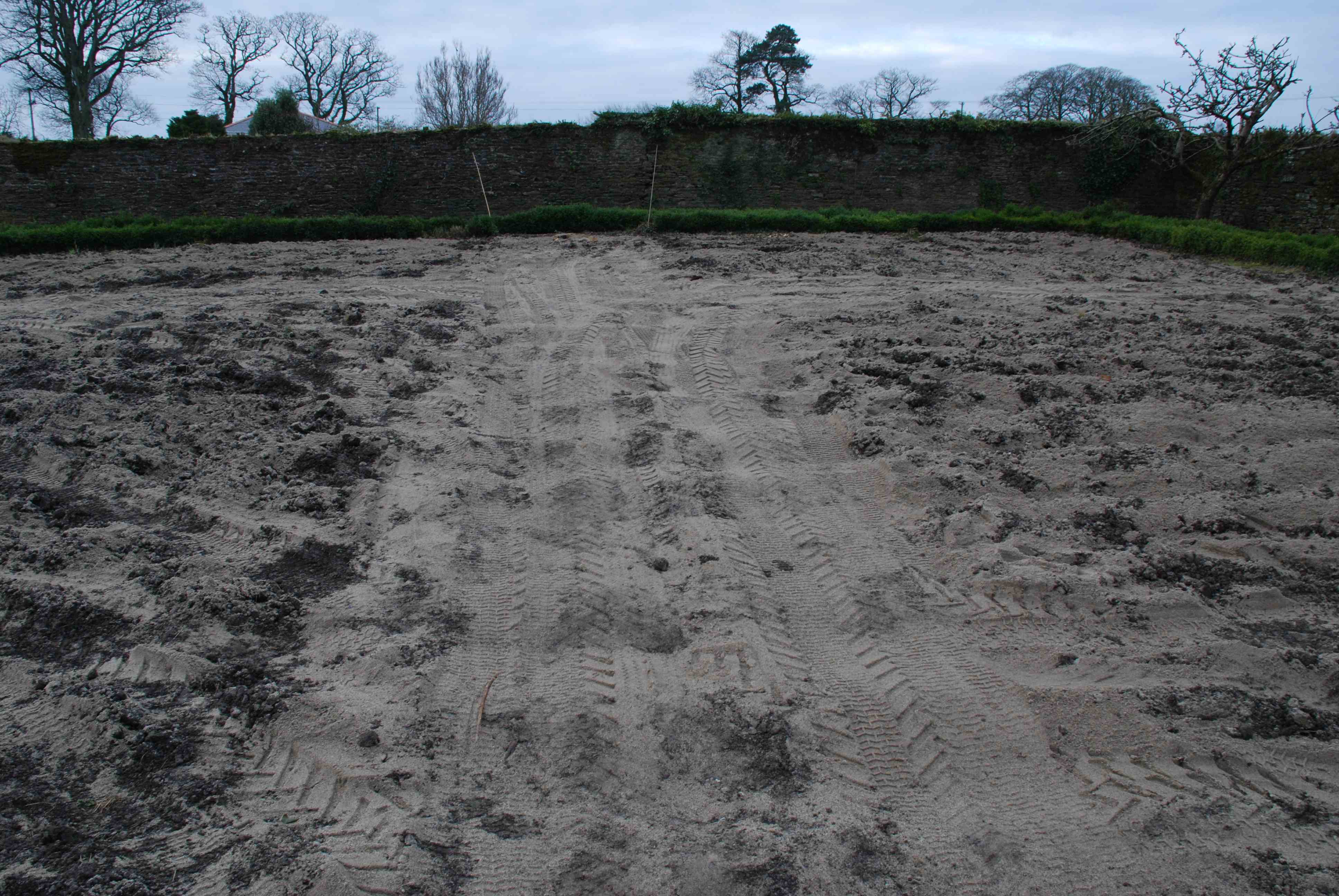 After rotavating the area was spread with coarse sand and then mushroom compost
