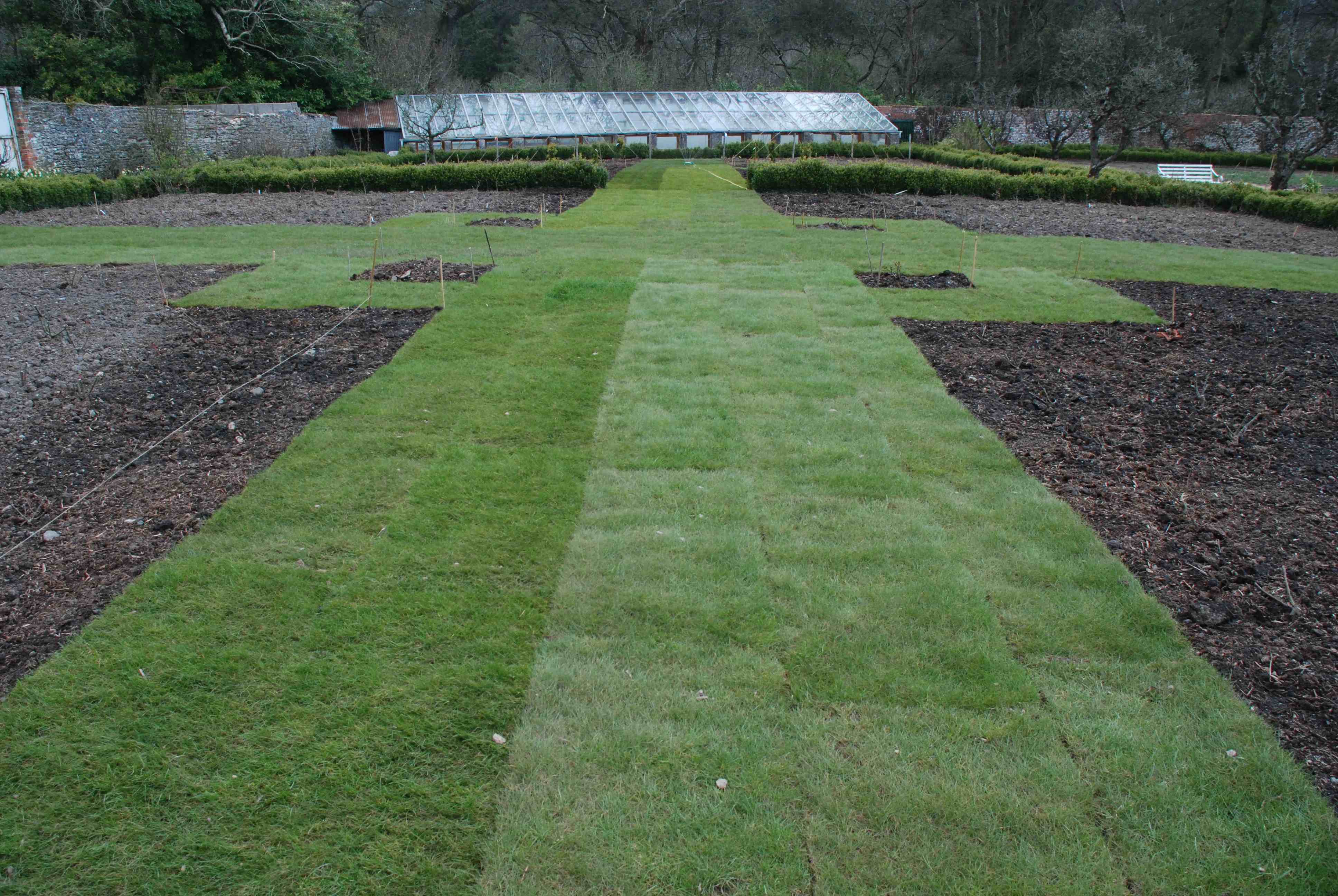 The turf ready for laying - it had to be done quickly