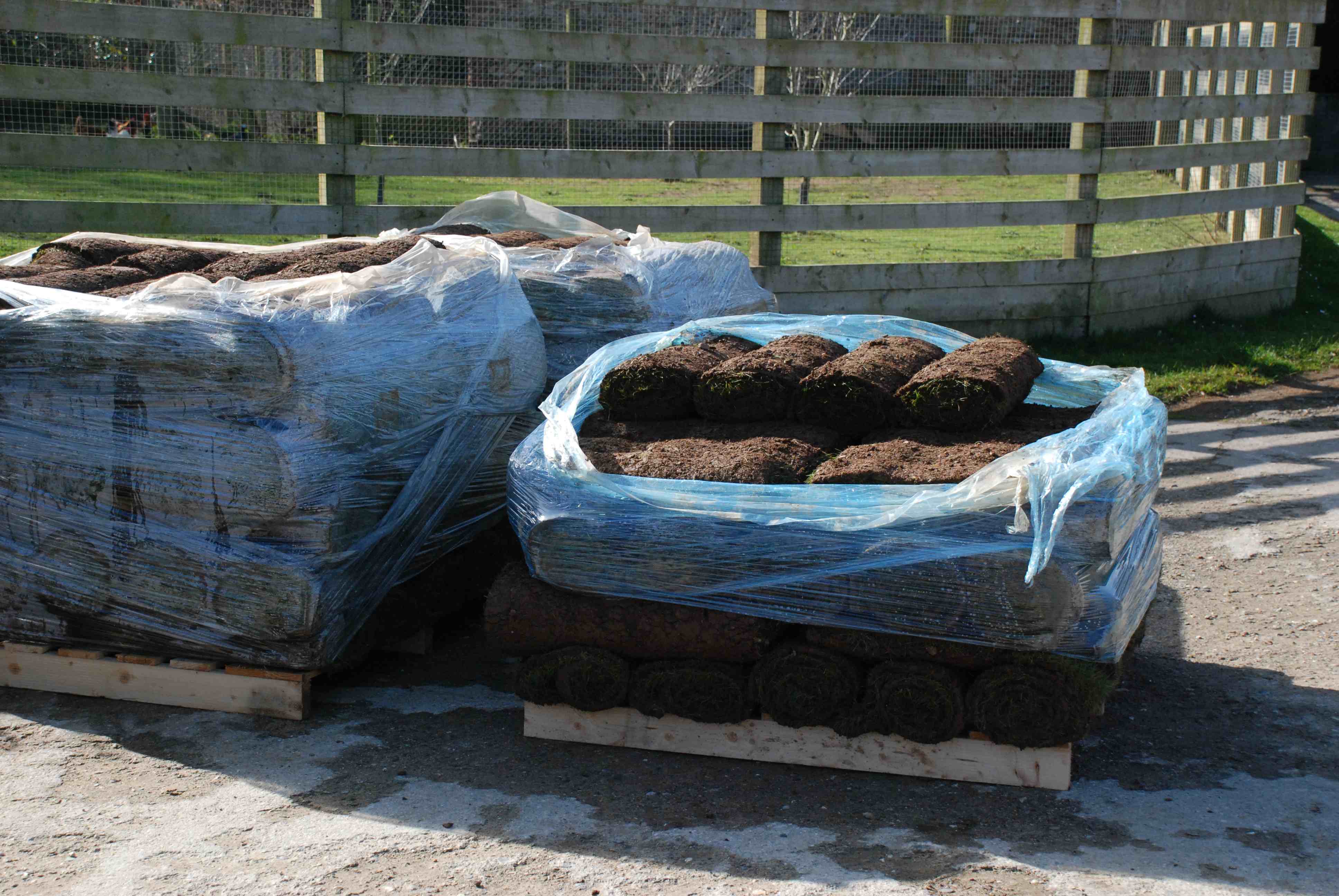 The turf arrived in some very wet weather but was laid in a day on the previously cultivated and raked and firmed soil.