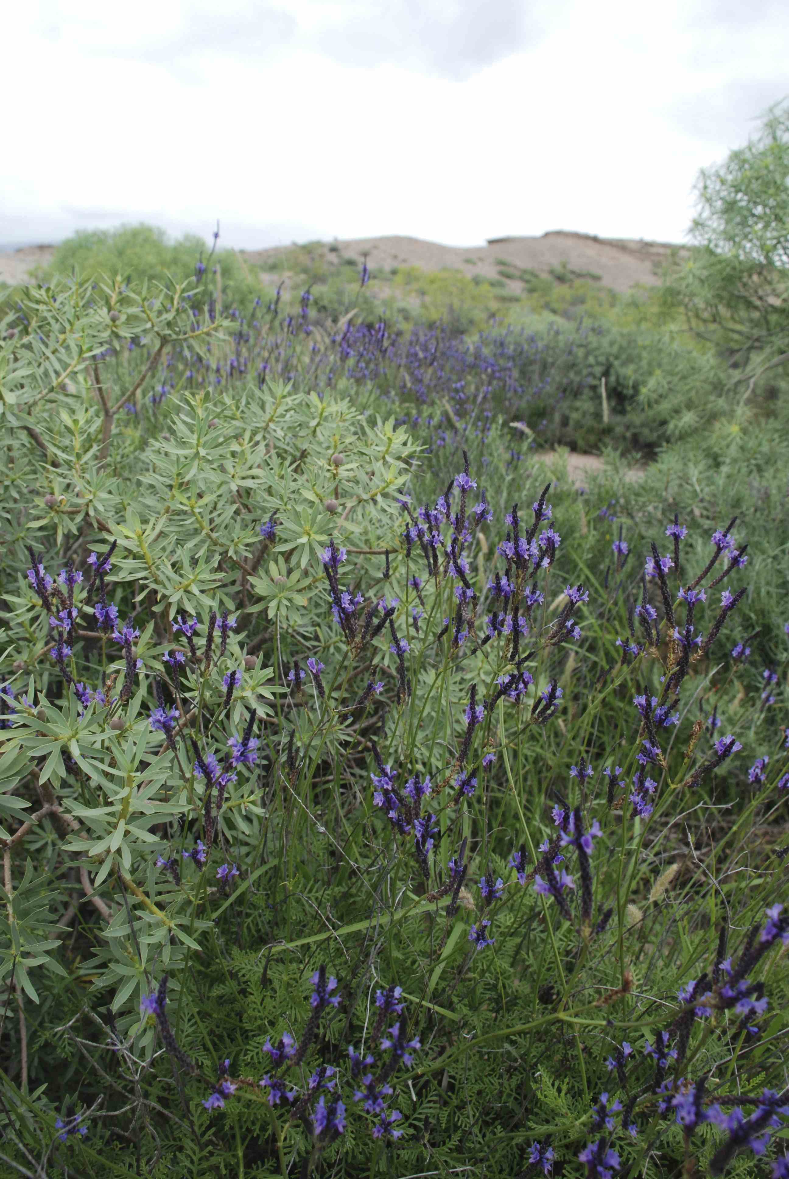 Canarian lavender with opuntia in the foreground. Opuntias are not native (all cacti are from the New World) but were introduced to establish the coccineal industry on the island)