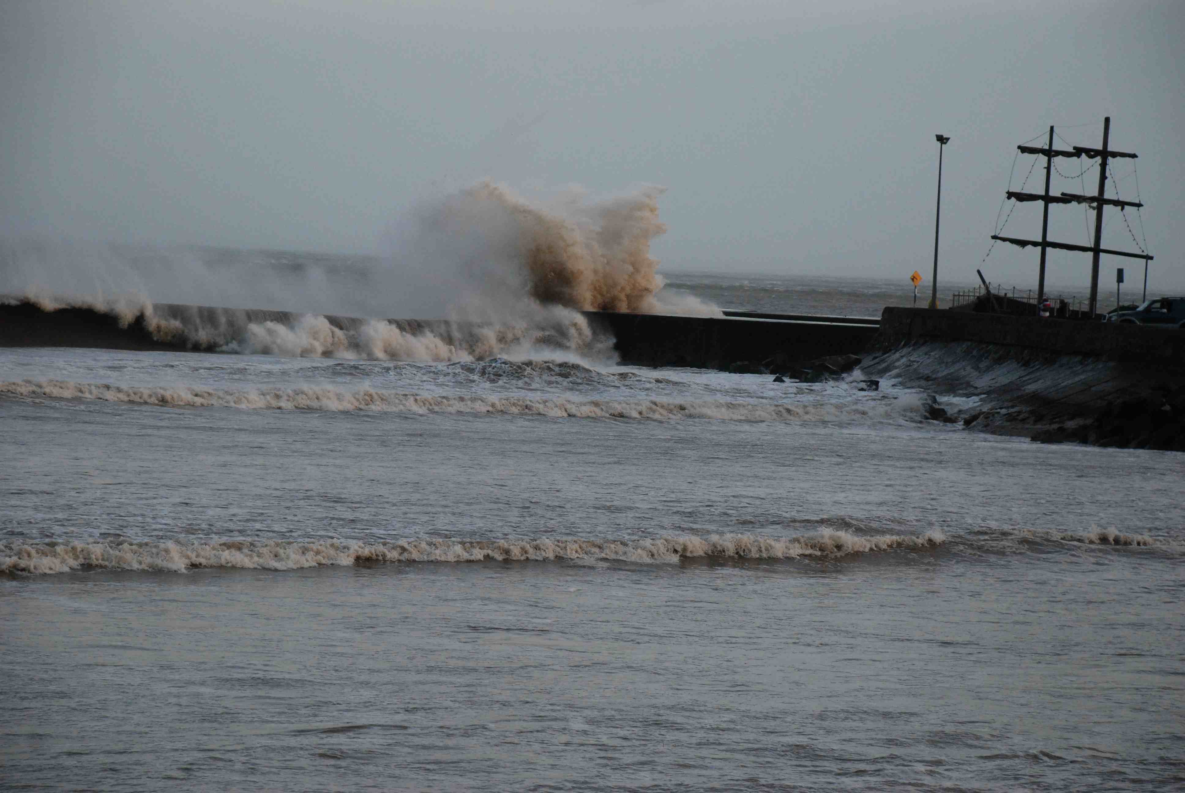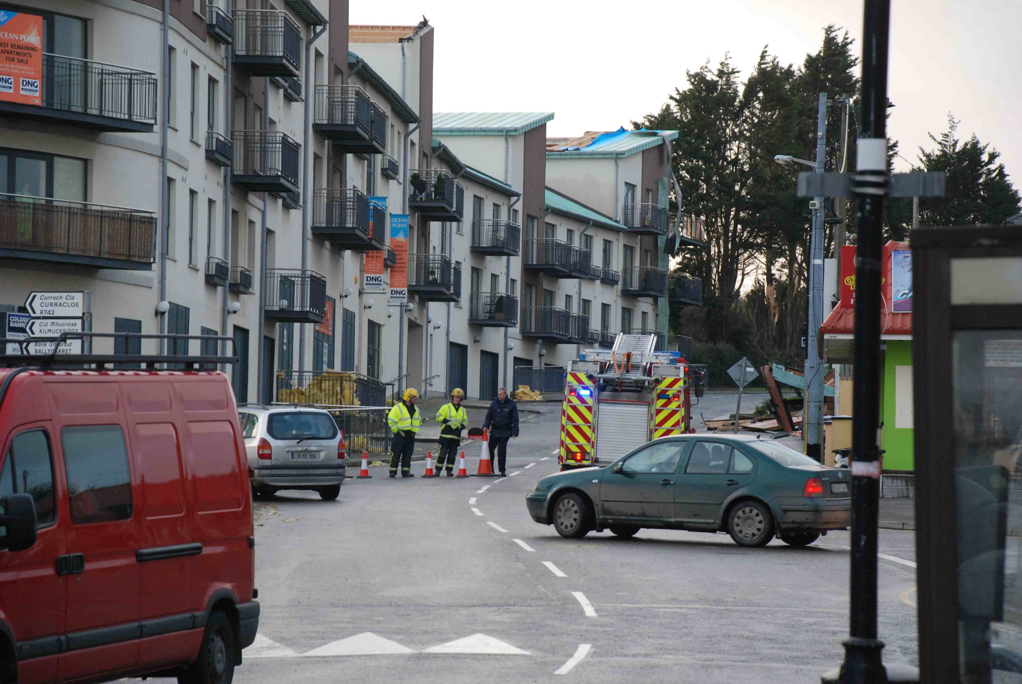 Down at Courtown harbour (I went mainly to go to the gym so I could get a shower – I have no power remember) the sea was wild. Overhead power lines were down and roads were blocked but the most dramatic scene of all was in the centre of town. Some apartments, built on the site where the much missed Tara Hall once stood – the subject of many affectionate memories – have lain mostly empty since they were built, although a few are occupied – a legacy of those ’Celtic Tiger’ years. I had heard someone say that the roofs had blown off and smashed into the filling station opposite but I had not realised that it was not just the roof covering but the roof! A huge section had blown off and onto the forecourt. How no one was killed I cannot fathom! Chunks of yellow insulation lay around the streets like sea foam on the beach. It is supposed to be calmer on Thursday, before the next storm hits.