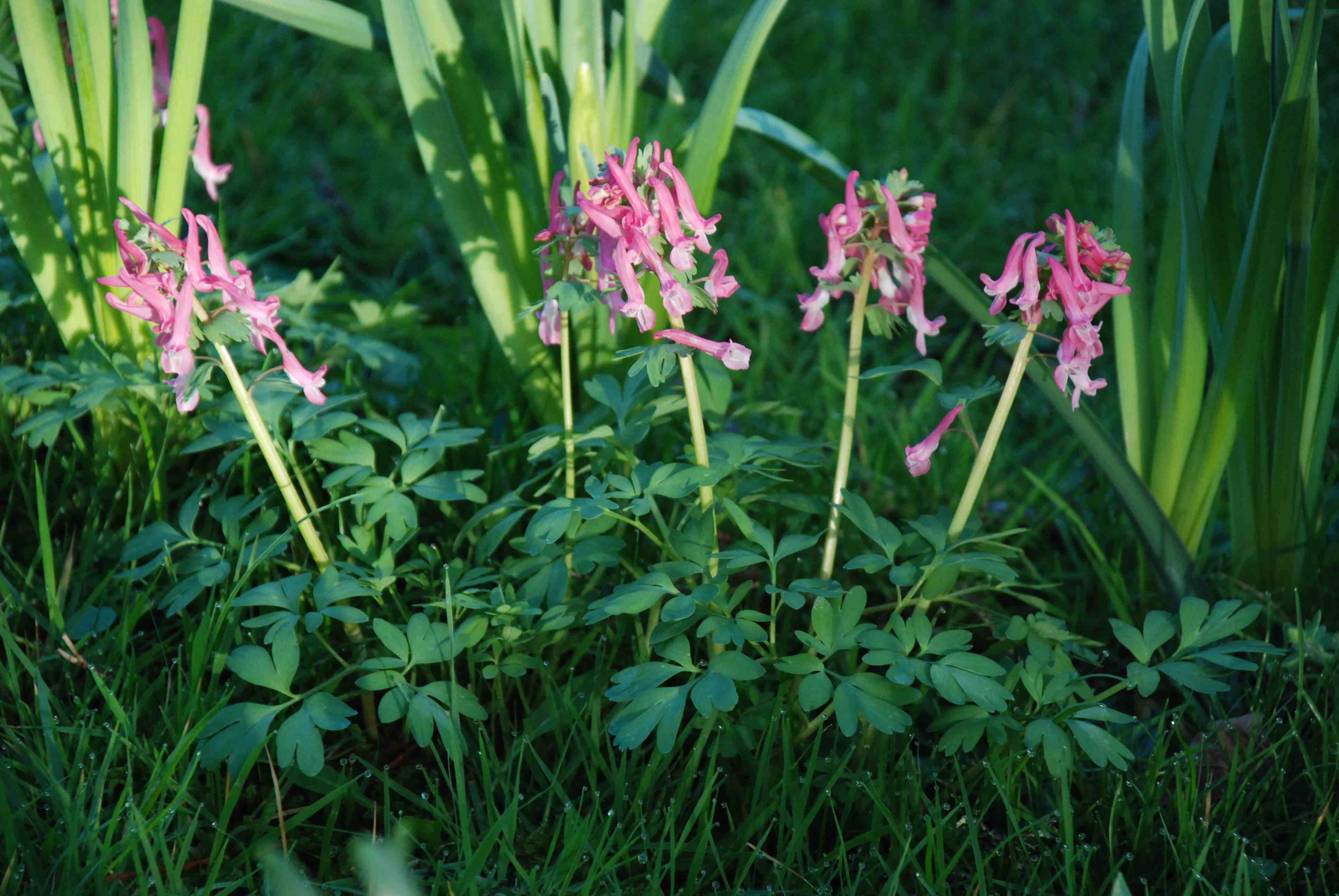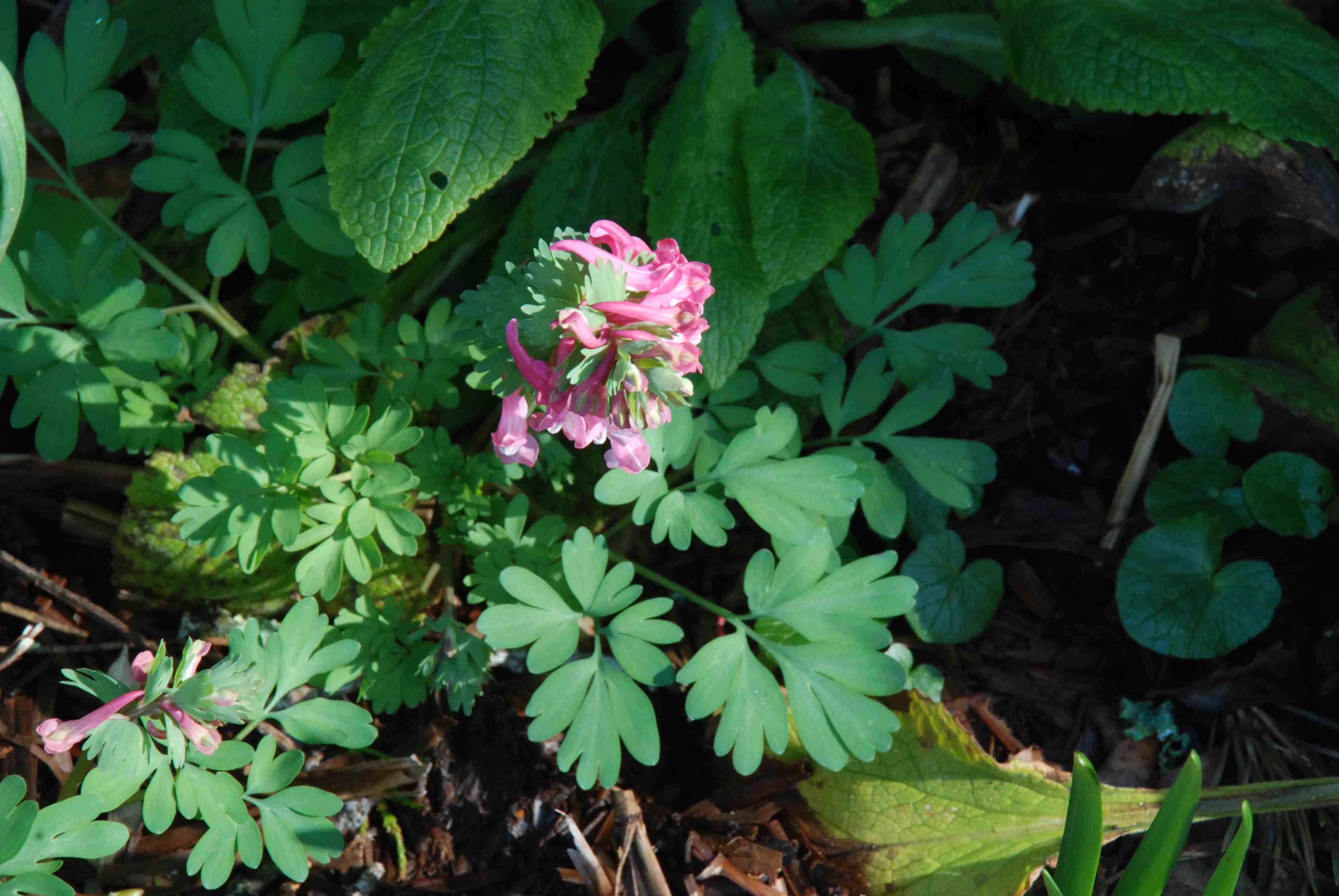 Corydalis solida is a great little plant. I first make its acquaintance decades ago when it was in a garden I was looking after. It grew in a wet meadow and had seeded into wet and dry parts and in spring was glorious, covering bare soil and growing in grass in sun and shade. It is a wonderful plant for naturalising and the smoky pink flowers above greyish, delicate leaves are a perfect combination.
