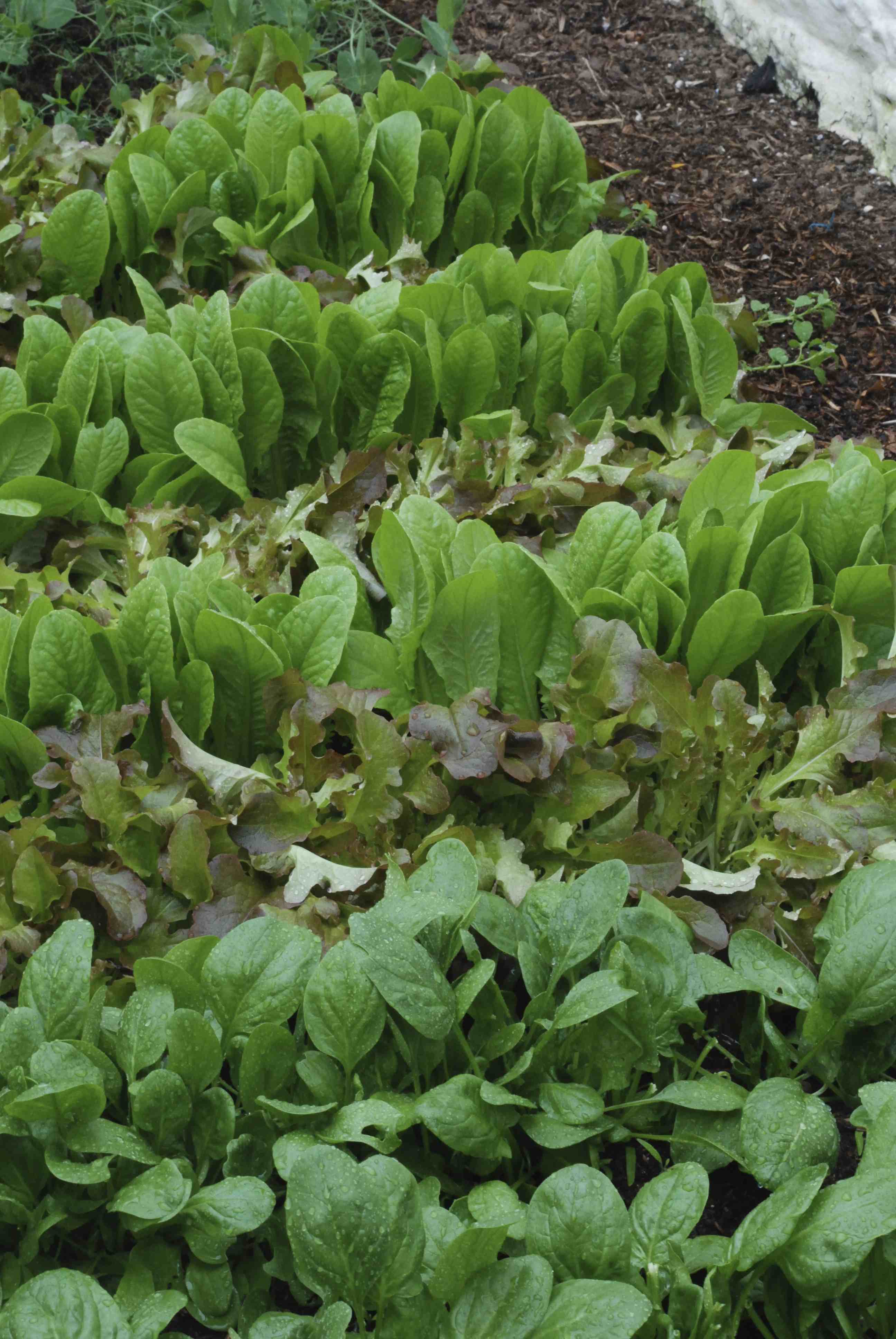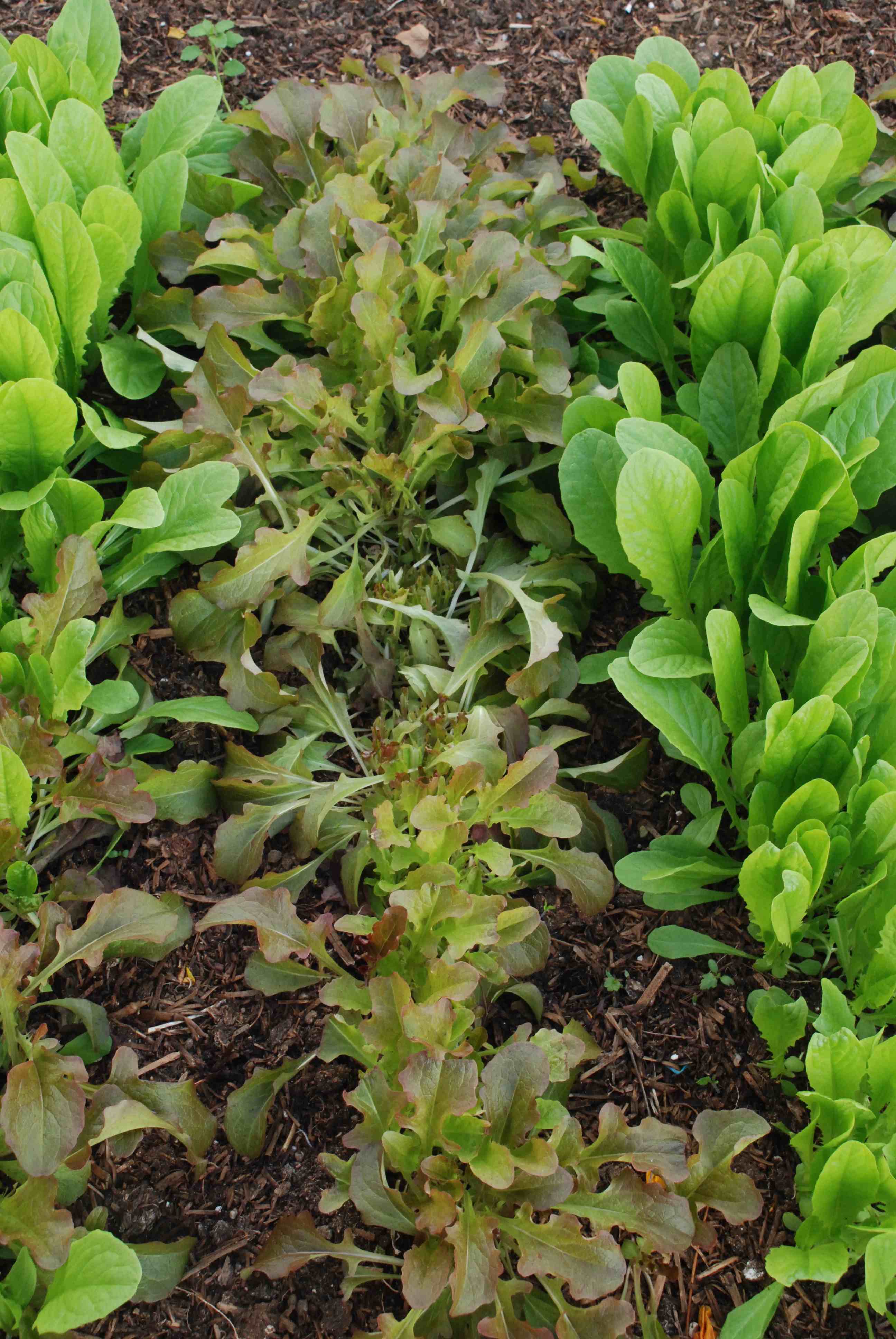 Here you can see where the red lettuce has been cut, a week ago with scissors, at the front of the row and the regrowth.