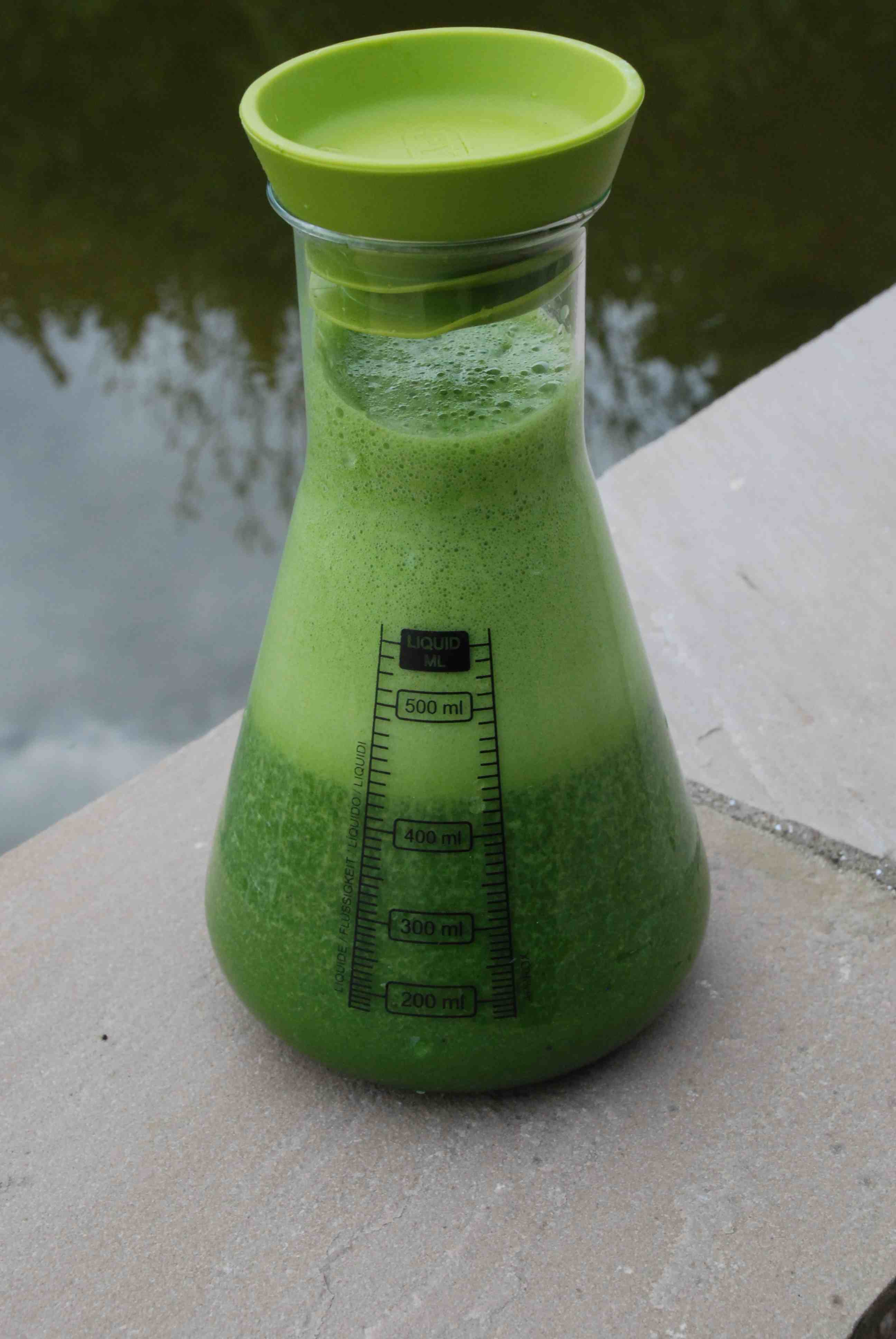 You sometimes see it recommended that you sieve or filter the juice but I have never done this. It does settle quite quickly and it needs a shake to mix the macerated ‘green’ with the clear liquid below or above.