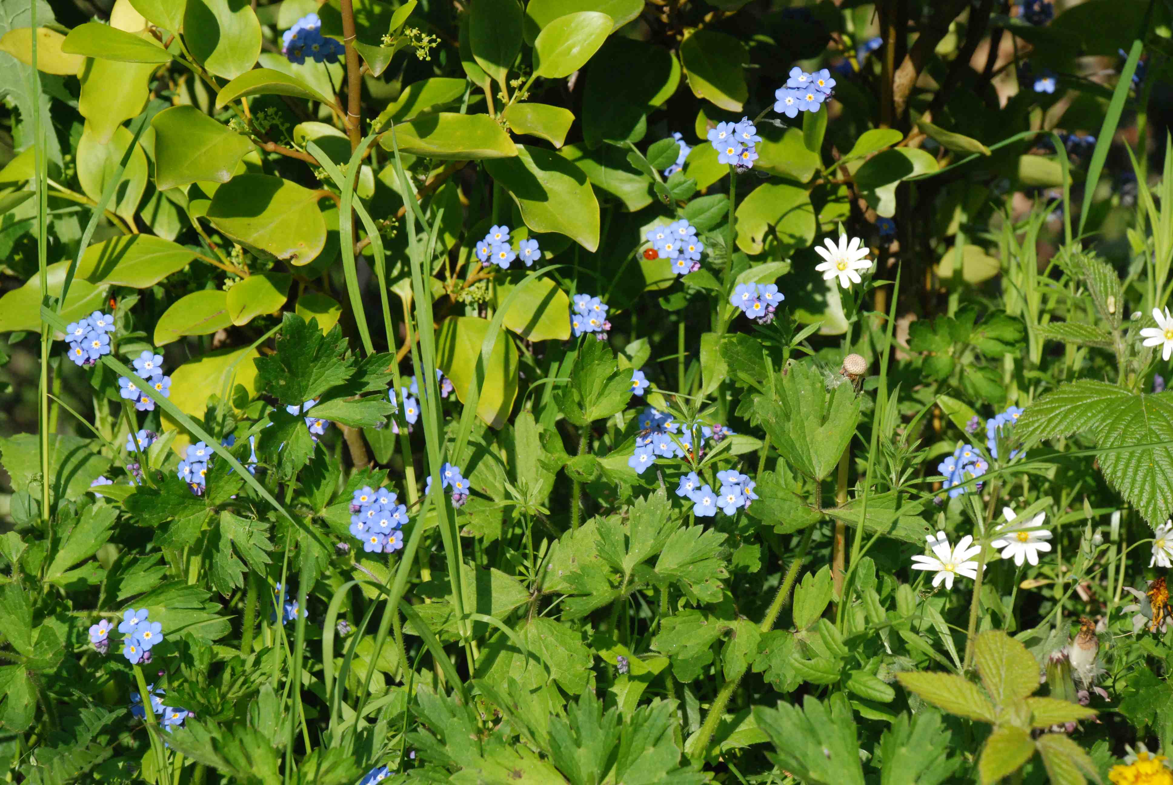 So last week when on my exploratory drive around north Wexford it was a delight to see wild forget-me-nots (or naturalised at least) blooming beside a griselinia hedge amidst buttercup foliage and interspersed with stellaria blooms.