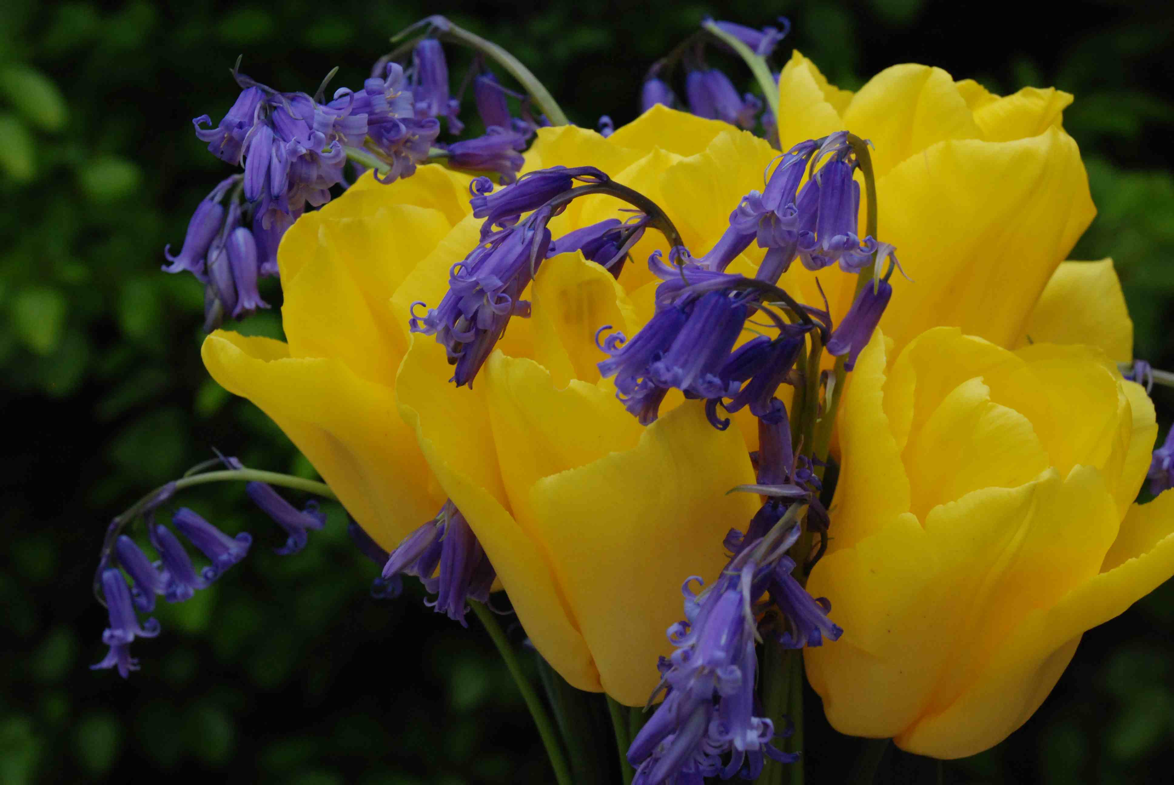 Tulips and bluebells Contrasts in flower shape and colour. A bunch of yellow tulips and wild bluebells* – simple but lovely * The bluebells are growing in the garden and are not picked from the wild Just for comparison, because people seem to get confused between the wild and the Spanish bluebells, here is the Spanish one for comparison. Spanish bluebells Share this: Click to share on X (Opens in new window) X Click to share on Facebook (Opens in new window) Facebook Like Loading... ← Don’t ignore the double entendres: Arum maculatum Garden Show Ireland 2014 →