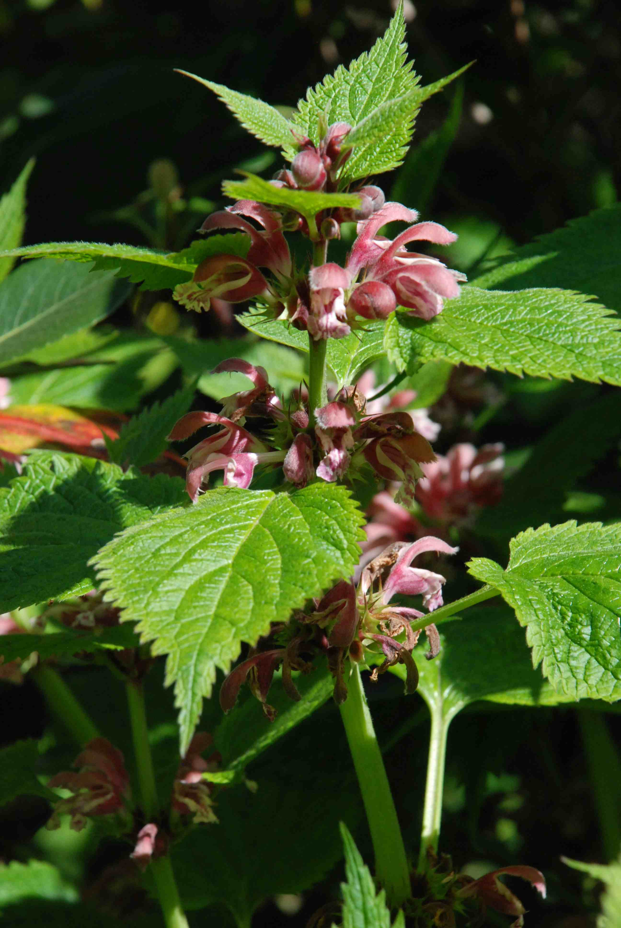 Although there are about 40 species of lamium, some are truly weedy and others are alpines that need careful cultivation. All have whorls (rings) of tubular flowers and the opposite leaves and square (in cross section) stems so typical of the family (Lamiaceae – formerly Labiatae). If you want a classy but robust perennial for a shady spot then look out for Lamium orvala. Like most lamiums, this is a native of Europe, but unlike most it does not creep along the ground but stands upright, forming a leafy clump with large pinkish purple flowers in whorls along the stout stems. There is a white form too which is equally nice. It may self seed if it is happy but is rarely a nuisance. It is best in moist soil in light shade but once established it can withstand drought.