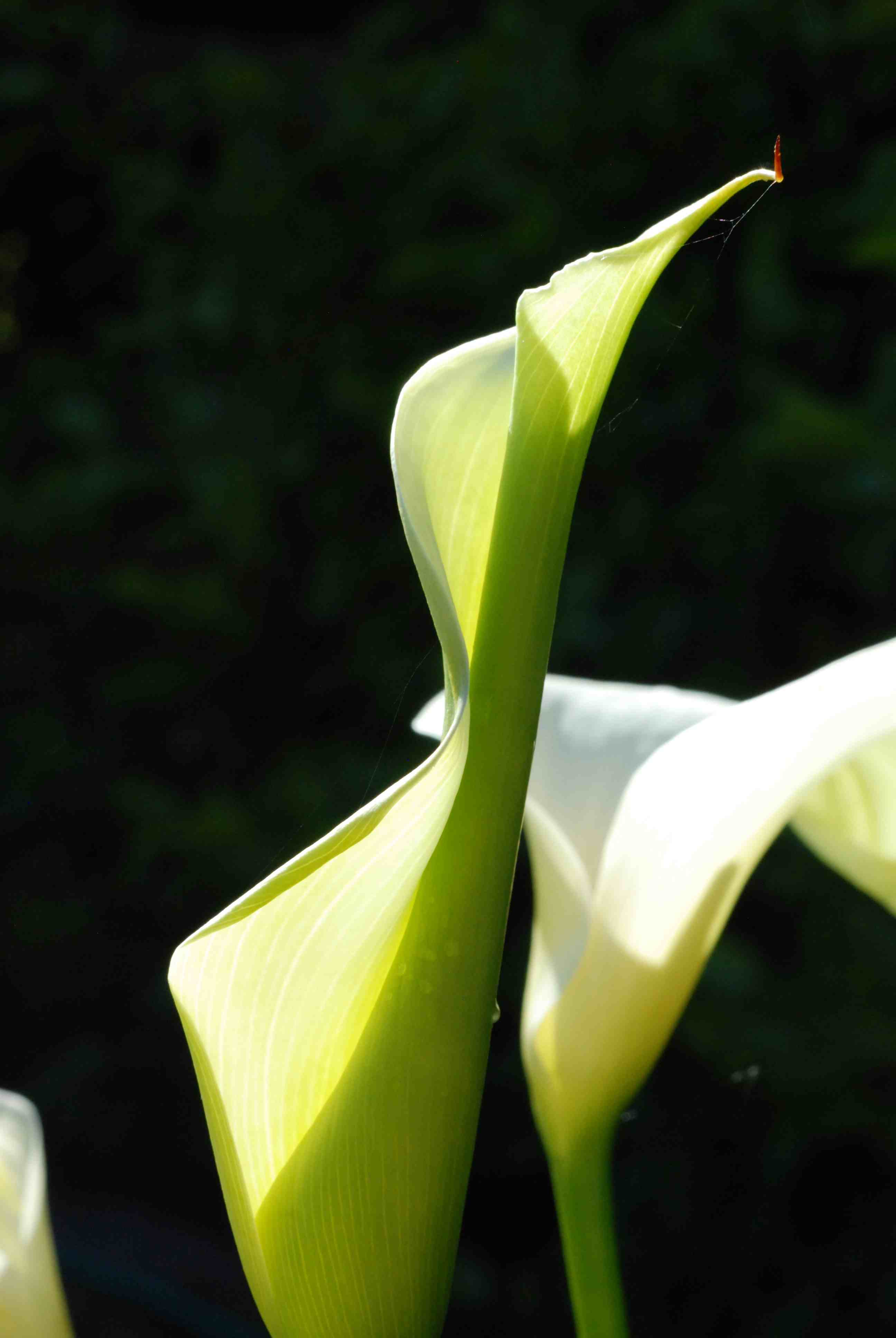 But this simple structure, a pencil wrapped in a sheet of paper, has an asymmetrical geometry that is extraordinary in its beauty. I think it reaches its peak in the hardy Zantedeschia aethiopica. This easy plant gives me more joy than any other. It is elegant and swan-like and the flowers change as they open but are never anything other than joyous.