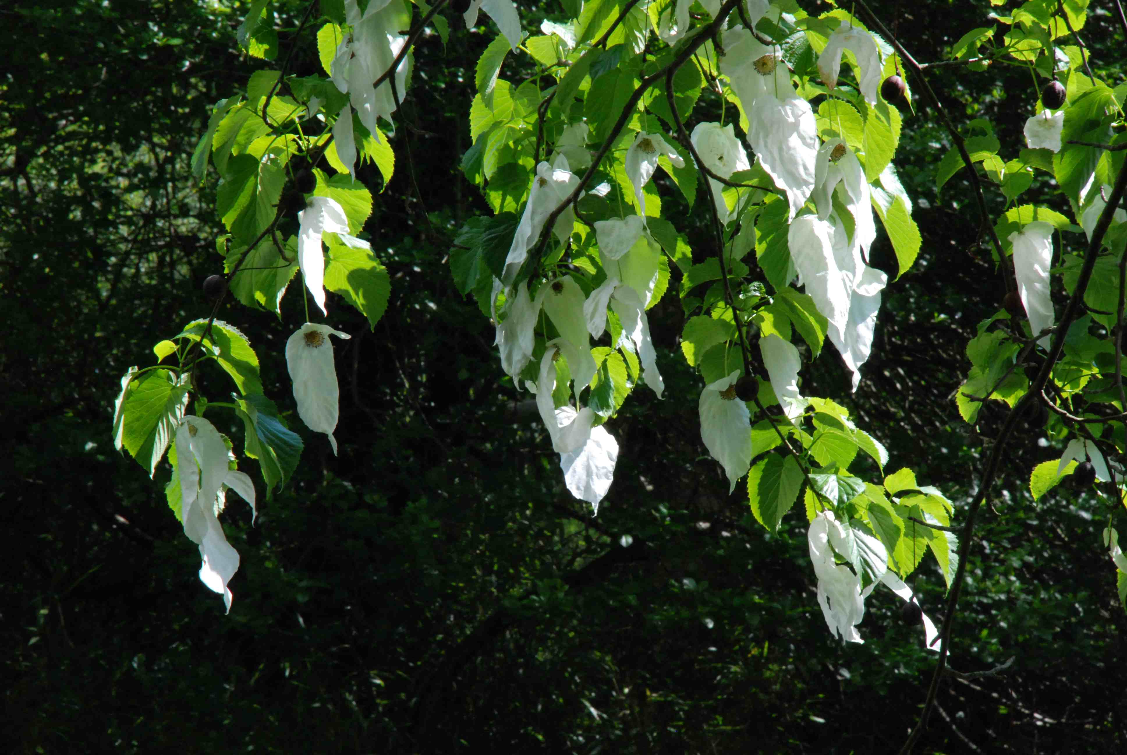 I am not quite certain when and where I saw my first handkerchief tree but I was probably in my early teens and it was probably at the gardens at Wakehurst Place in SE England. The fact that I have any memory of it 40 years later and that few other trees inspire such awe and wonder in me, and most people, only reinforces the amazement that must have overcome French Missionary Pere David* when he was the first recorded westerner to see the tree. He made his discovery in 1869 and apparently sent seeds back to Paris, along with herbarium specimens, but they were preserved rather than sown so the tree did not enter cultivation. He found a single specimen, at high elevation (2000m) in south west China. The tree was described as a new species in 1871.