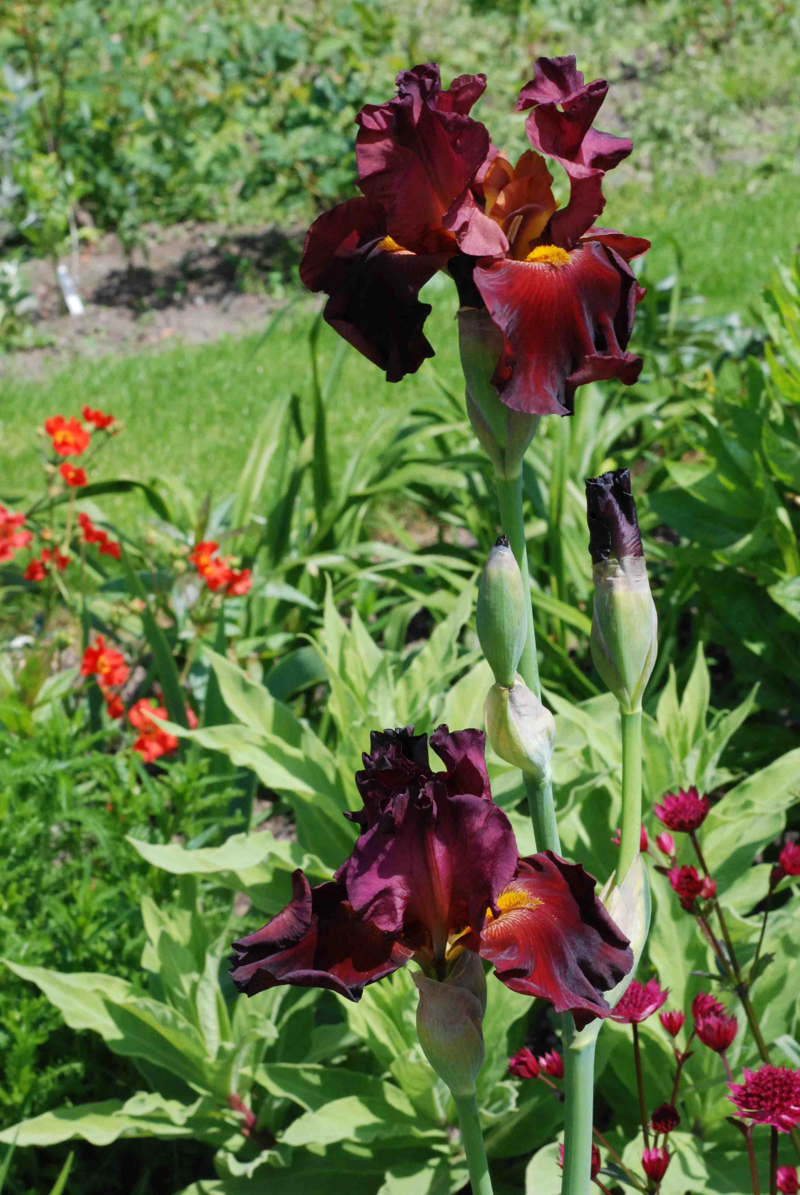 ‘Rip City’. This is from Schreiner’s breeding for a good red and is pretty close. It has classic iris styling and lots of buds on strong stems and was introduced in 1999