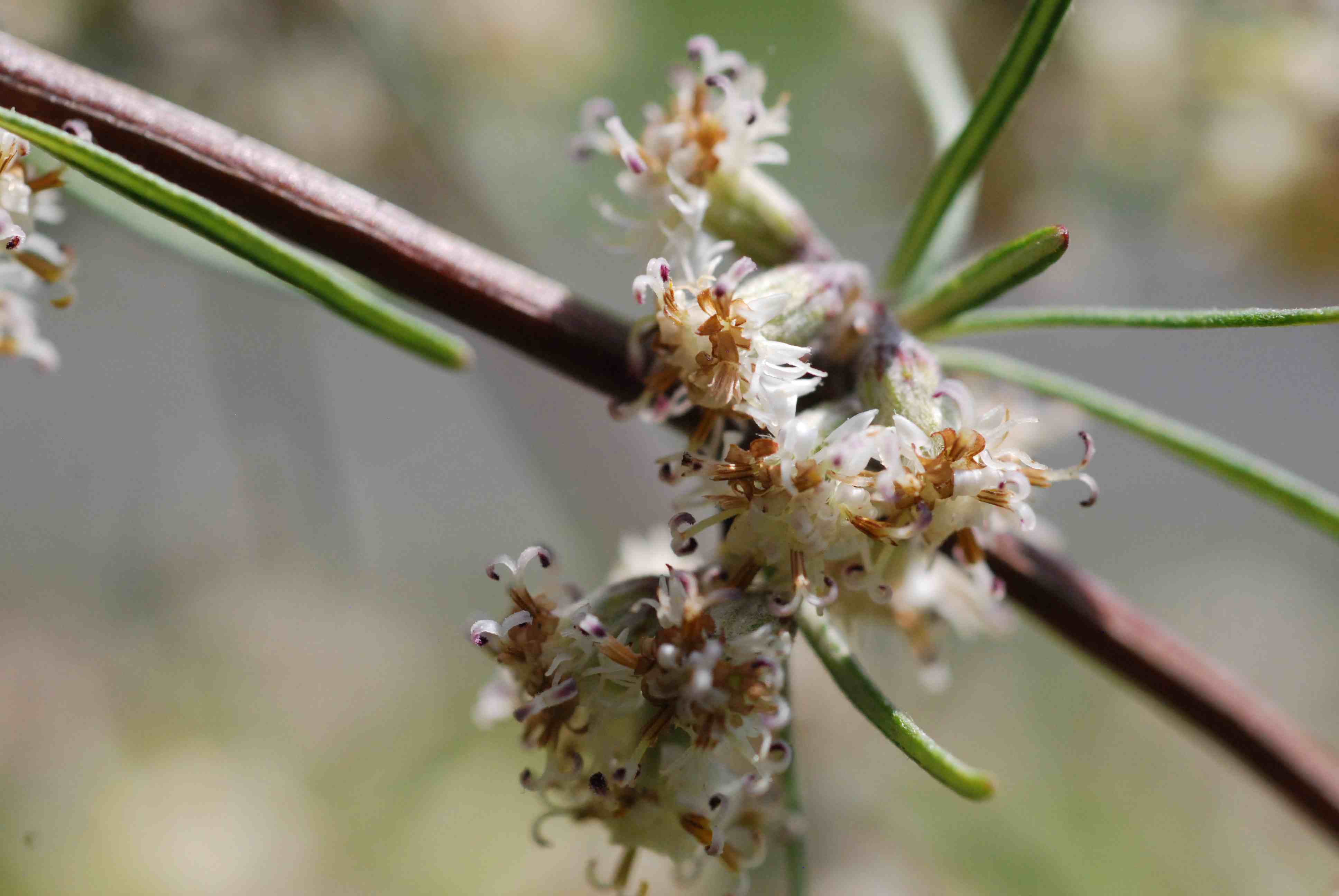 At first glance Olearia virgata var. lineata doesn’t have a great deal going for it. The leaves are small, thin and rather like rosemary and are carried in pairs on very thin, rather square branches. So it looks like a very stretched, dull rosemary. The habit is very elegant and ‘willowy’ and it arches pleasantly. When I saw it at the weekend it was covered in flowers but because these are tiny and dull greyish buff they would not make much of an impact if it wasn’t for the sheer number of them! But I would never have given it more than a passing glance if it wasn’t for the amazing fragrance of these tiny blooms. It was one of those cases when I walked into a cloud of perfume and just had to find out where it was coming from. It didn’t take long to find that the sweet, vanilla perfume was coming from this otherwise unexciting plant.