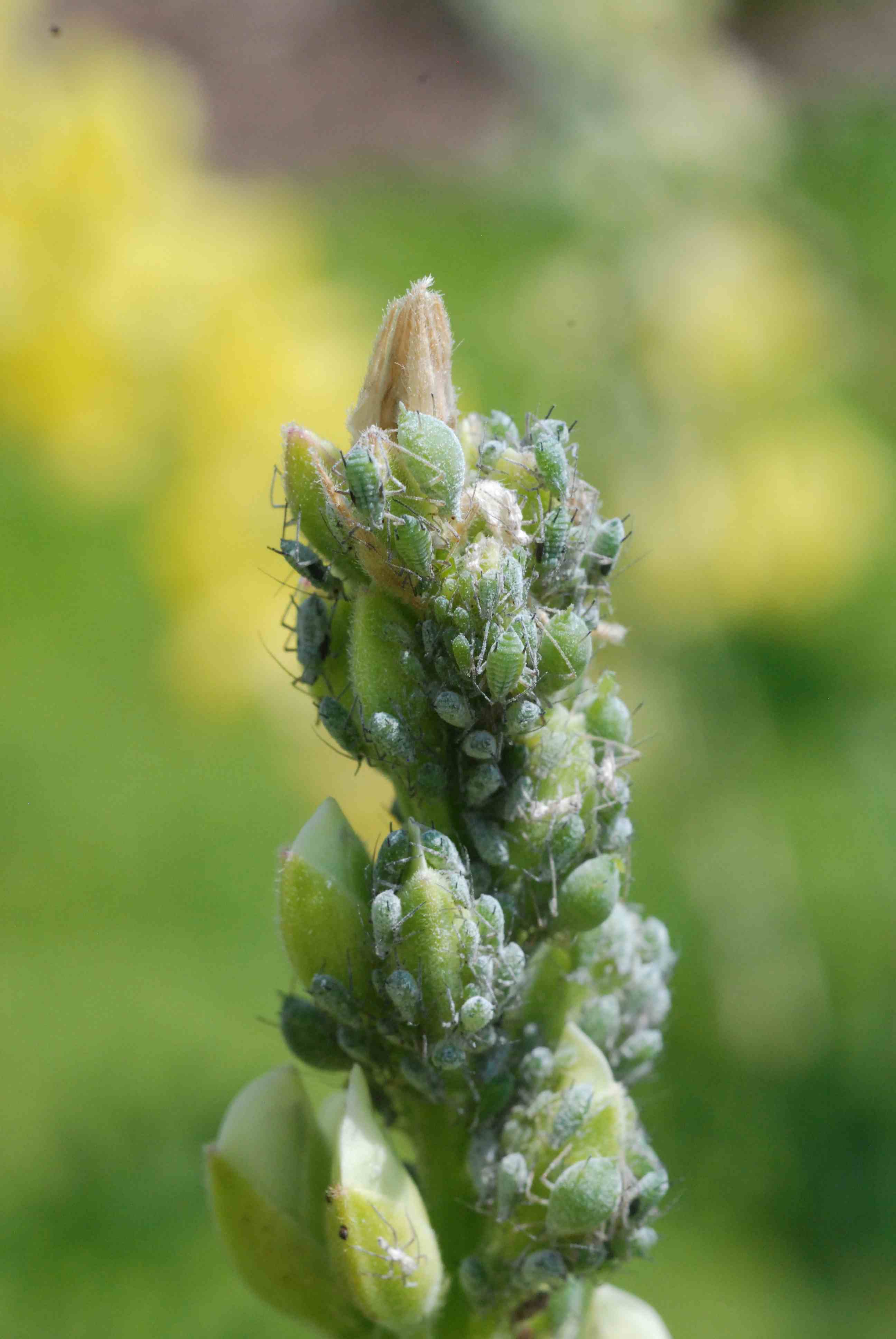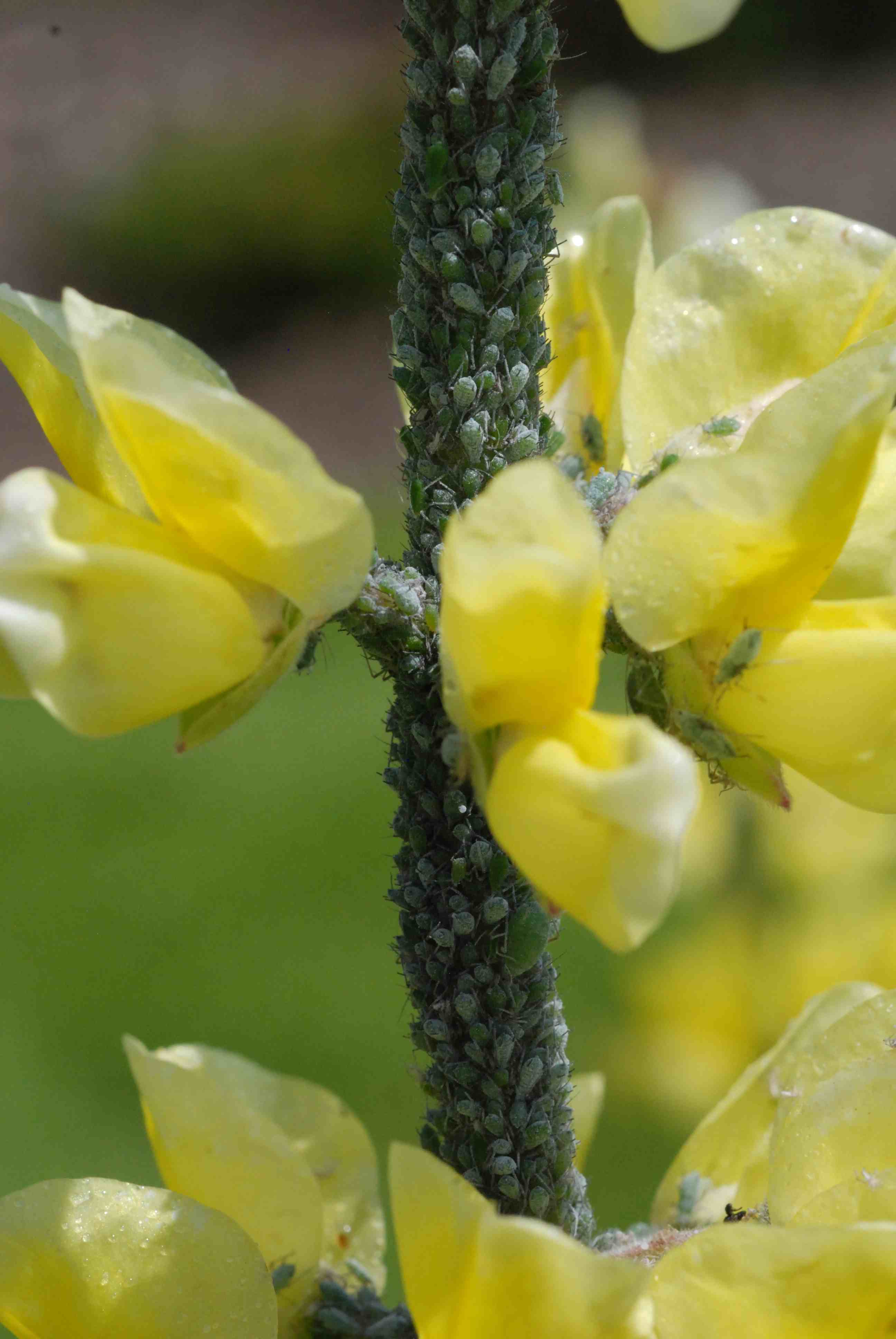 Like all aphids, this one sucks the sap from the plant and breeds at a ridiculous rate. What makes it a bit different is that it only attacks lupins and it seems to absorb some toxins from the plants that render it more or less immune to being predated by ladybirds or other insects that usually eat aphids. And as well as being bigger than most aphids it is also almost ‘aggressive’ and wiggles about in an alarming fashion (as do other aphids to a lesser extent) when it feels threatened. It is American and was first found in the UK in the 1980s. In fact I am sure it was first found at Kew Gardens and I was there when it was first discovered. Anyway it is established now and is a serious pest. It will feed on leaves and shoots but is particularly troublesome on the flowers stems where it can be present in such huge numbers that it kills the flower buds.