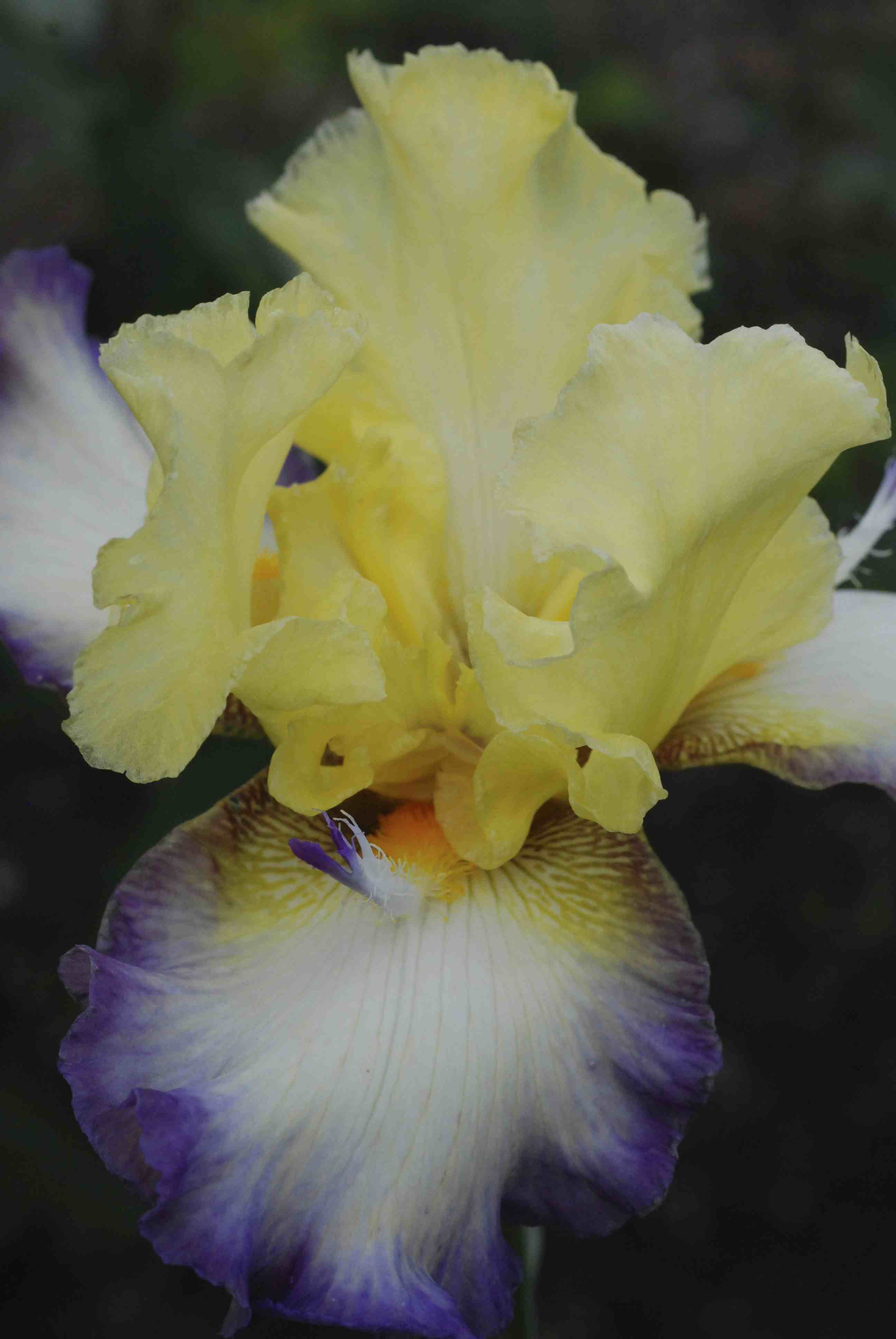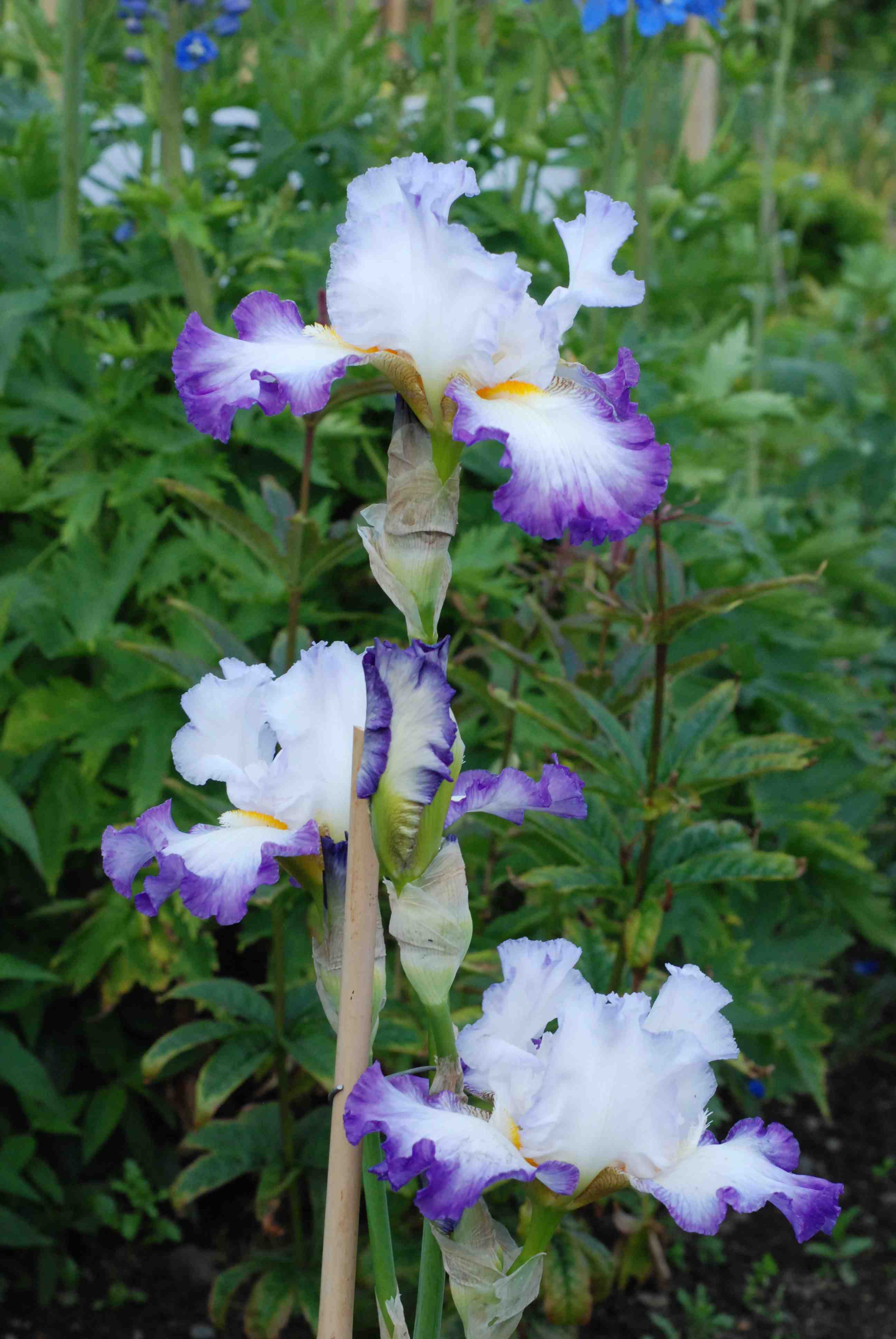 ‘Fabuleux’ Cayeux 2003. This is similar to the wonderful ‘Alizes’ and has the same colour pattern. The pure white standards float above the beautiful blue and white falls.