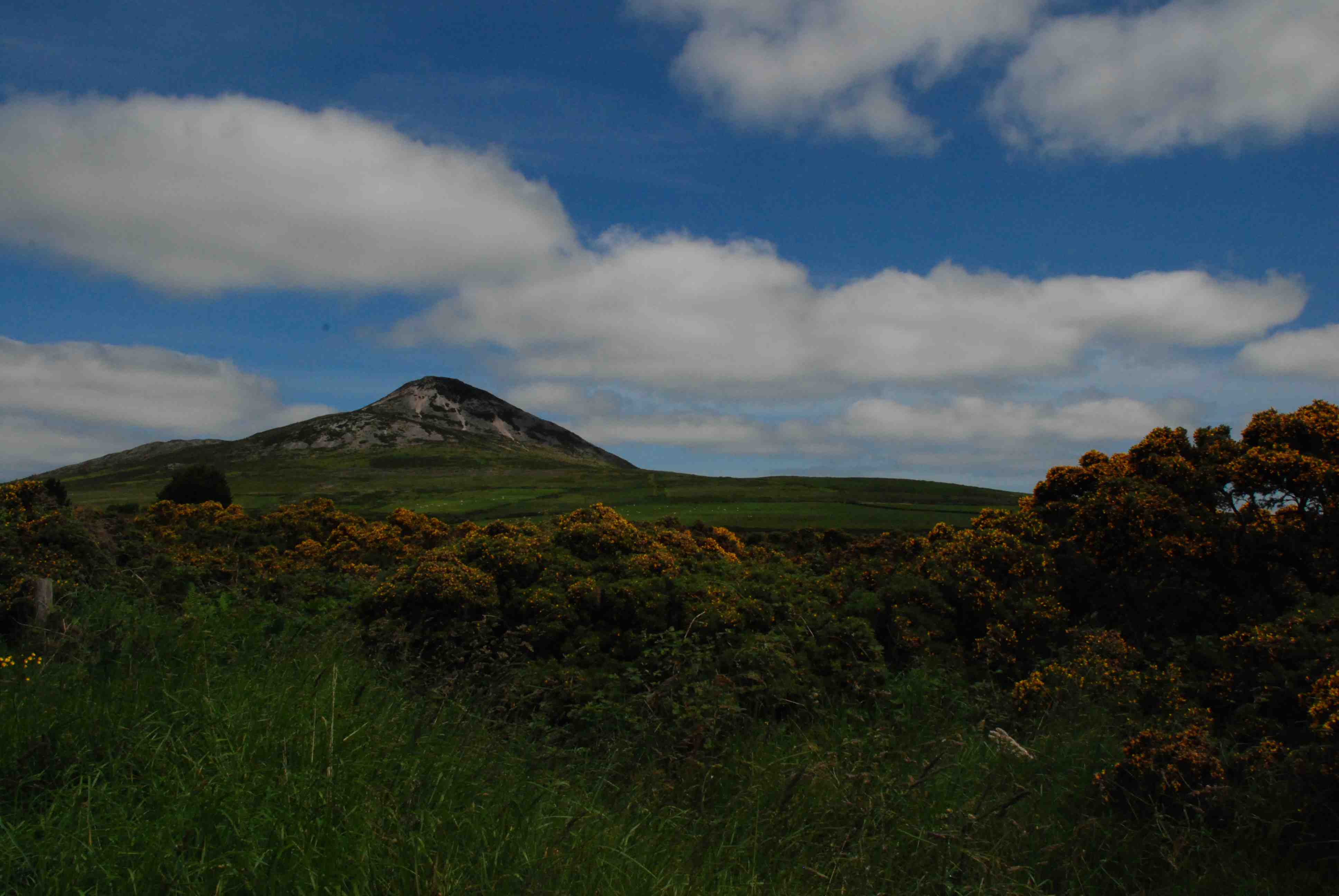 At the weekend, after fixing a number of problems, including dealing with a faulty well pump, I managed to make the most of the great weather and headed north, first to the bike stop at Laragh, and then east to meet the N11 east of the Suagarloaf Mountain. It is located west of Bray and an easy drive from Dublin. Having driven past it at least 50 times to the east on the N11 I actually saw it from the west and the peak stands dramatically above the surrounding hills. A similar view forms the focus of the view from the splendid, Italianate gardens at Powerscourt.