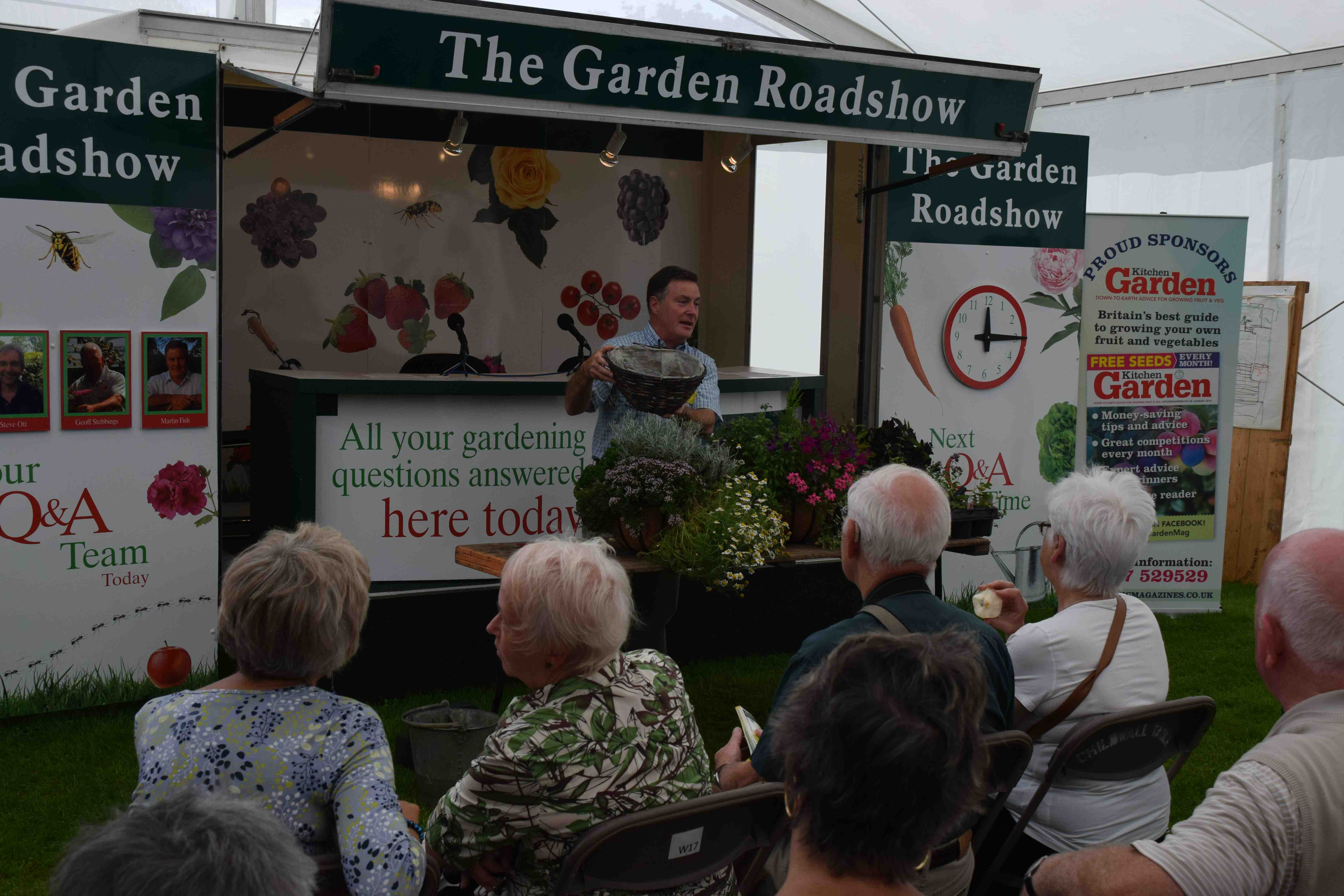 Martin Fish, who hosts the Roadshow and is usually given the important job of mingling with the crowds to get the questions and give a goody bag to anyone that asks a question, gave talks on hanging baskets. Martin always complains that he is not allowed on stage and we usually say it is because he is so good at handing out the goody bags