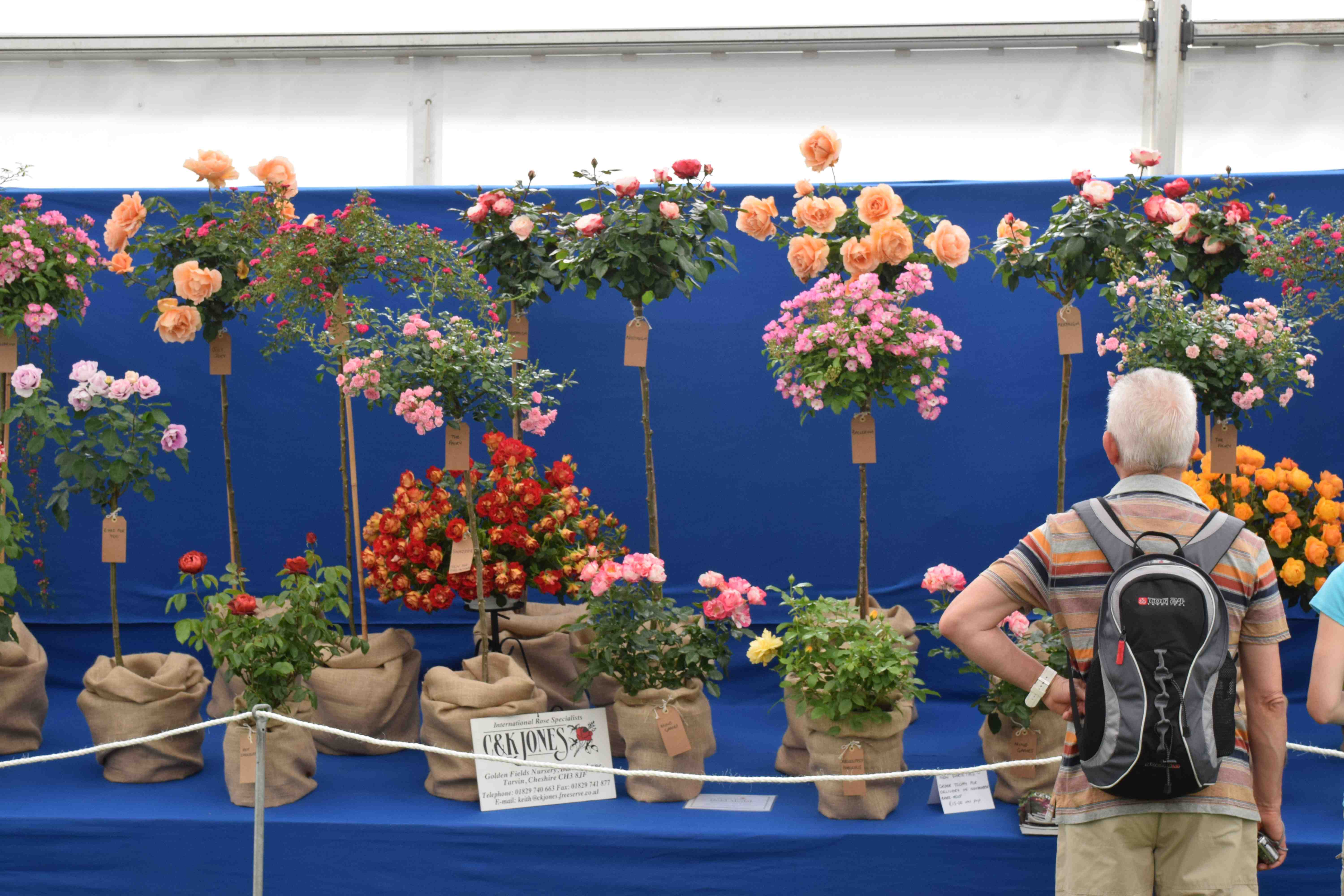 They had two new roses on the stand, as cut flowers. You can almost see ‘Golden Delicious’ (behind the man with the rucksack) and ‘Snazzee’. ‘Snazzee’ (WEKzazzette) is a Christian Bedard hybrid introduced in the USA in 2012. It is sold in the USA as ‘Ketchup and Mustard’ but because selling names of roses can be changed from country to country it was thought that, in the UK, since we are not big hot dog eaters, ‘Ketchup and Mustard’ might not be the best selling name. Keith says it has average disease resistance and I am not surprised. I am no rose expert but I am sure this colourway is derived from Rosa foetida var. bicolor and this is a martyr to blackspot. The red petals with golden reverse have been seen before – notably in the old but popular (once) ‘Picadilly’ – but here they are very bright. You can’t ignore the colour on this one though and though I have to admit it is not one for me, I am not typical since Rachel said she was busy taking orders all through the show. So if you fancy something ‘Snazzee’ in your life get your order in quick. *