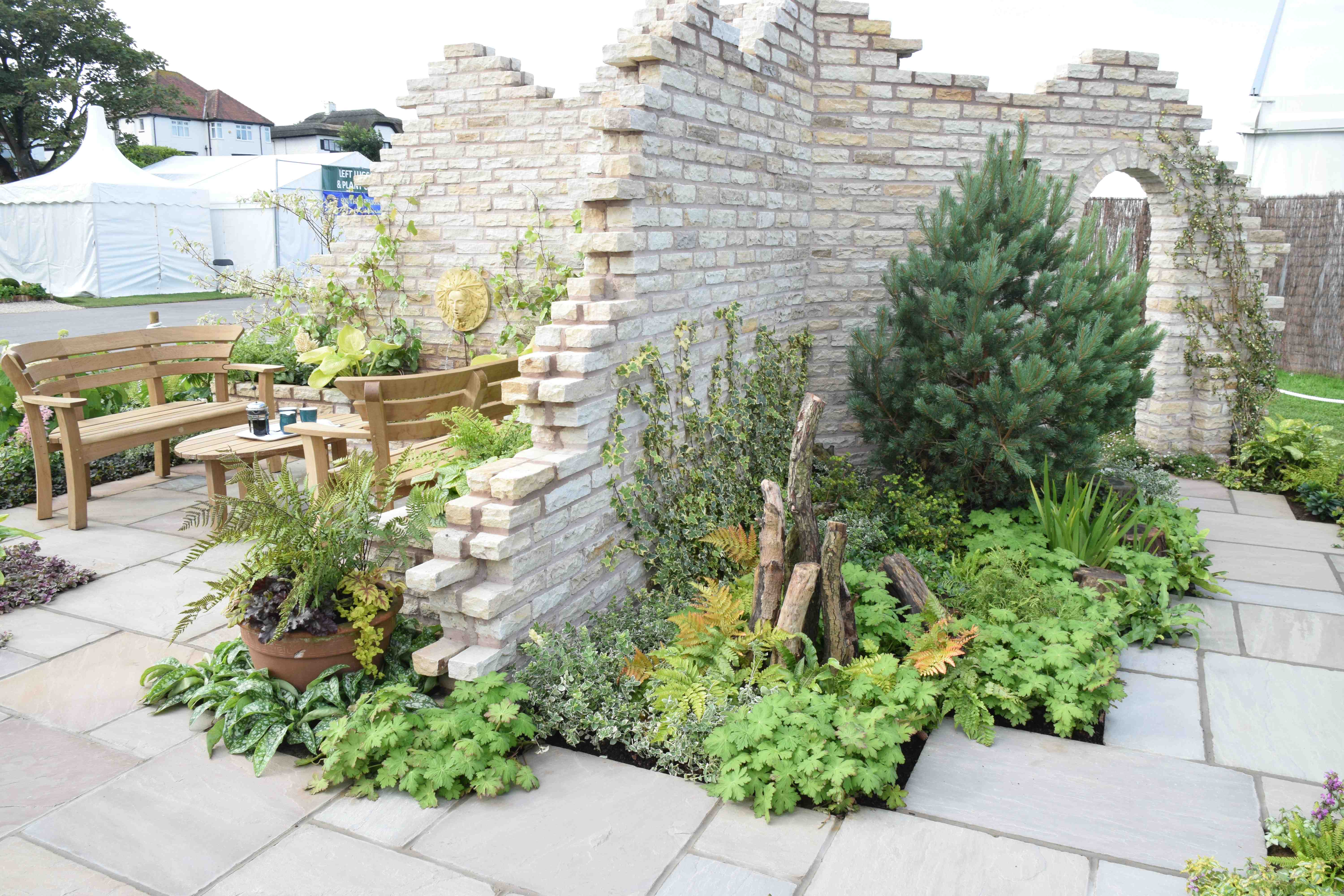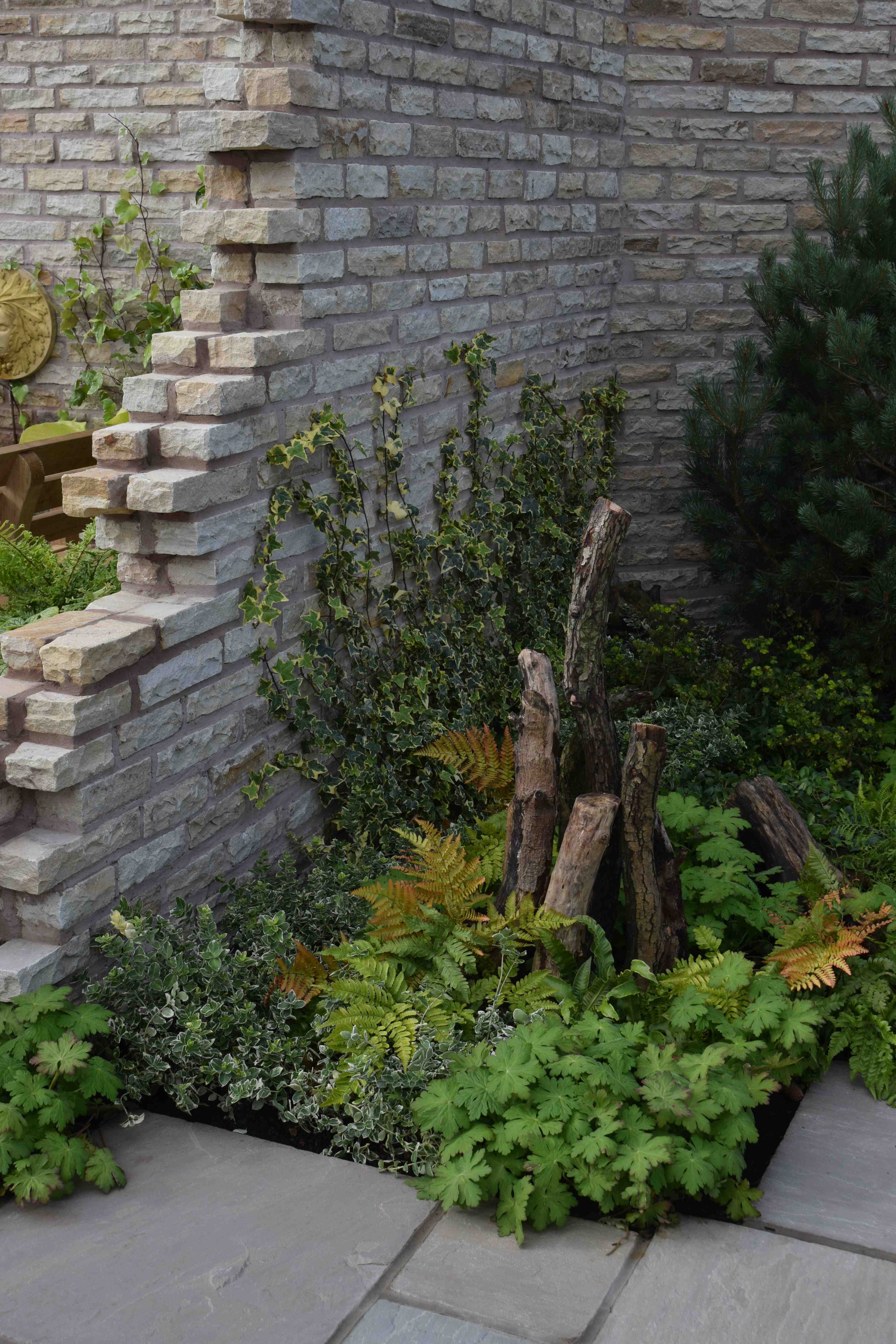 The first garden you came to, by the entrance, was Enchantment, by Muddy Boots. As a garden I don’t think it was very satisfactory with its three-parted central wall and open sides and the planting was a bit too small so the walls dominated. But at least you could look at it from all sides and what was good was that the planting, in places, was very good and looked as though it had been there for ages. It was appropriate and attractive. Planting so often lets gardens down at shows so well done for that detailing.