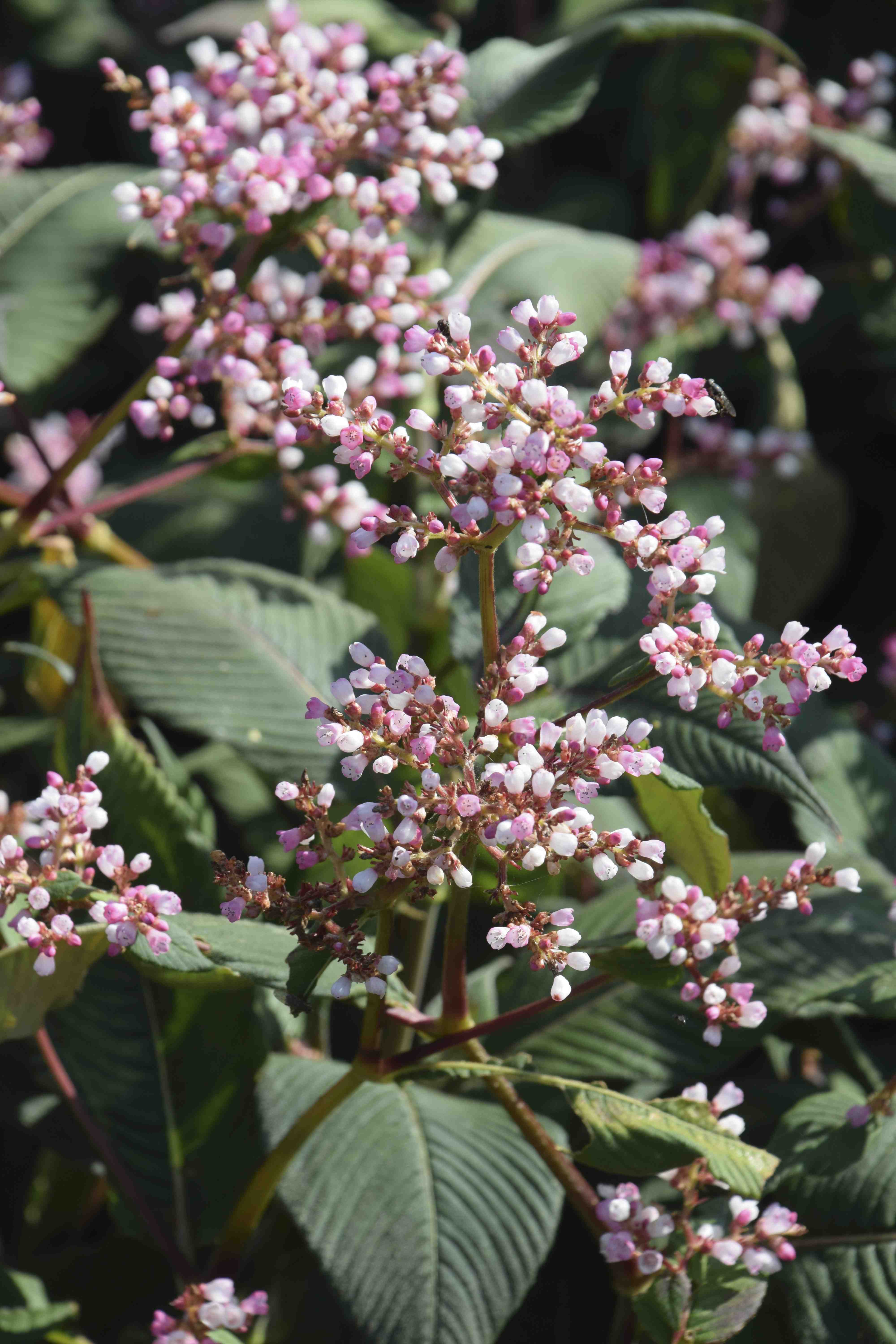 I am very aware that veg have taken a back seat on here lately and I will remedy that next week but for now another ornamental. Persicaria campanulata (formerly Polygonum campanulatum) is a plant I have known for a long time. I first made its acquaintance when I was at school and had a Sunday morning gardening job. In that garden it grew in deep shade under trees and, although a bit spindly, survived in the dry shade and provided pleasant late summer colour in the same palette as Japanese anemones. Being a knotweed it can look after itself in most gardens and is a vigorous plant. It has the characteristic, zigzag stems and lance-shaped leaves and small flowers.