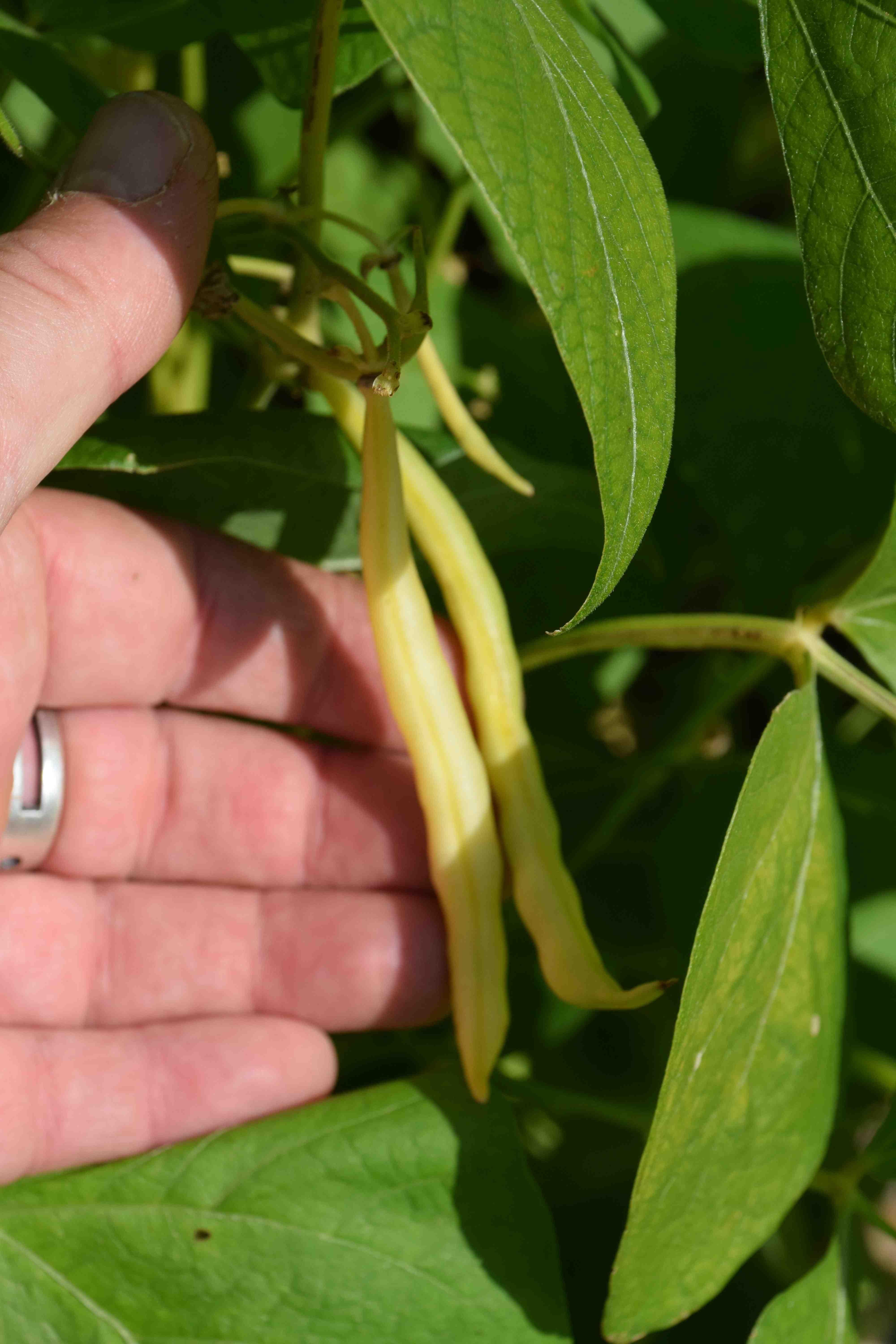 I have been picking for a few weeks now so the photos do not show the profusion of pods on the plant. The slim, stringless pods are about 15cm long when ready to pick and quite straight though they get thicker and curl a bit as they mature. It may just be me but I find that yellow beans have a nicer texture than the green or purple ones and taste good. After this trial, through a pretty cool August following a hot July, ‘Hildora’ has passed the test with flying colours. It is prolific and tasty and the coloured pods make picking easier than looking for green beans among the foliage. I would recommend it.
