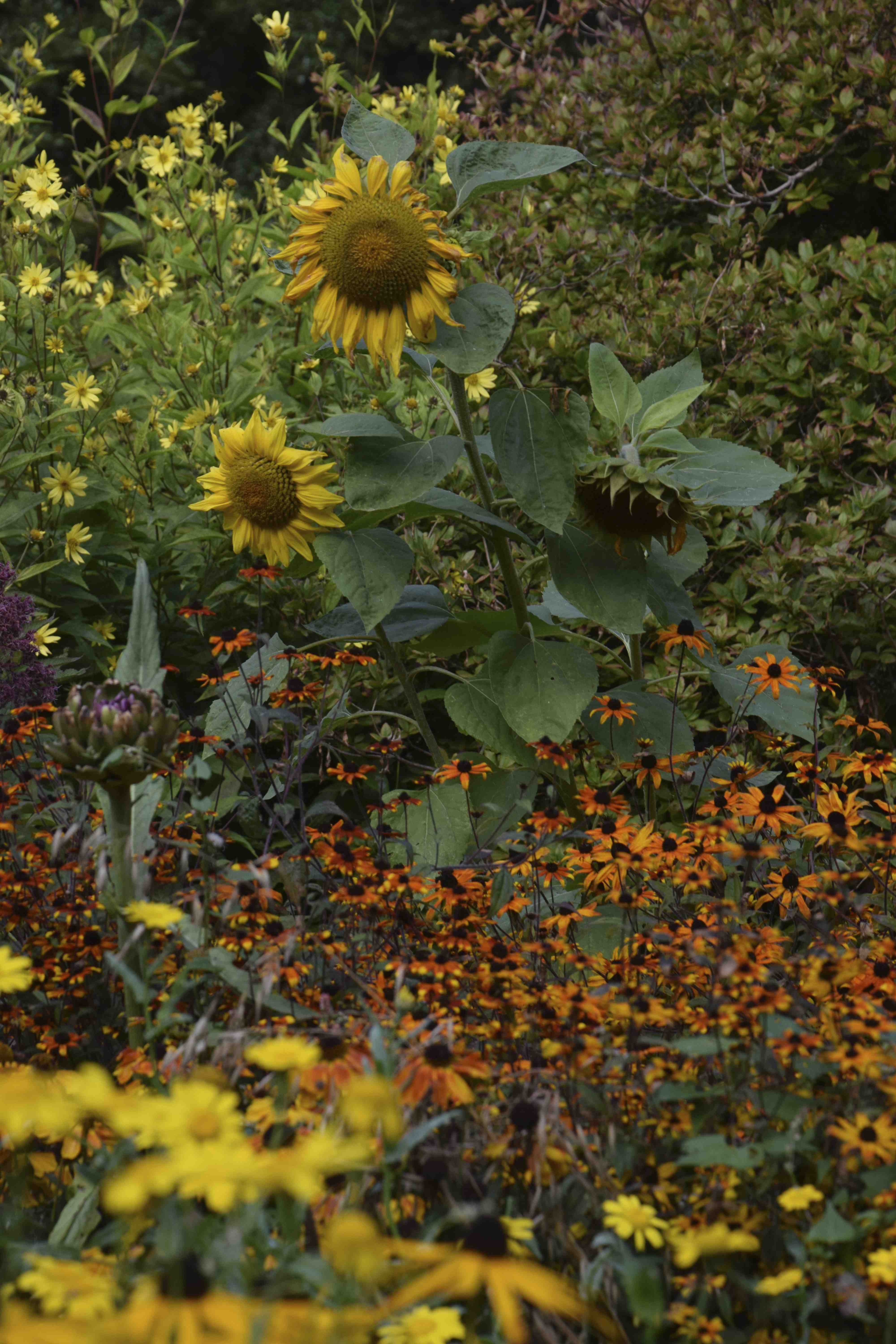 The wildflower area, which is not always totally successful, in my opinion, looked good in parts such as here with Rudbeckia triloba and sunflowers