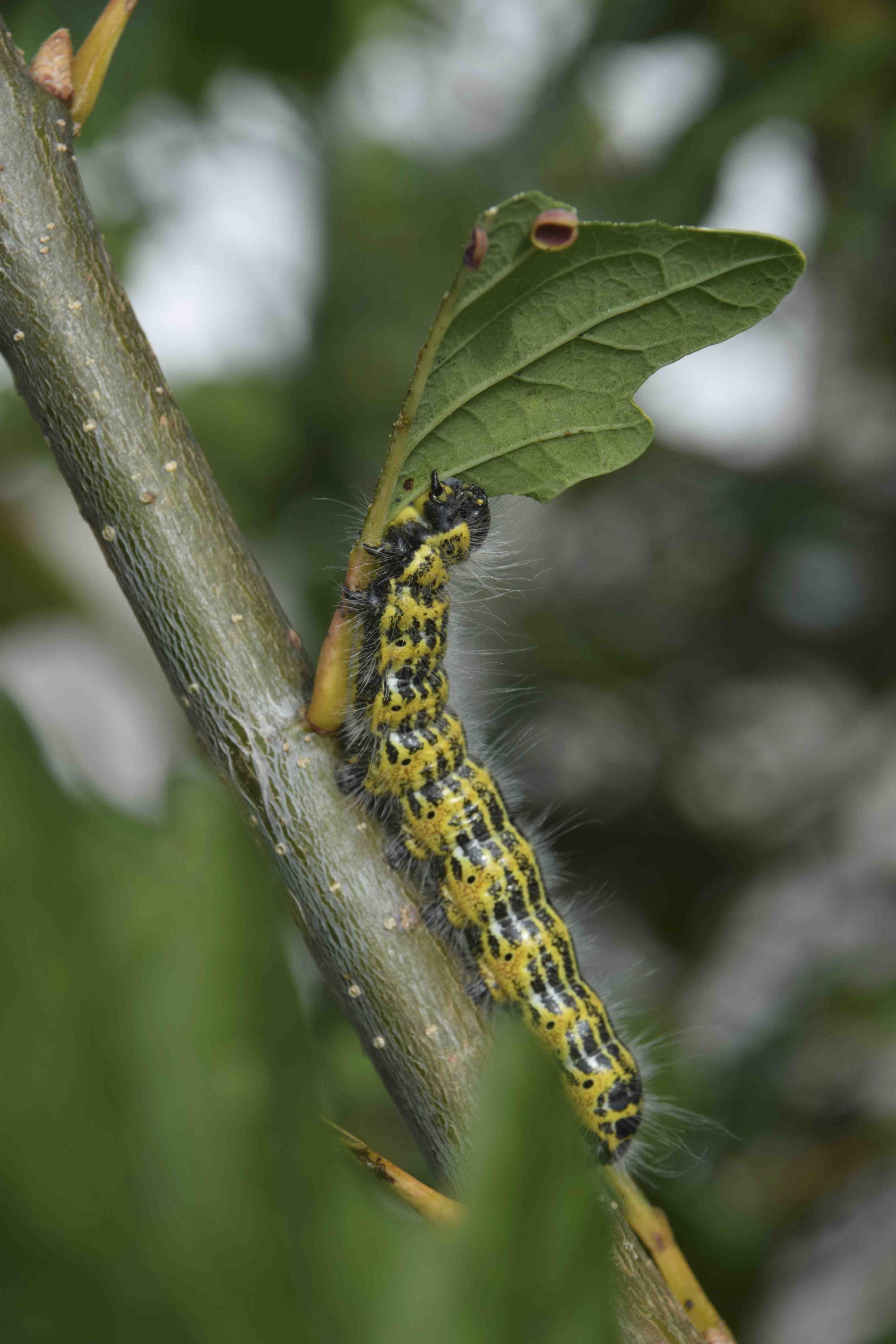 The other day I was passing a young oak sapling and noticed what, for me, was a huge caterpillar. It didn’t take long to see another half dozen or so, scattered over the small tree. I am not overly fond of caterpillars on edible plants but because oaks are the most important trees for wildlife, supporting more species than any other native tree, I had no hostility towards these creeping creatures as long as I was sure they were not the annoying and mildly dangerous oak processionary moth – the hairs of which are irritant.