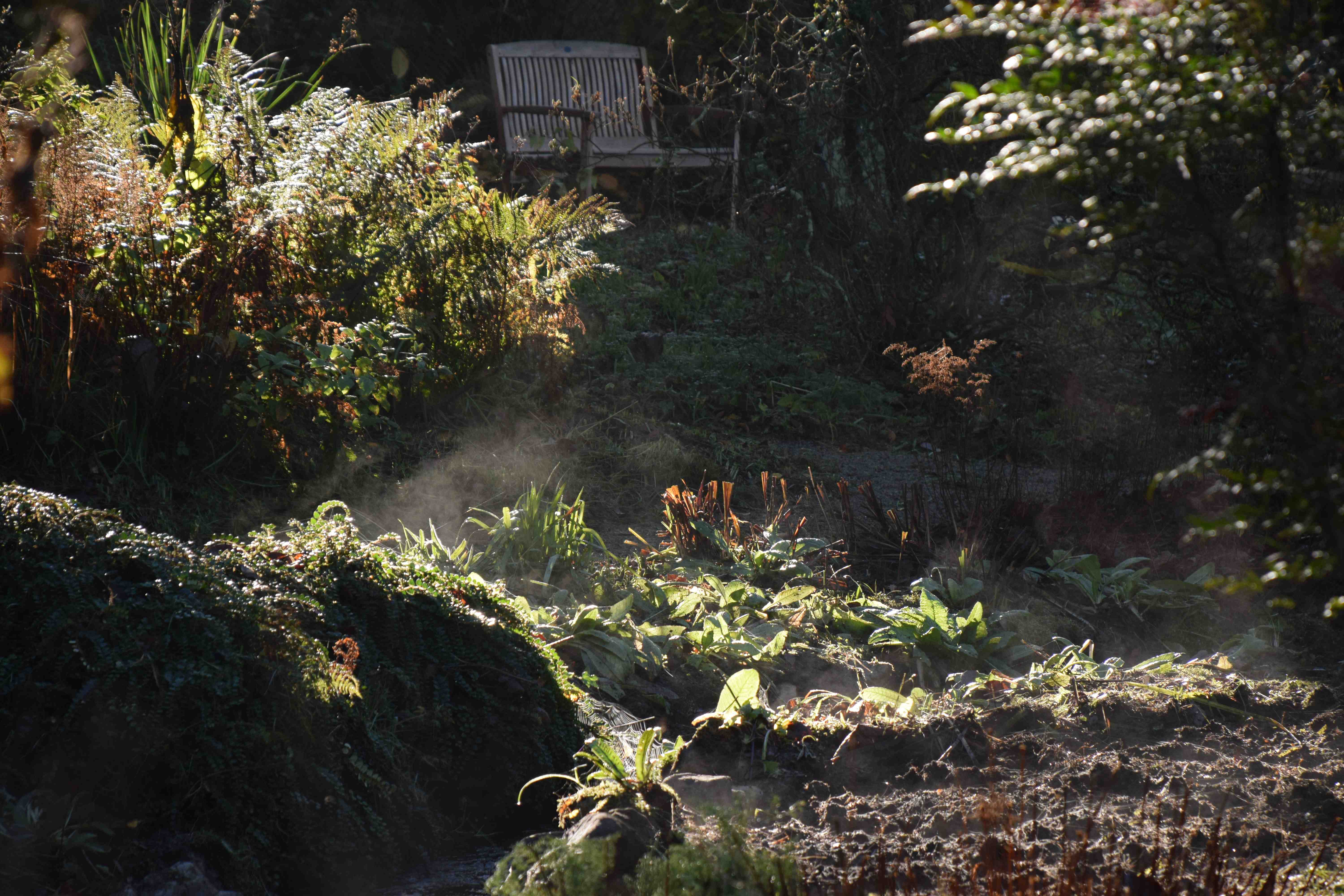 You’re certainly doing a good job of widening information on Mt Usher – justifiably so. It is a wonderful garden. I am not a fan of the Cordyline myself but don’t forget the best thing about it is the powerful scent from those flowers. I think someone told me the bees adore them too. Probably on the same morning my tree trunks were giving off little puffs of steam too. I never recall noticing that phenomenon previously, but you had the presence of mind to photograph it!