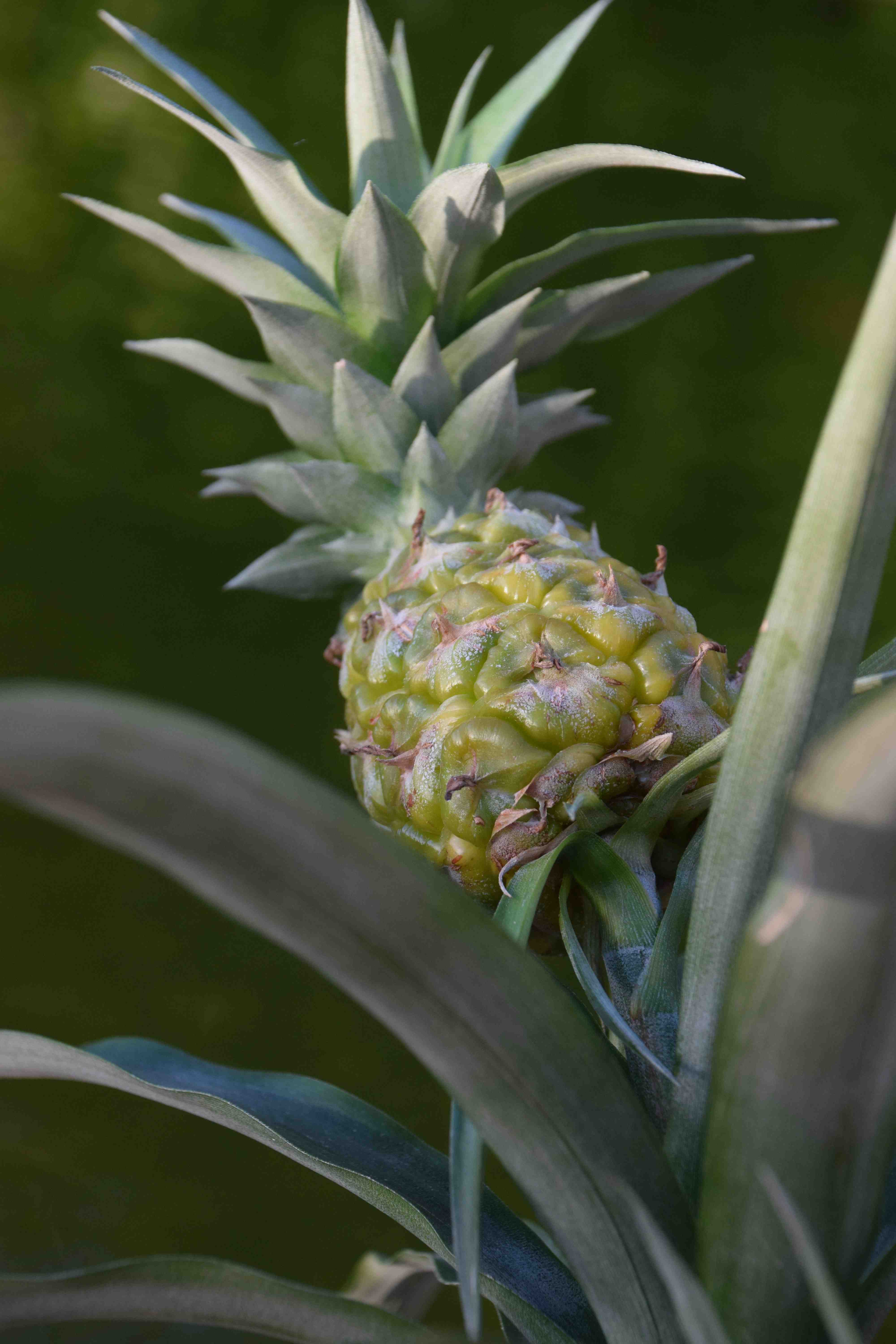 Most gardeners have tried, at one time or another, to grow a pineapple (Ananas comosus) from the green tuft at the end of the fruits, or at least they did till producers started cutting them out! The trouble is that even if you do manage to root the tops without them rotting your reward is a huge plant with viciously sharp leaves that will shred your furnishings if not yourself. So an unarmed pineapple is a good thing to have and whether the introduction of armless pineapples being sold as houseplants is a spinoff from the fruit industry or the houseplant nurseries I am not sure but it does make the plants being sold in pots much better houseplants.