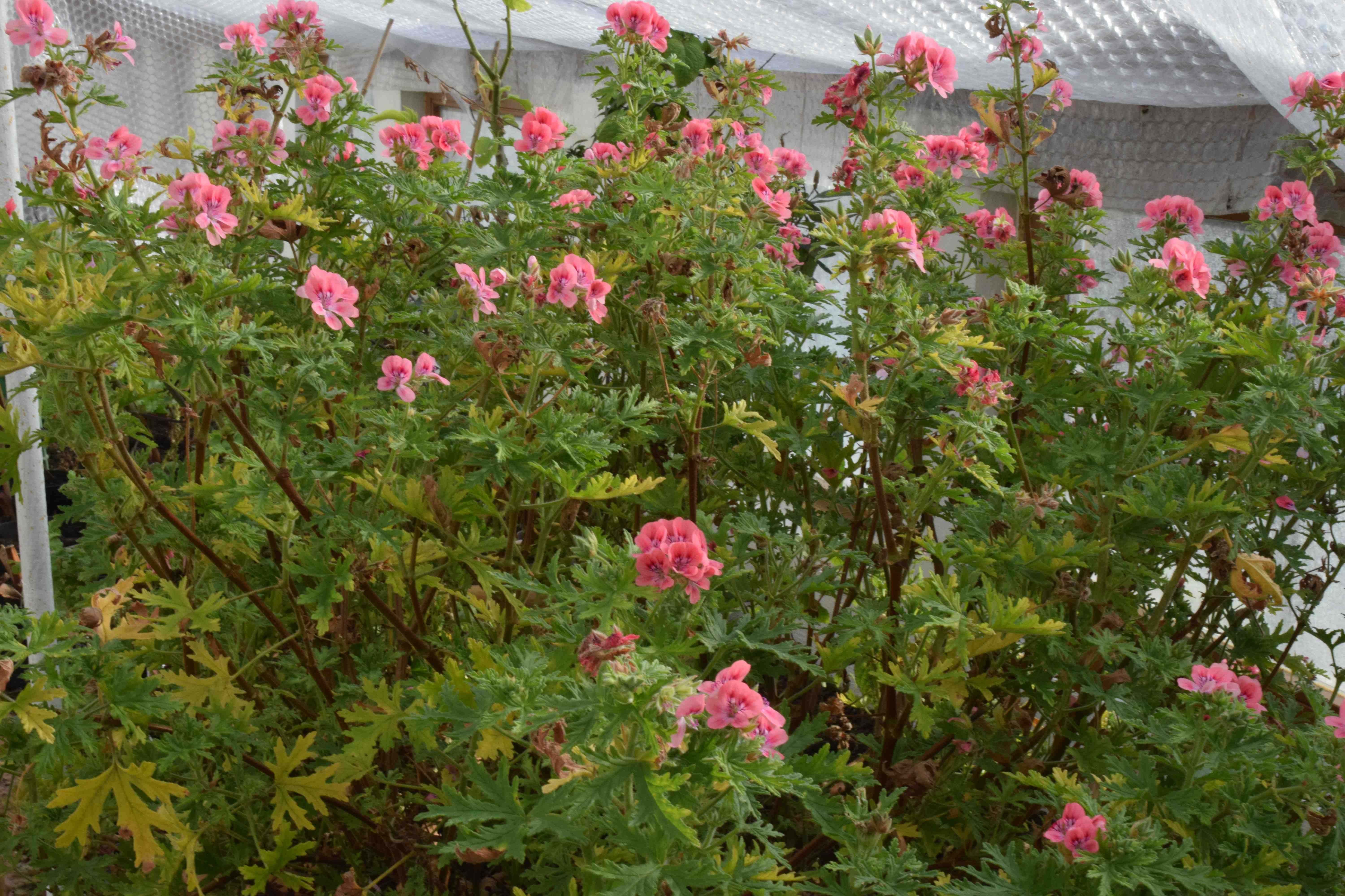 ‘Lara Starshine’ is a fast grower and makes a great mound of fragrant foliage without pinching and although the flowers are not huge they are pretty and it flowers on and on. Despite the fact that the heat in the greenhouse was not sorted till late December and the temperature before that dropped to 0c a few times the large pot in all the photos has been in bloom since the day it was planted (with 3 young plants rooted last January).