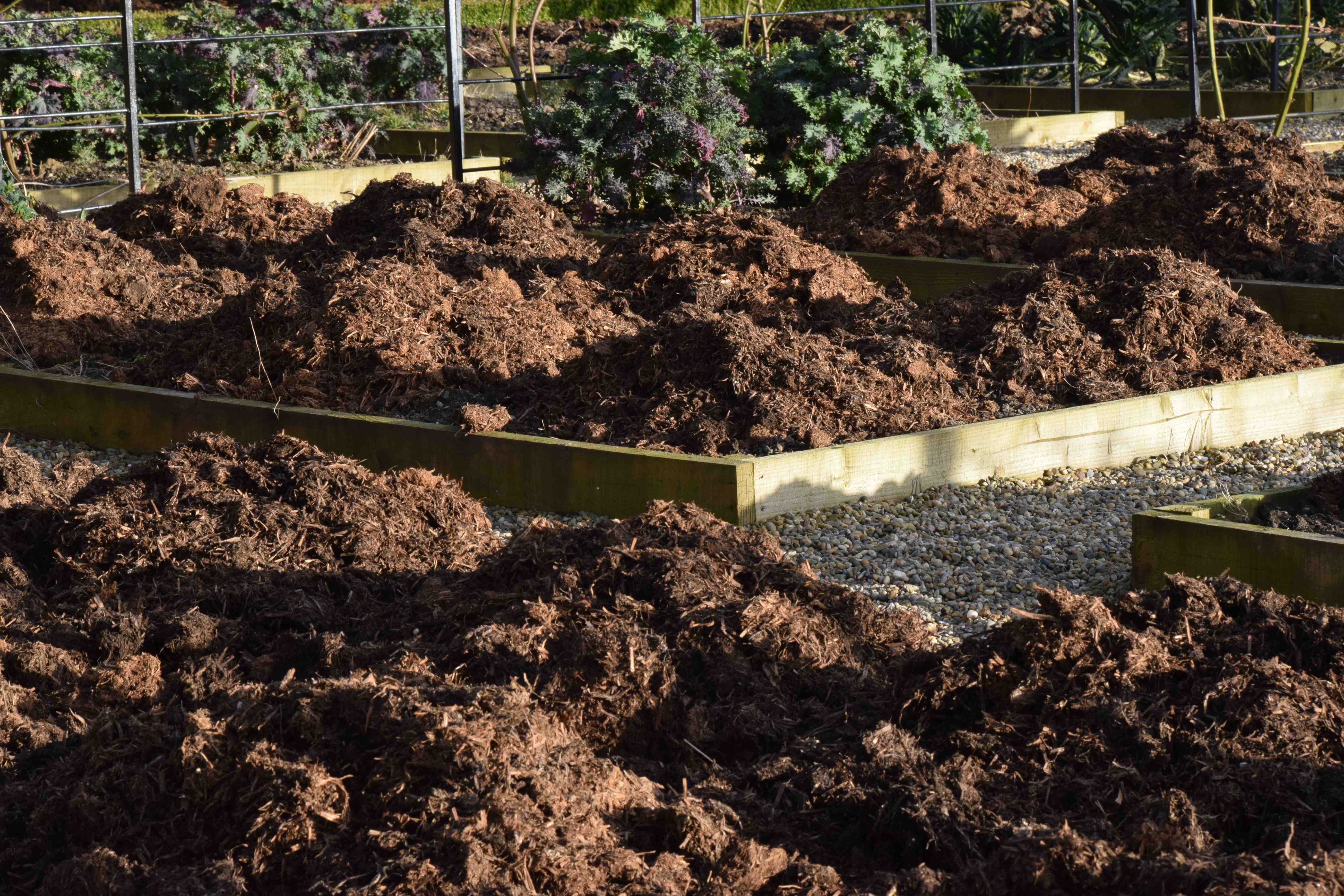 Anyway the stuff I am spreading is pretty ‘strong’ but it is moderately well composted. The soil here had not been improved with organic matter for many years until I arrived and in just two years it has been transformed with the addition of liberal amounts of mushroom compost, some gritty sand and, in some areas, some lime or calcified seaweed (substitute). More is better so I am making sure the soil gets an annual addition of organic matter. This helps improve soil structure and the worm population, adds some nutrients, improves the drainage of the clay soil and helps the soil retain moisture and nutrients.