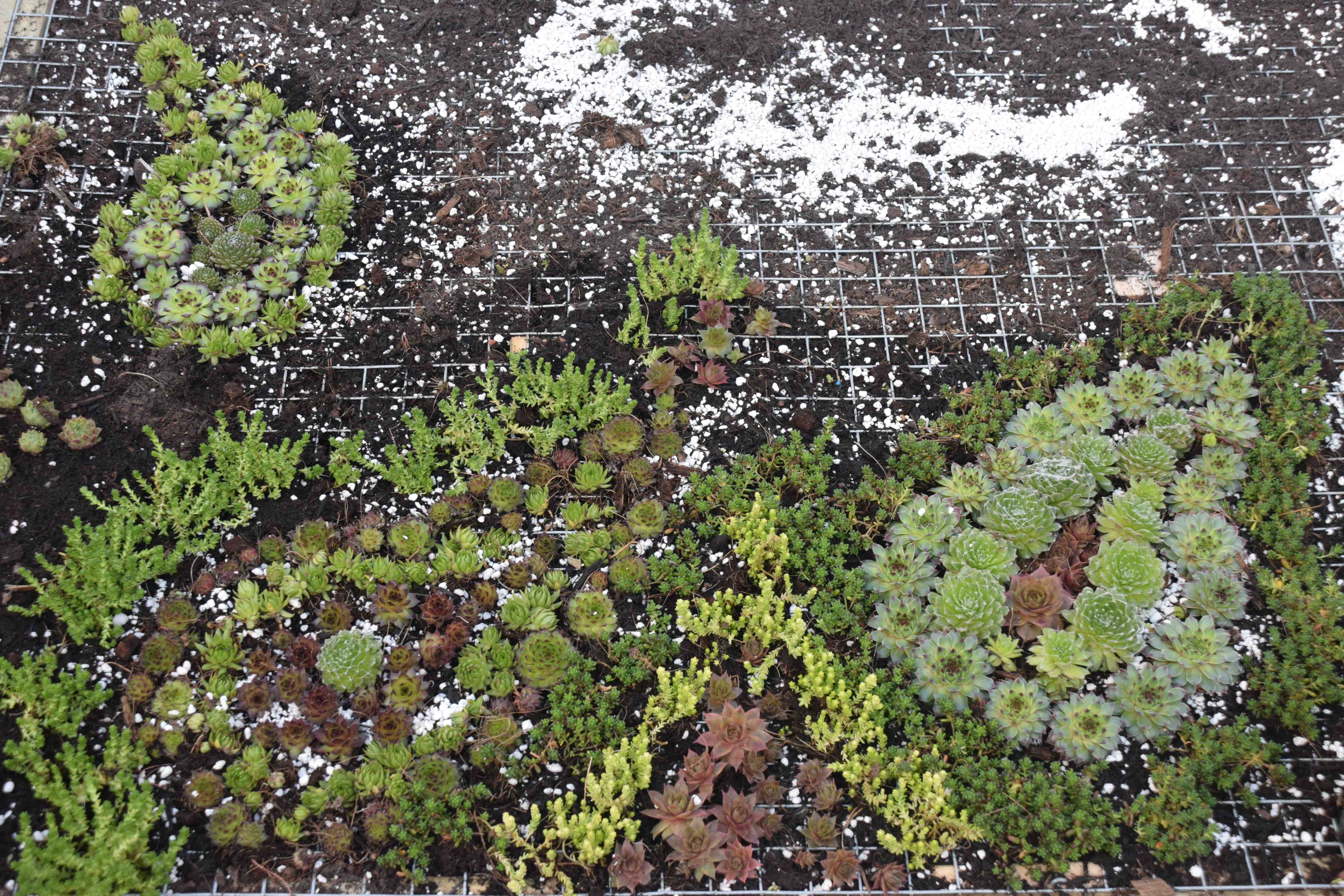 I bought a load of mixed sempervivums and sedums for the planting. The sedums are not ideal as I know they will have to be trimmed or they will overwhelm the sempervivums but I was a bit limited for the plants. Anyway, I split the plants so I could make the intricate pattern and so far so good.