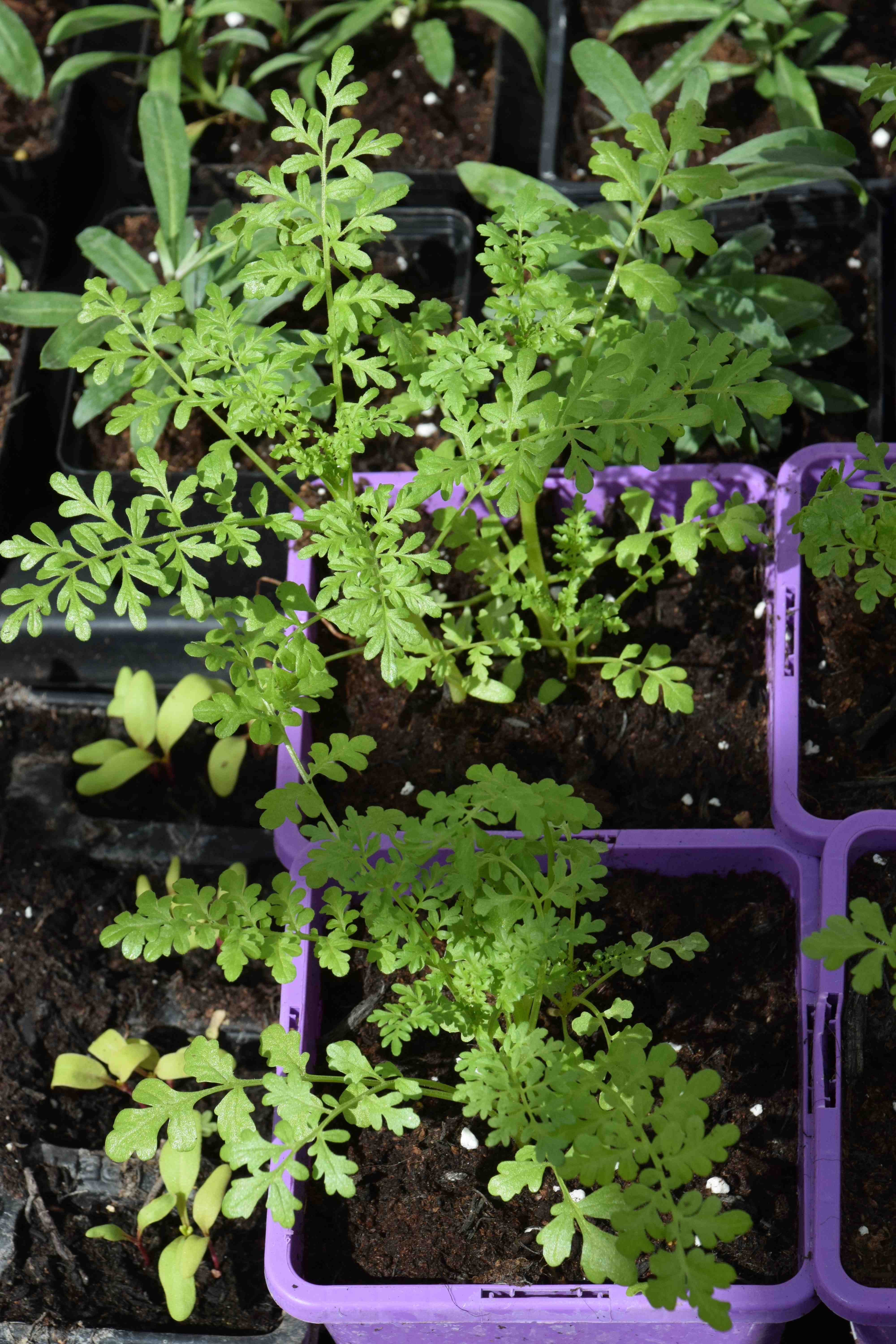 Not something I grow every year, this is Chenopodium capitatum, sometimes known as strawberry sticks or strawberry blite. Related to spinach, it has leaves that can be eaten and berry-like fruits that look tasty but prove that looks aren’t everything. I sowed a couple of seeds per cell. I will plant out at the end of April.