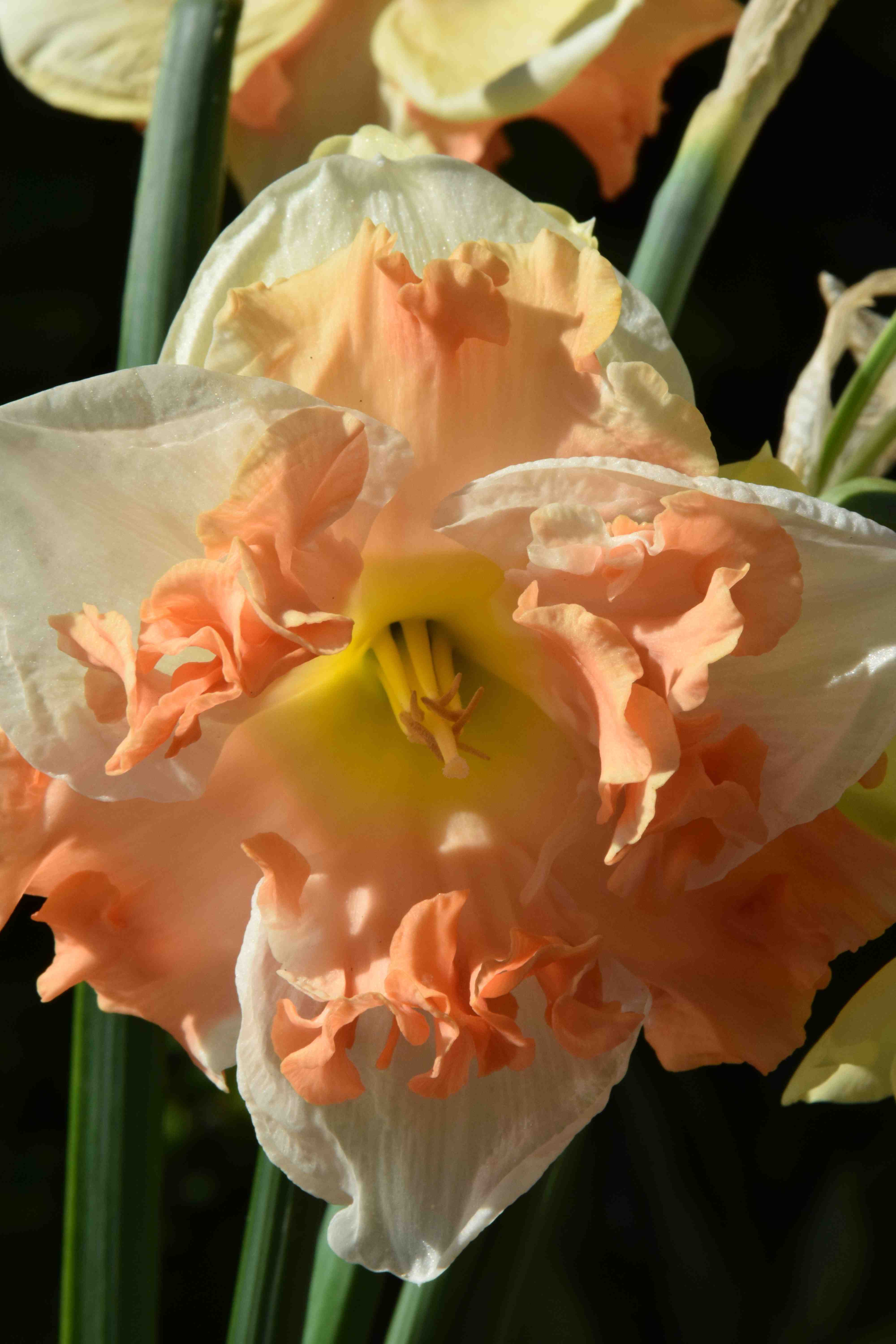 Although I would not like them ‘instead’ of ‘normal’ daffs, I do like split corona daffs. The cup or trumpet is split into six segments that lay flat against the true petals and have an interesting look. The early ones were a bit ugly really but as they have been developed and the cup segments have got more frilly and showy I think they have become much prettier. I know they are not for everyone and I know ‘they don’t look like dafodils’ but they are pretty in their own right I think. ‘Vanilla Peach’ is interesting and the cream petals become deeper in colour as the flowers age. I can’t really love it because it reminds me too much of nylon knickers that have been washed too often – not that I have much experience of such things.