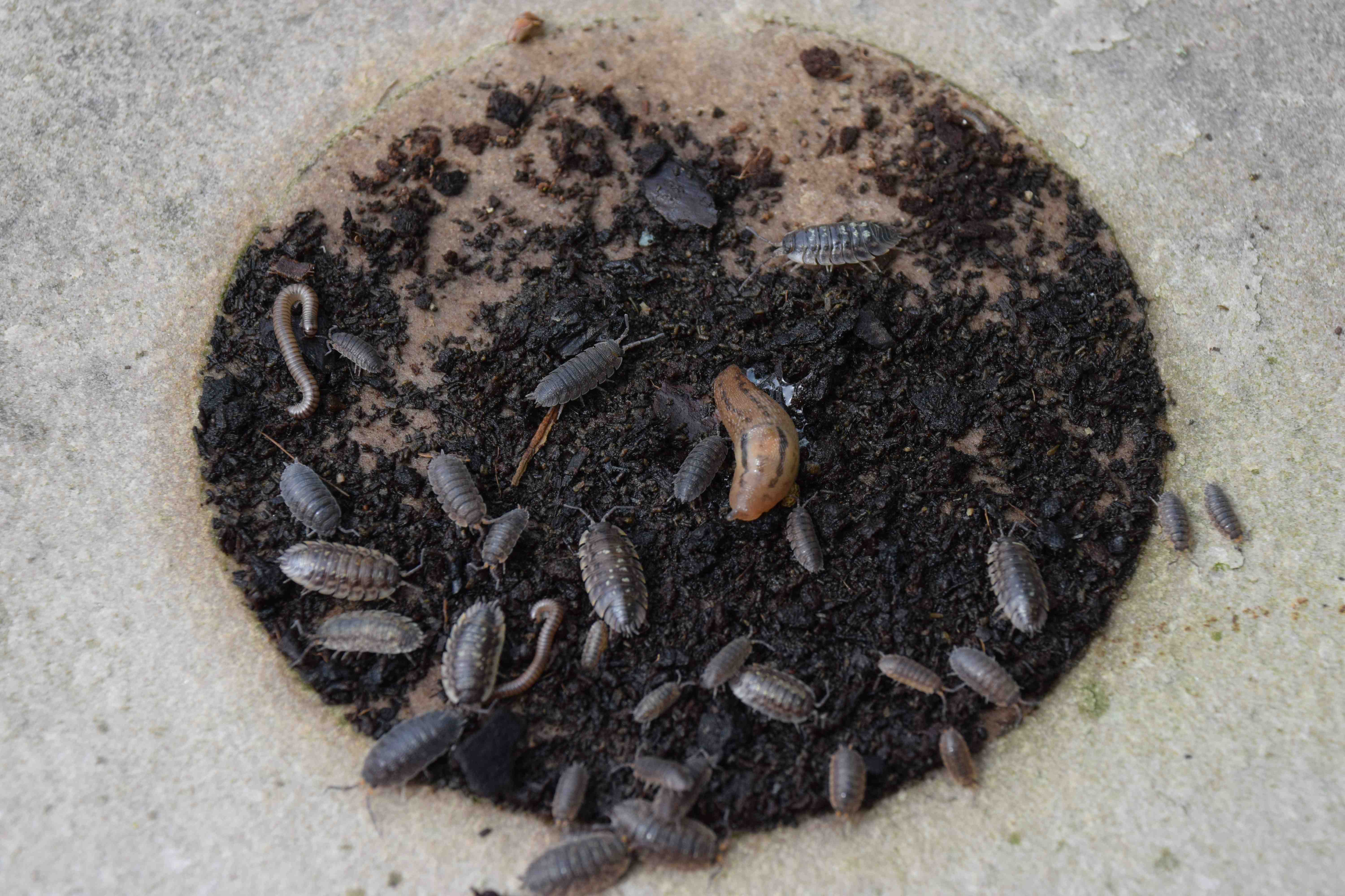 There has been a pot sitting on the patio all winter. It had a coloured zantedeschia in it last summer and I didn’t look after it and it is well and truly frosted. So I finally cleared it away and made a whole community homeless. At least two species of woodlouse, two millipedes and a slug all had to crawl off and find new places to live.