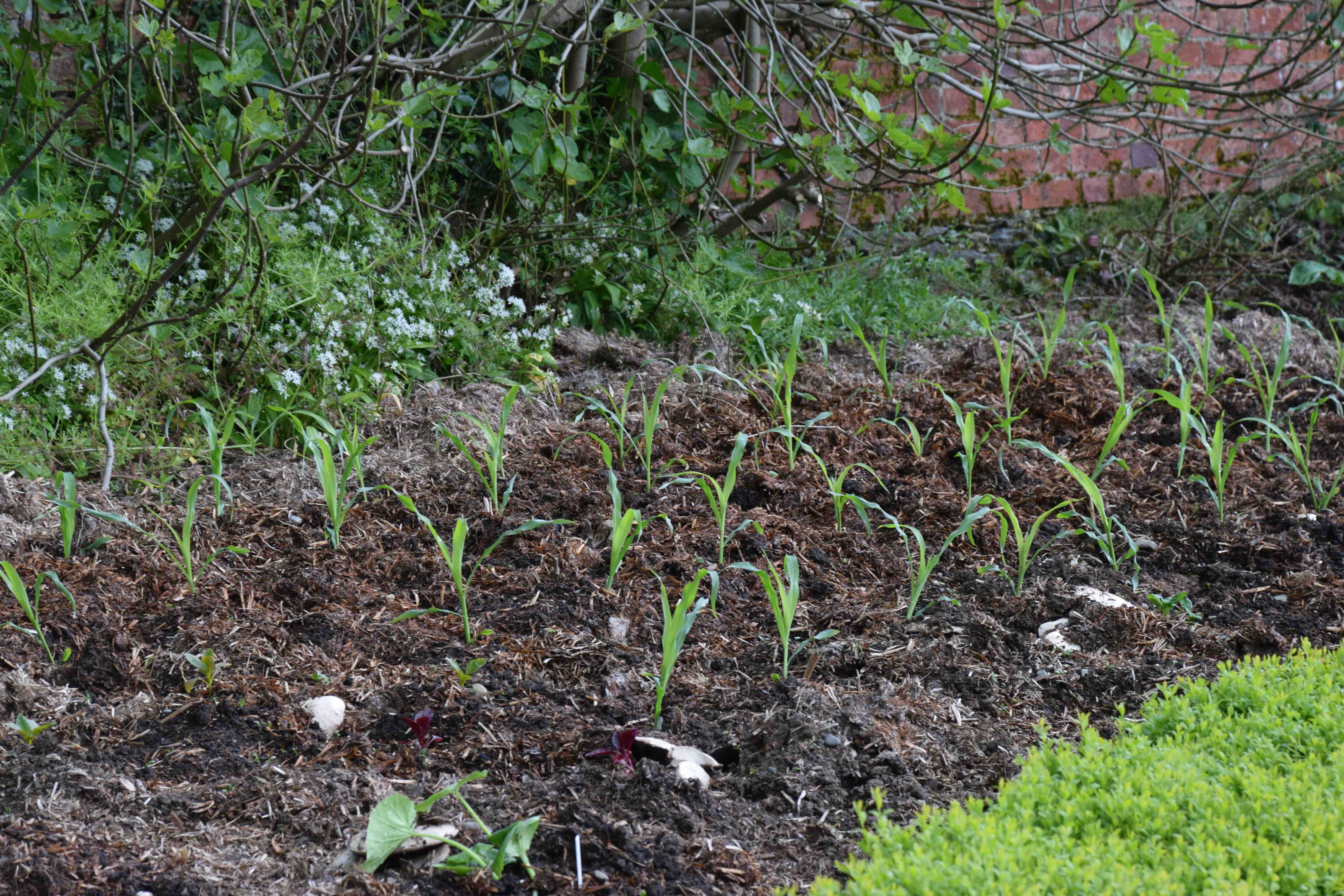 The area is a south/west facing bed with a wall behind and the area was covered in mushroom compost and rotovated (hence the mushrooms).