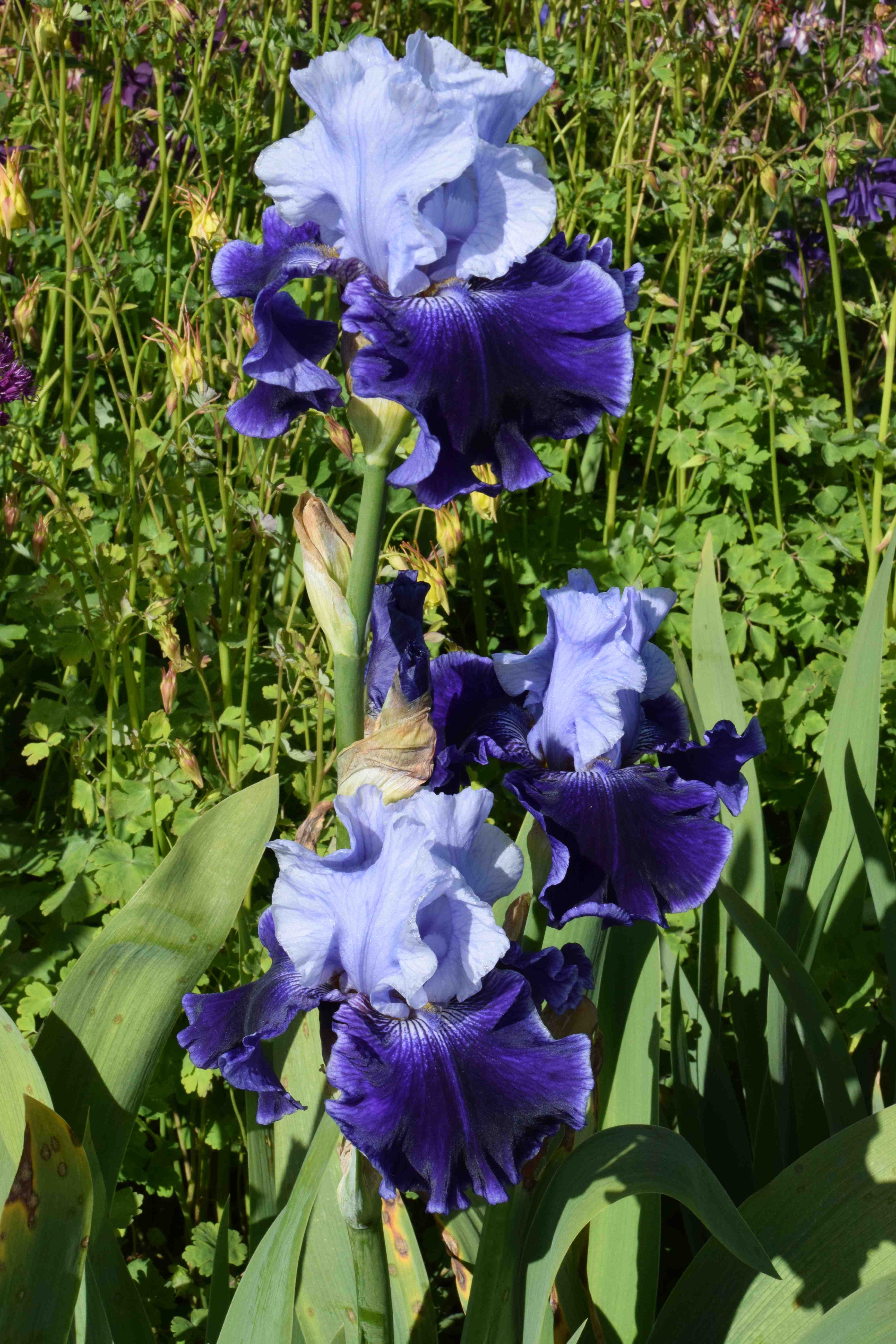 This blue amoena was introduced in 1998 and if described as having icy white standards and inky blue falls. Well maybe the weak Irish sun doesn’t have the power to bleach out that blue in the standards but they are not really ice white, even though I accept that ‘icy white’ and ‘milk white’ will have some blue in them. The blooms are large and nicely ruffled but are fairly weather proof. The falls are striped in the centre of the flower and the beard is a contrasting gold.