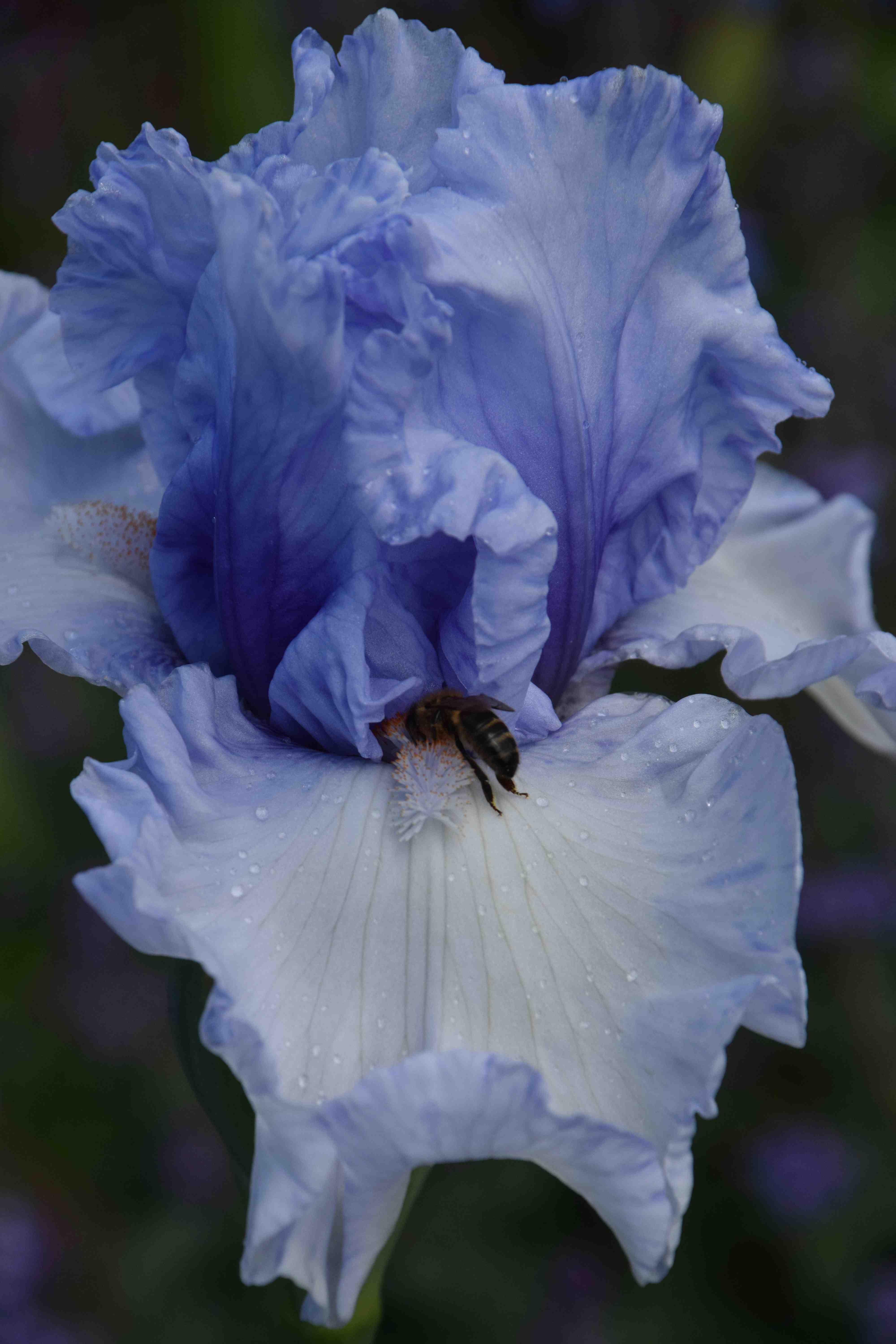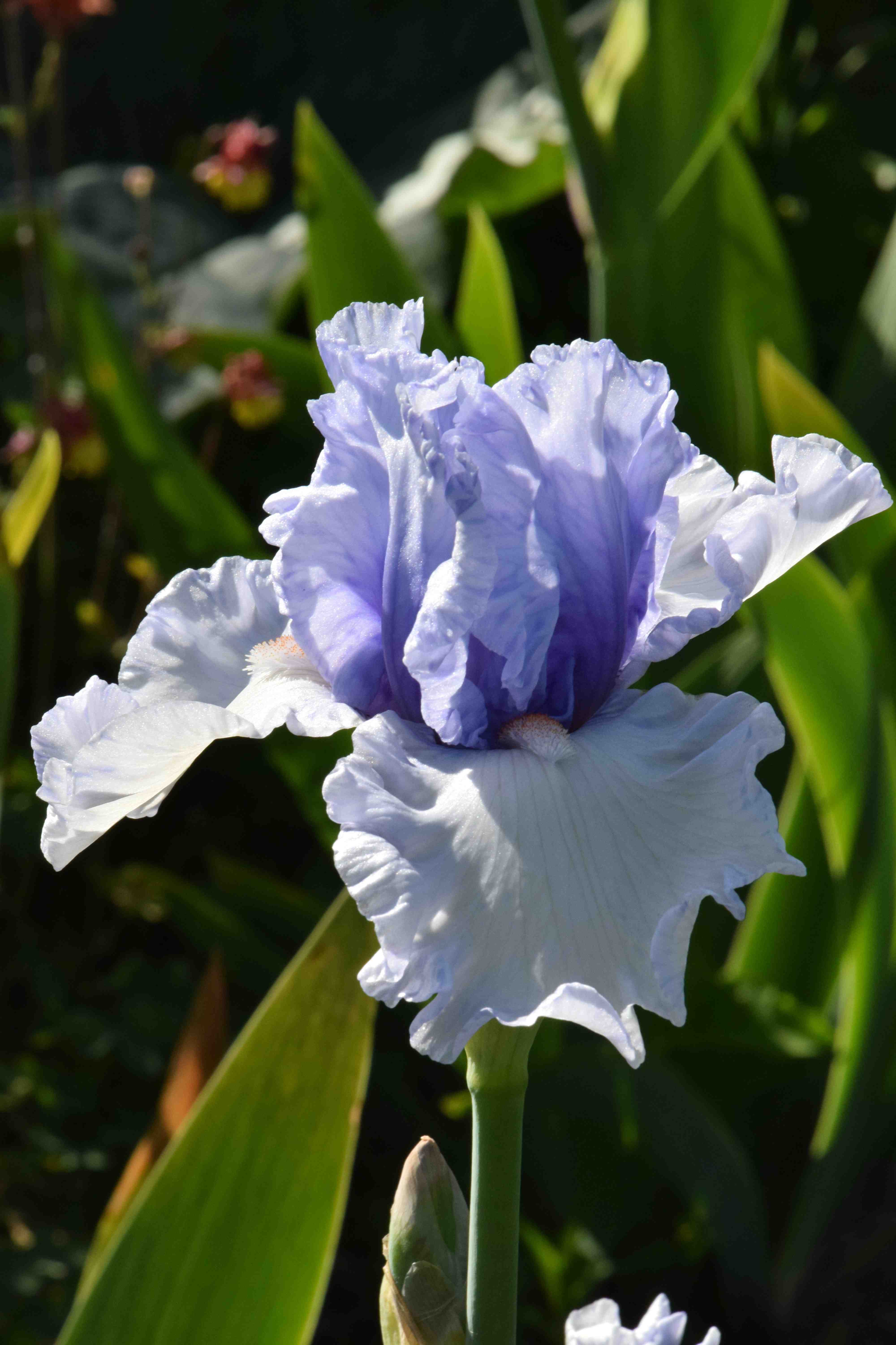 It is difficult not to love blue iris; whatever shade of blue they always look amazing and so natural. In fact, true blues are not as common as we often think – there is often a hint of purple in them. The amoena pattern with light standards and darker falls always look soft and cloudlike and are among my favourites but, because I am so perverse, I like reverse amoenas even more, with their darker standards and light falls. These are not that common and the colouring is fairly subtle so far but among my favourite iris is ‘Crowned Heads’ (1997, Keith Keppel) which is as good as it gets. ‘La Part des Anges’ is a French iris along the same lines from Cayeux, bred by Michelle Bersillon (2008) – an American now living in France, that is a subtle creature with standards slightly deeper than the falls but with a richly tinted midrib that creates some real depth to the blooms. They are large, ruffled and slightly fragrant and held on good, strong stems. It is a child of the beautiful ‘Fogbound’.