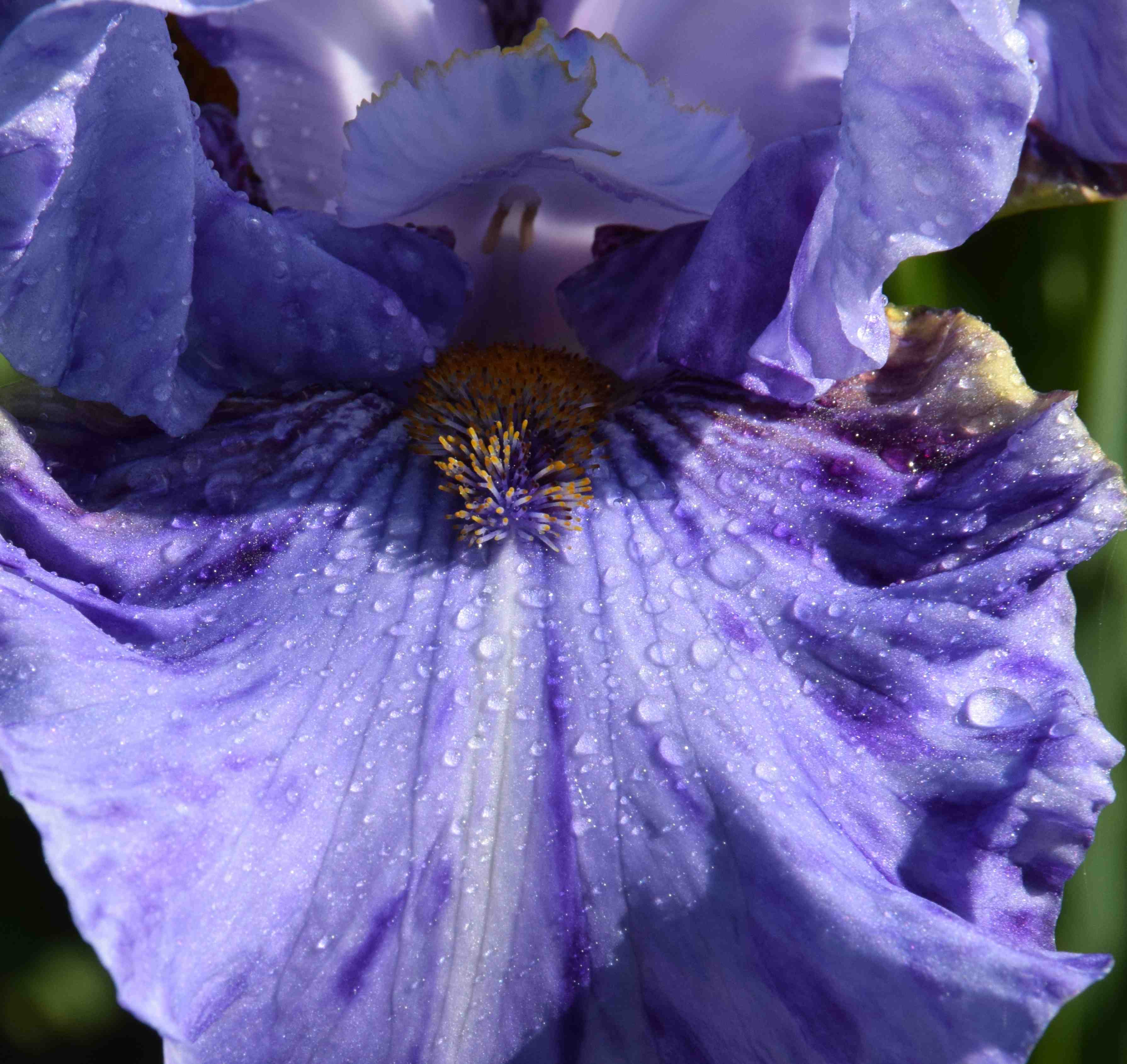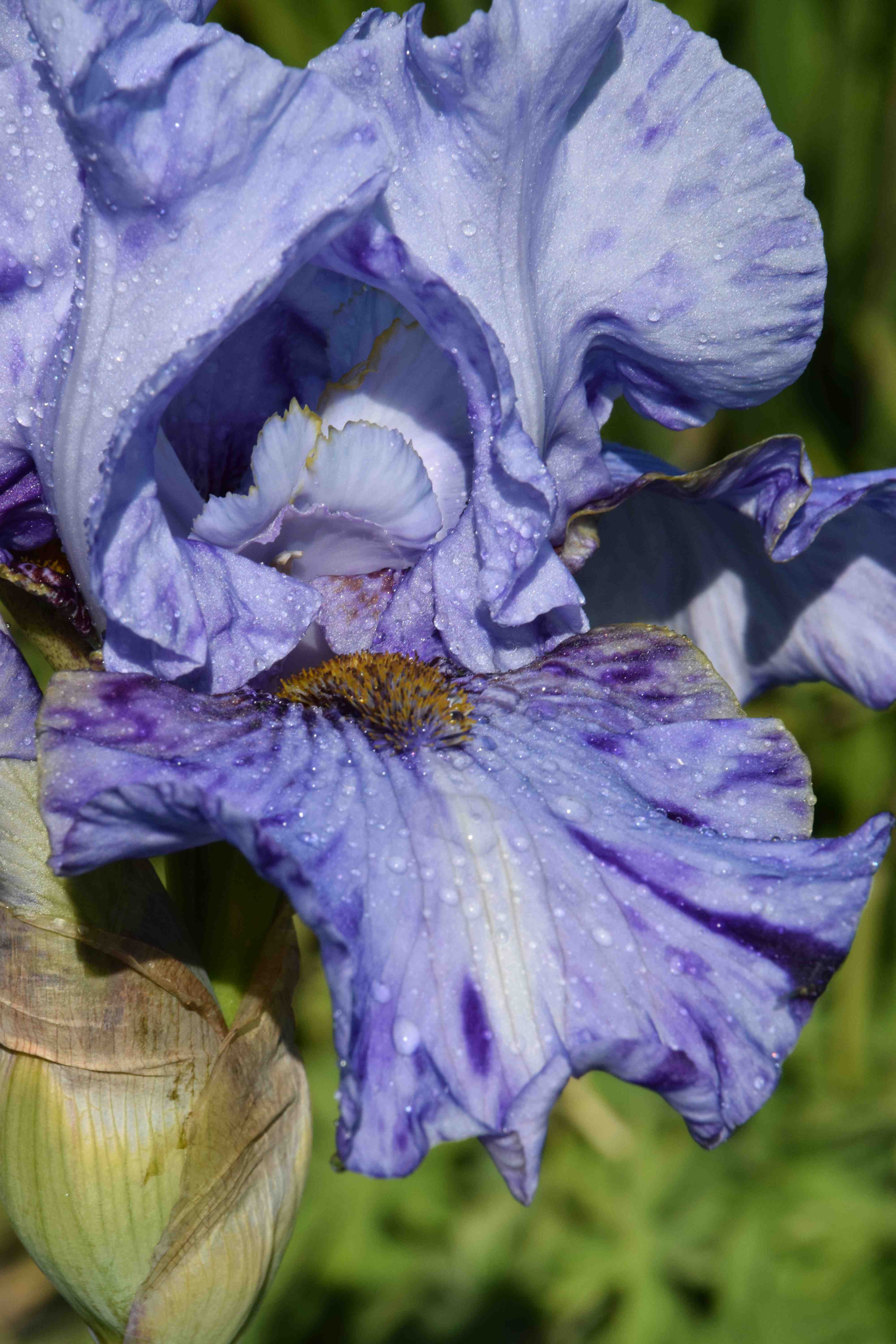 The blooms are moderate sized and a lovely light violet blue with darker streaks that are most pronounced when the flowers first open but fade a little as the flowers age. The bronzed beards match the tips of the style crest in colour. The stems are good enough to hold the flowers well and it grows moderately fast. The flowers have a  light, sweet scent. It owes its looks to Brad Kasparek, being a hybrid of his ‘Gnu’ and Schreiner’s inky ‘Hello Darkness’.