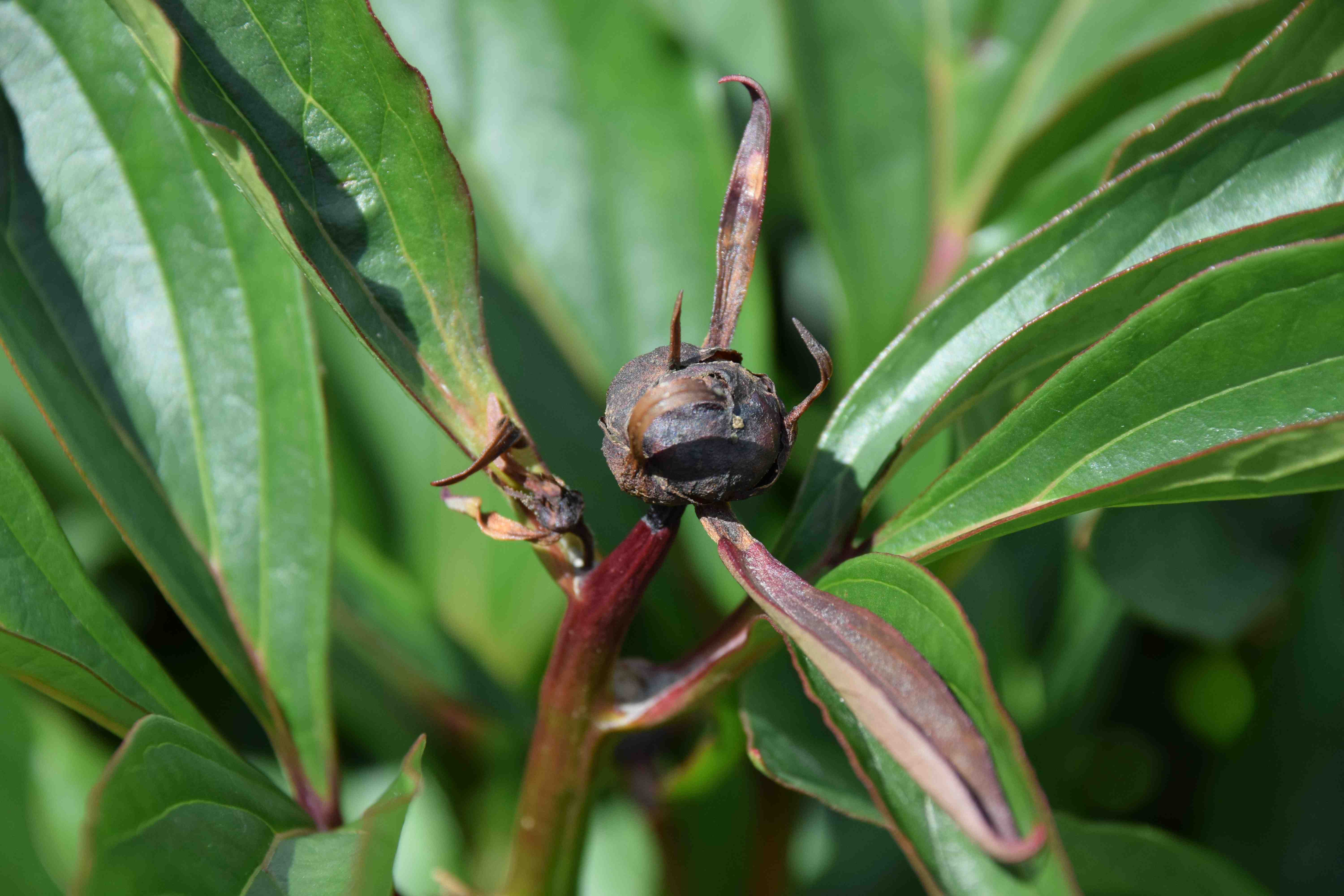 Although I was here at the tail end of the season it is clear that not all the peony buds opened and I could see that quite a few were affected by peony blight. I see that the Royal Horticultural Society call this peony wilt but it is the same thing – Botrytis paeoniae. This fungal disease is closely related to common grey mould (Botrytis cinerea) and, like that disease, there is no effective chemical control. The most common symptom is for the buds to wither and turn brown or black when pea-sized but shoots can also wither and collapse at a young stage before the leaves have unfurled and there may also be red and brown patches on the leaves.
