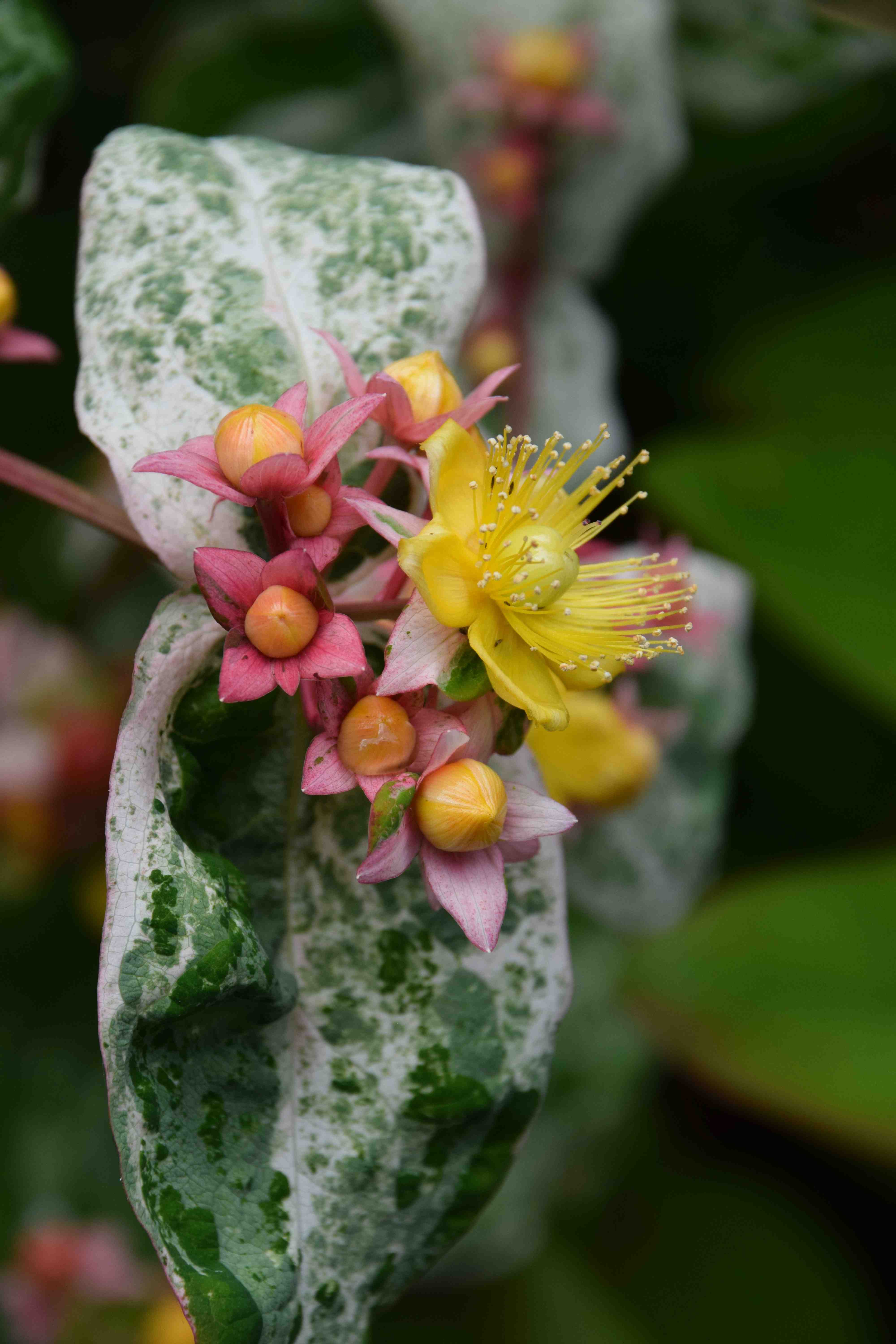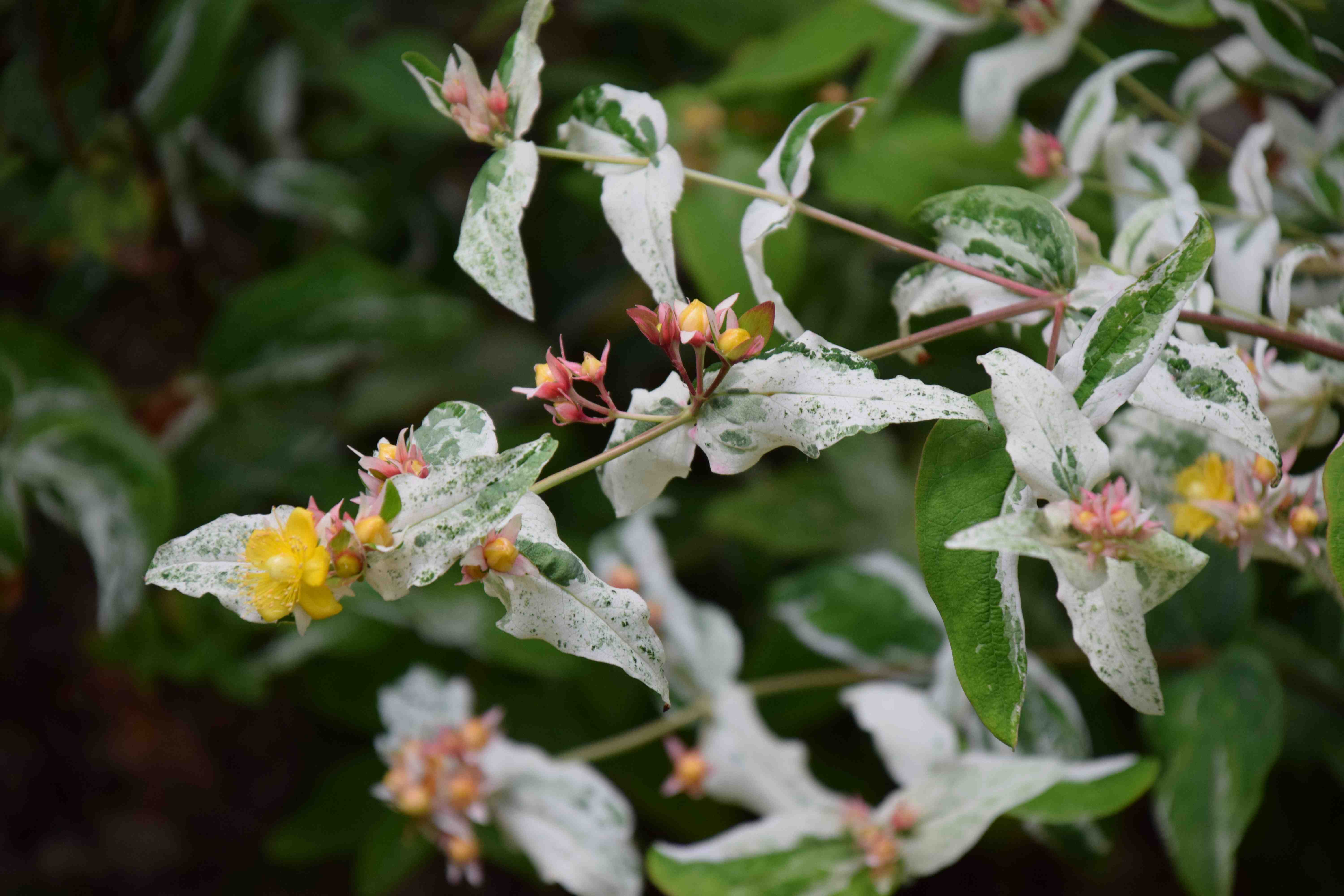 Not only is this a hypericum but it is variegated in my least favourite way. The leaves are usually distorted and narrow if there is a large area of variegation and the irregular splashing of white with tinges of pink, might make you suspect there is a bird nest aloft. And then the yellow flowers are highlighted by pink flashes in the calyx – my least favourite colour combination!