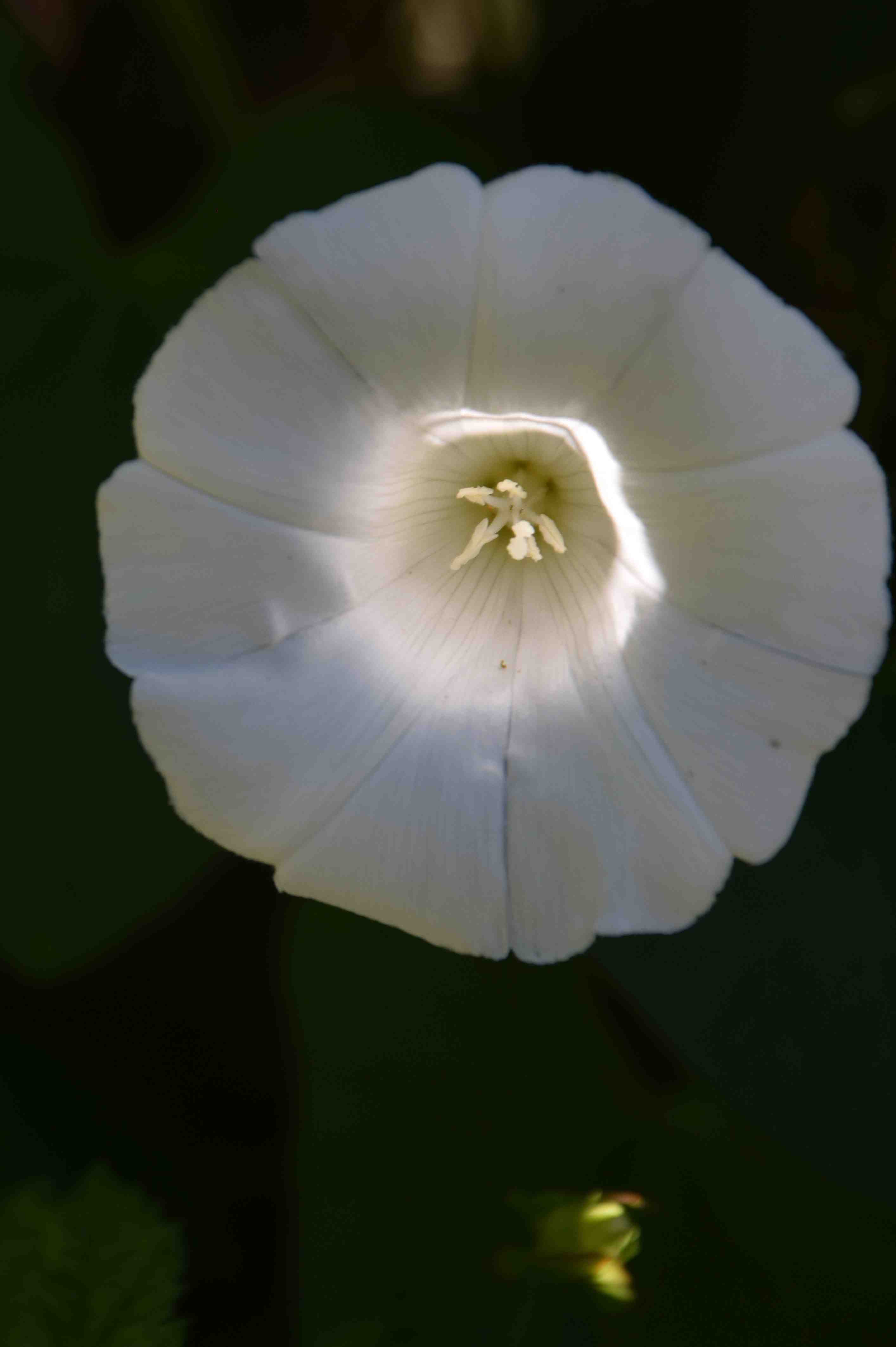 So I was out with my gel yesterday and something unusual caught my eye. A shaft of sunlight (unusual enough you may say) had pierced the canopy of foliage and, at that precise moment, had hit the back of one of the white trumpets. Luckily I had my camera by my side so managed to take a (not very good) photo of the amazing way the sun had illuminated the bloom. Even the most annoying weed can look beautiful sometimes.
