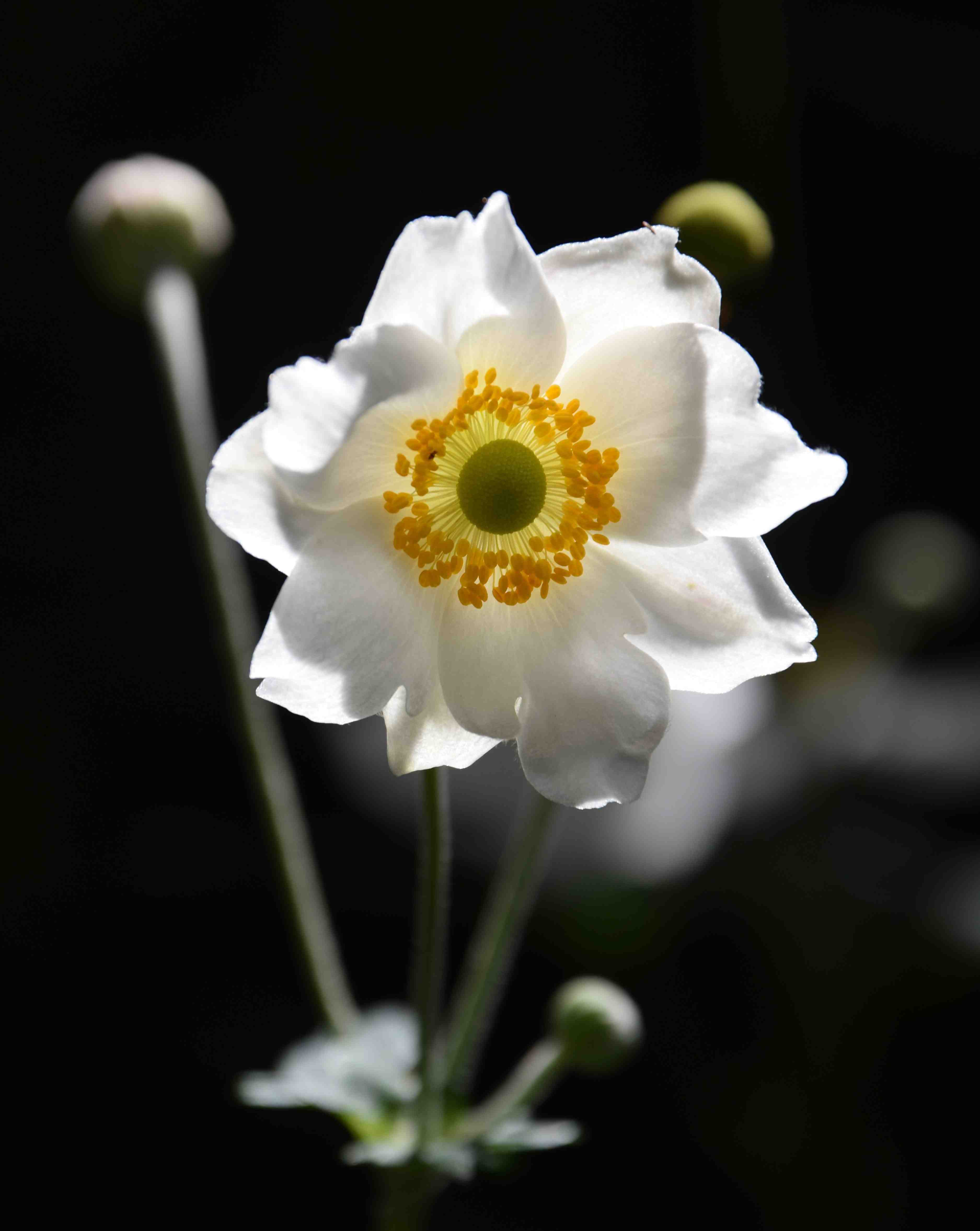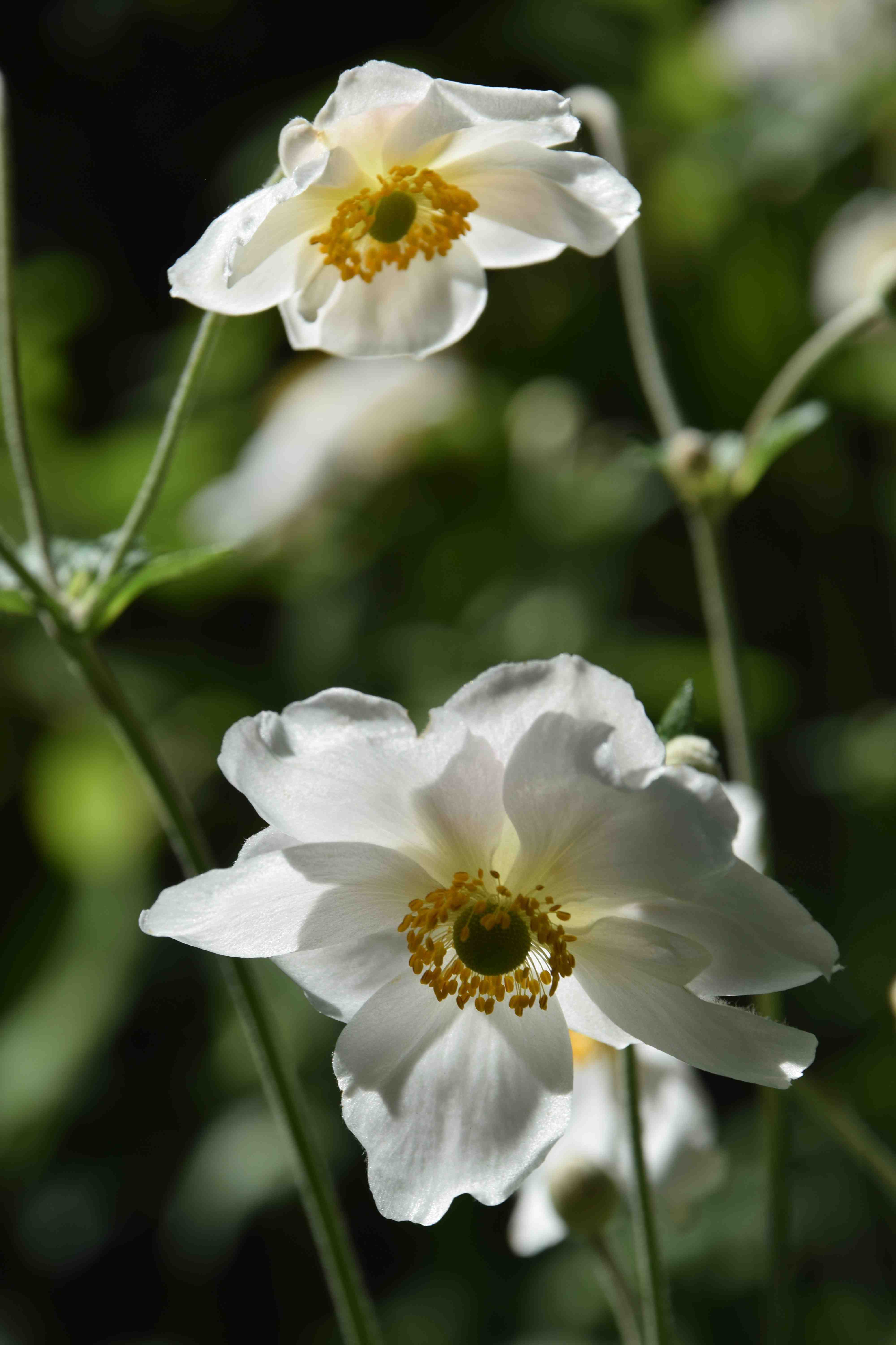 I have long been a fan of Japanese anemones*. They are great garden plants and so easy to grow. As a child I was fascinated by their simple-looking flowers on strong, wand like stems. Of course I was not bothered by the fact that they never need staking at that age nor that they drop their petals as they fade so a clump is always tidy. But I was fascinated by the green, spherical ‘seed heads’