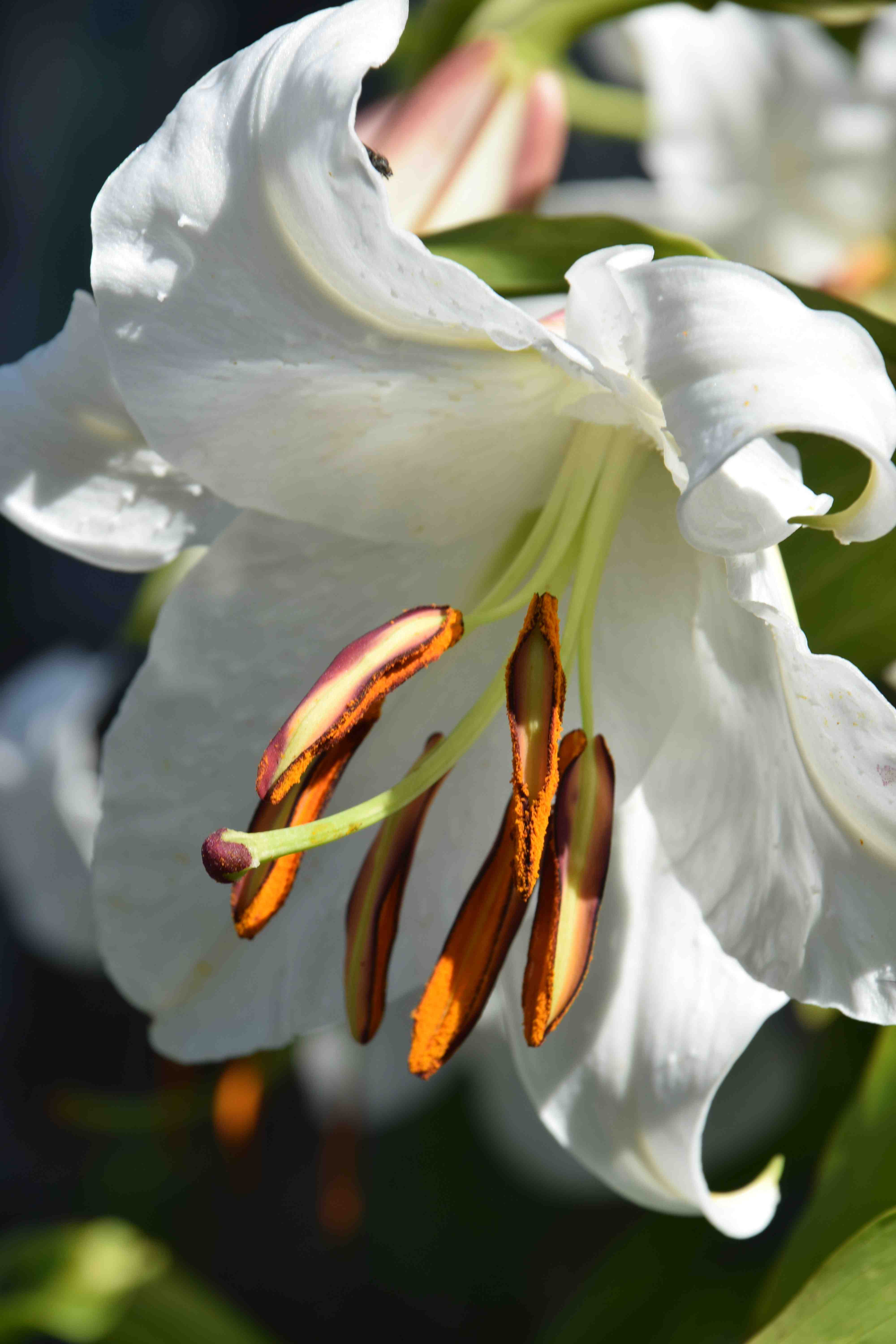 It is a tall plant, up to 1.5m high and there can be up to 10 large, pure white flowers per stem though 5-8 is more normal. The flowers open to almost 25cm across and are pure white with a green centre and the rusty stamens are a lovely contrast if you leave them in place. If you do and it rains then the flowers get stained. What makes this flower even better is the wonderful fragrance which is strong and amazing. Most Orientals are fragrant but this seems exceptional to me and I would always choose this one for the border or for a pot. In fact my plants have been in the pots for their third year and are still going strong.