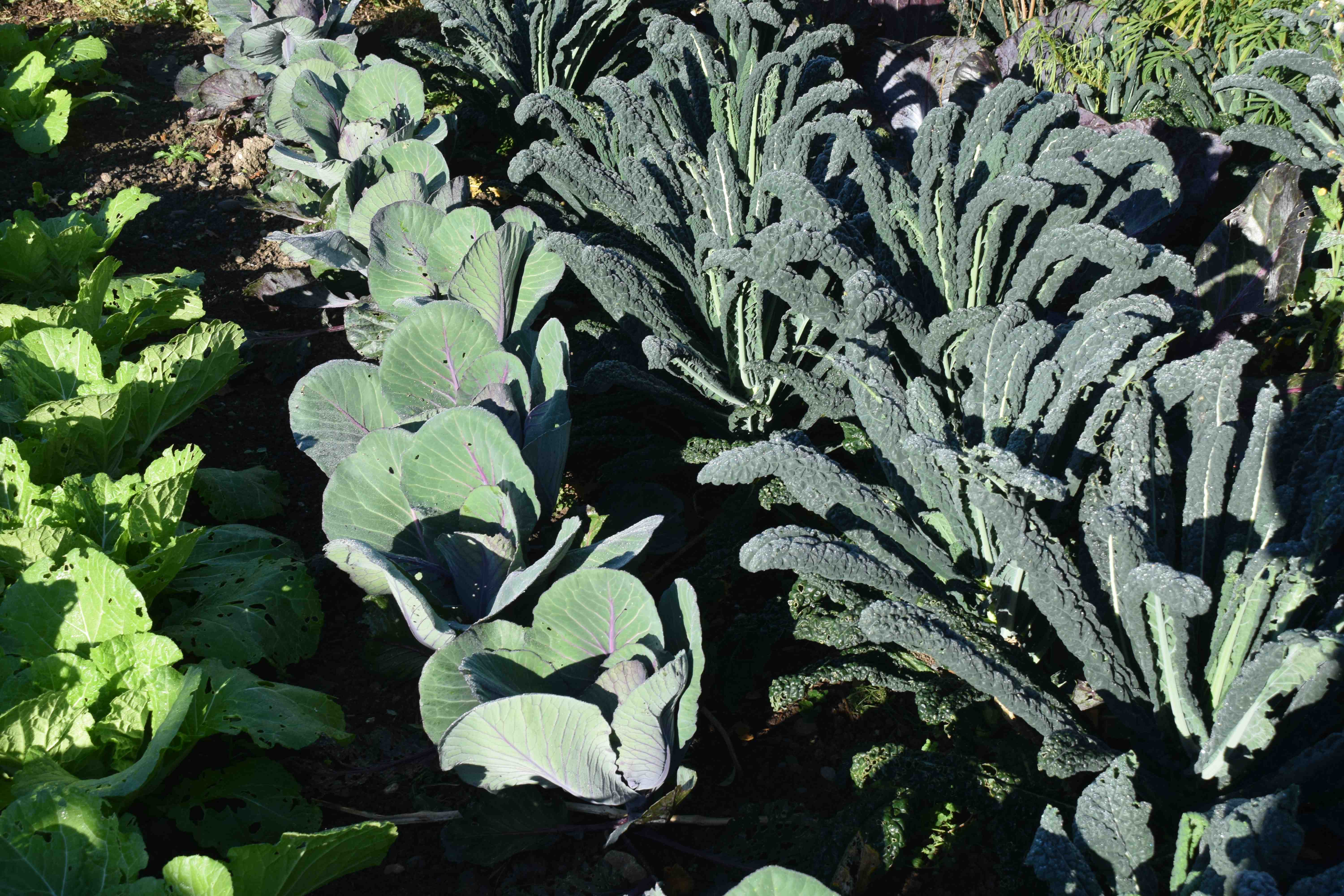 From left: Chinese cabbage, red cabbage and ‘Cavalo Nero’ kale