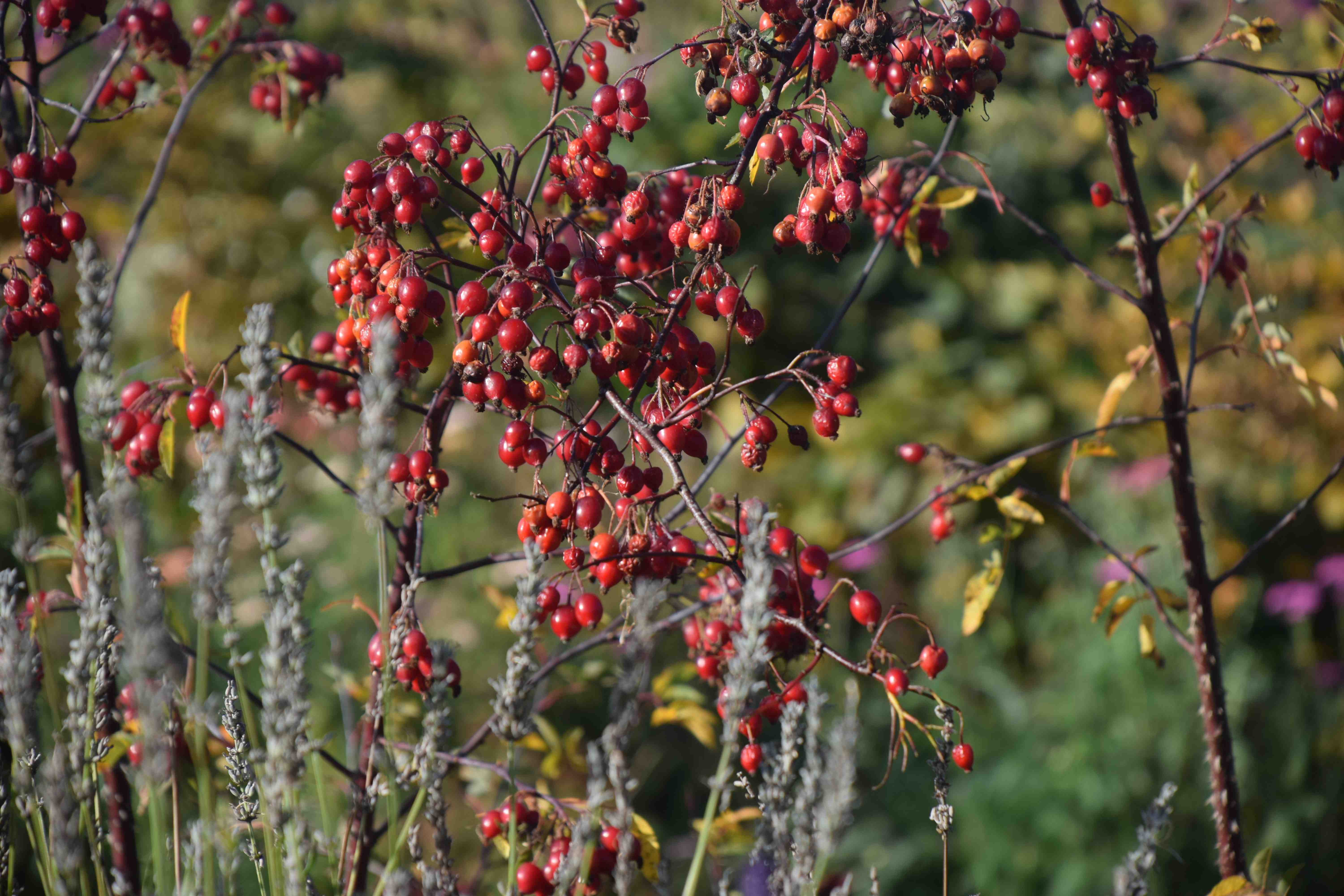 It is a good choice for a loose hedge or you could easily mix some into a nature hedge with hawthorn and sloe. But it is also a good shrub for a mixed border and the colourful foliage is the perfect foil for other plants. What I especially like about the leaf colour is that it is not as artificial as some purple-leaf shrubs and doesn’t stand out like a sore thumb. The greyish tints  the foliage make it perfect with grey and white plants – think brachyglottis ‘Sunshine’ for an easy pairing or white Japanese anemone for late summer joy. But it also works with hot colours and you could use it as the basis for a fiery border with red dahlias, cannas and rudbeckias – the list is endless.