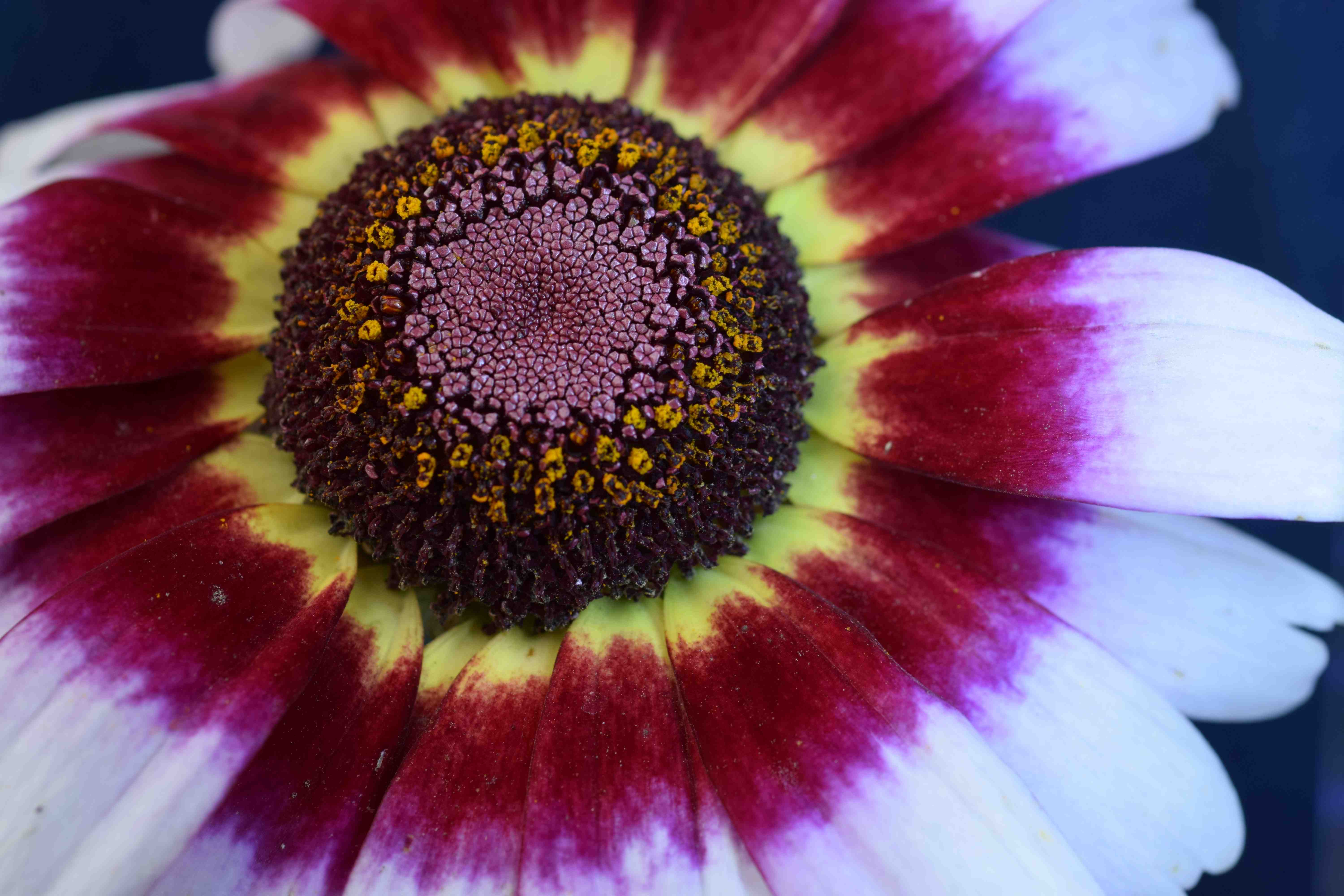 This hardy annual is Chrysanthemum carinatum, easily grown from seed and a good cut flower in a wonderful range of colours