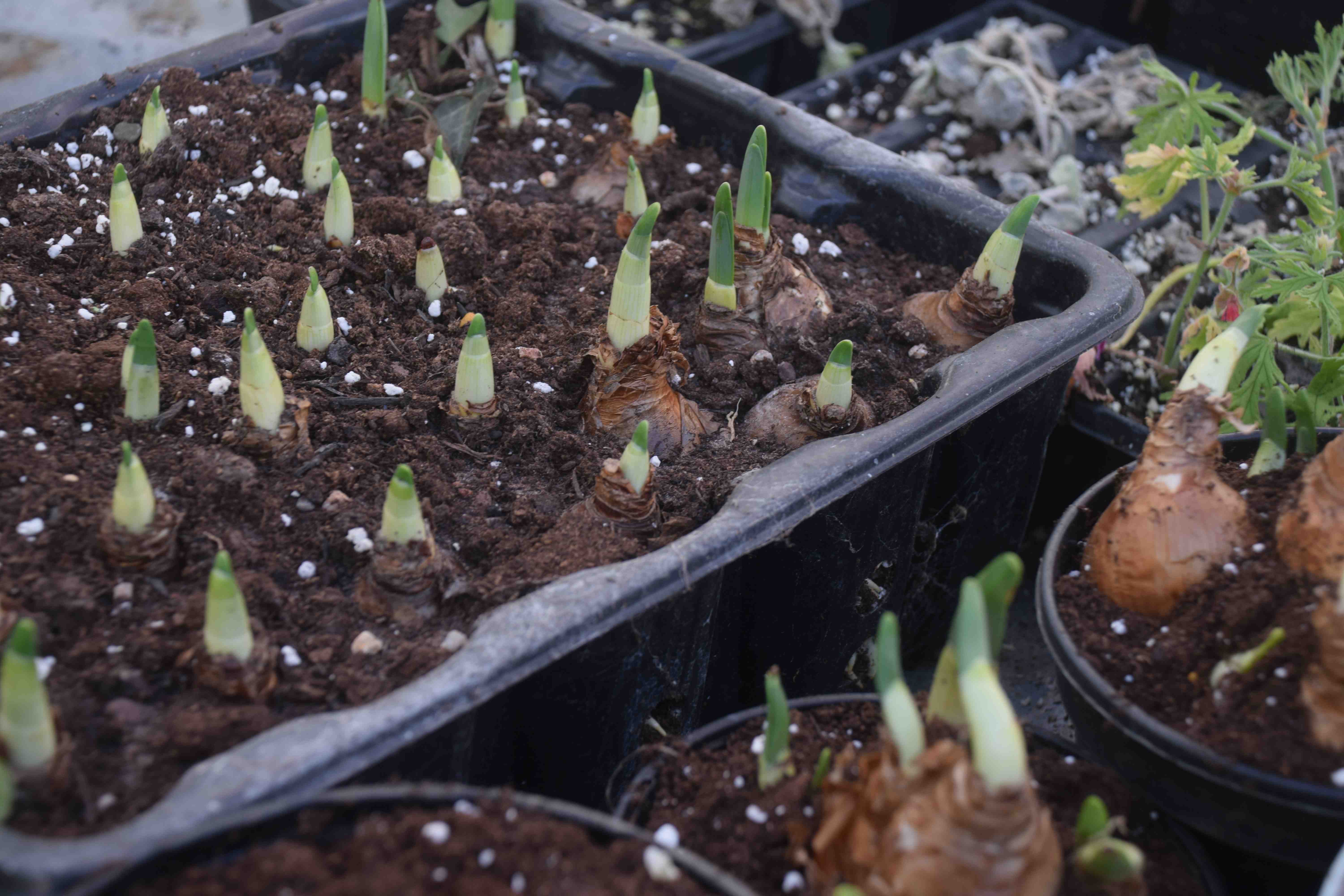 Now there is a bit more room in the heated bench I have moved some trays and pots of ‘Paperwhite’ and ‘Soleil d’Or’ in for a bit of a boost. I want these in flower for Christmas. The pots will be taken in the house as they are but the deep (mushroom) trays are for cut flowers. Both varieties are easy to force for early flowers and you can speed up flowering with more warmth or slow them down by putting them in a cooler place.