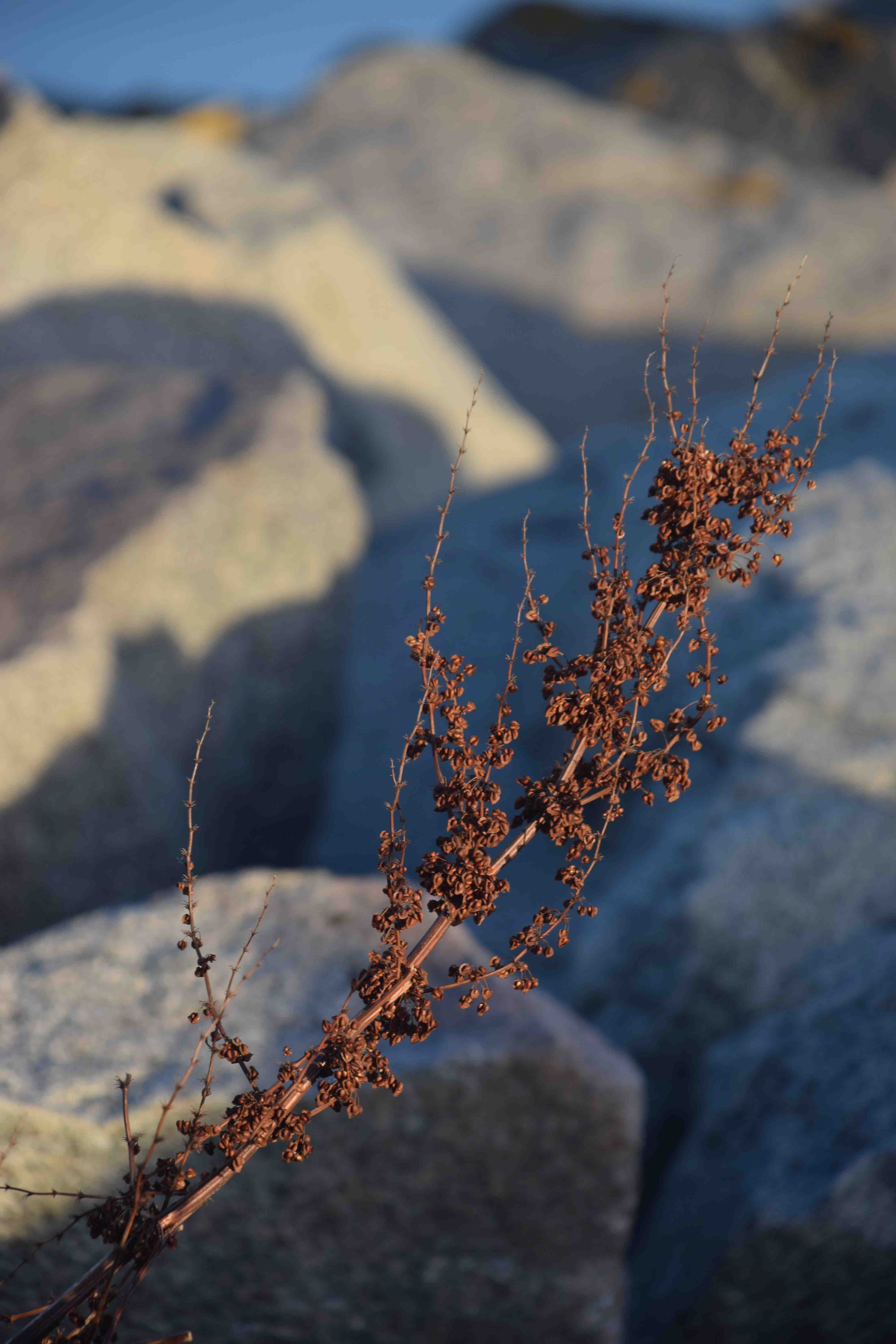 And so it was that I noticed this dead dock by the harbour in Warrenpoint. Though dead dock seedheads are hardly rare, the low light on them and the contrast with the huge grey boulders caught my attention.