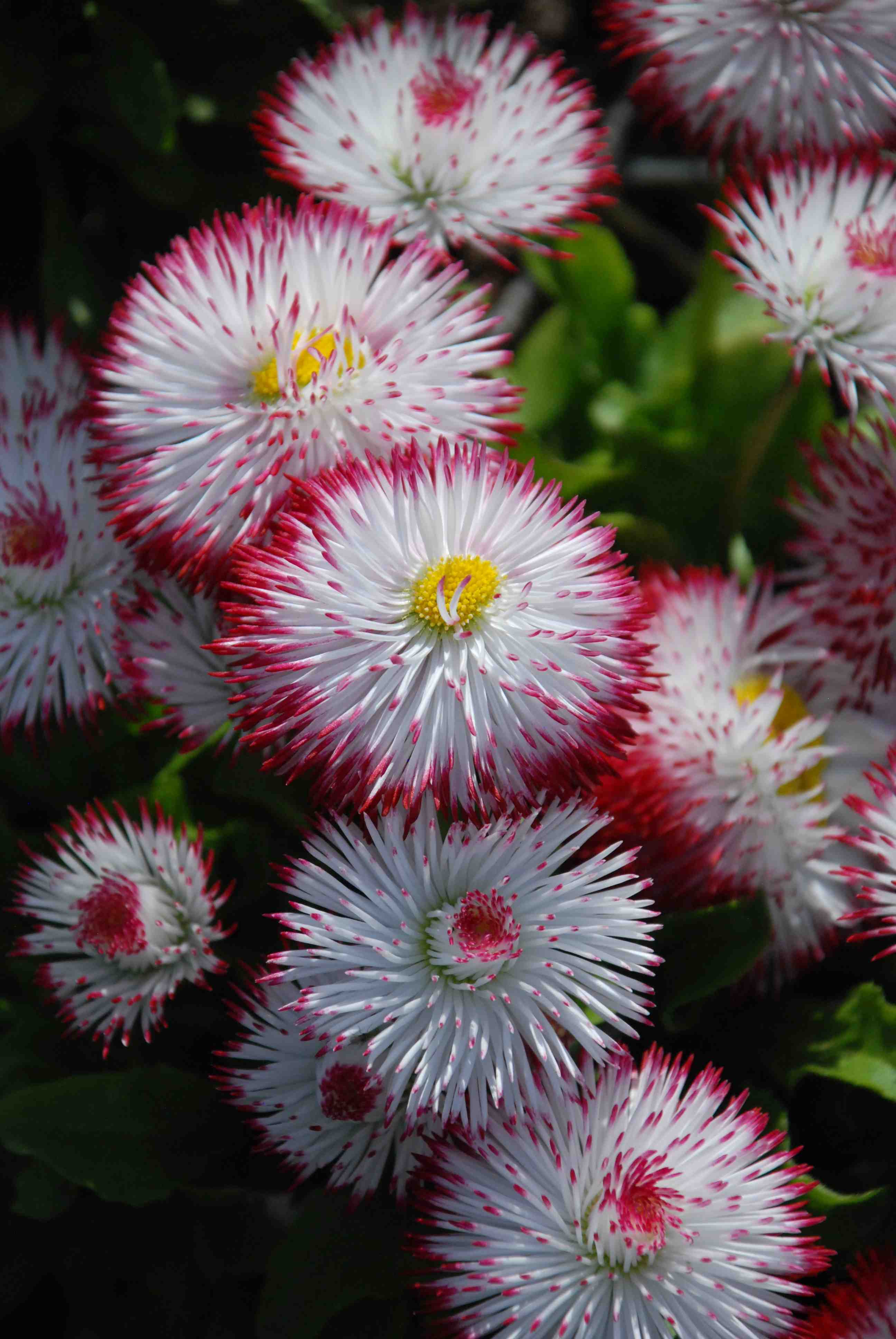My apologies for the delay in the answer to this but well done everyone who knew this was a daisy and congratulations to those who even knew the variety! It was Bellis perennis ‘Habanera white with red tips’.