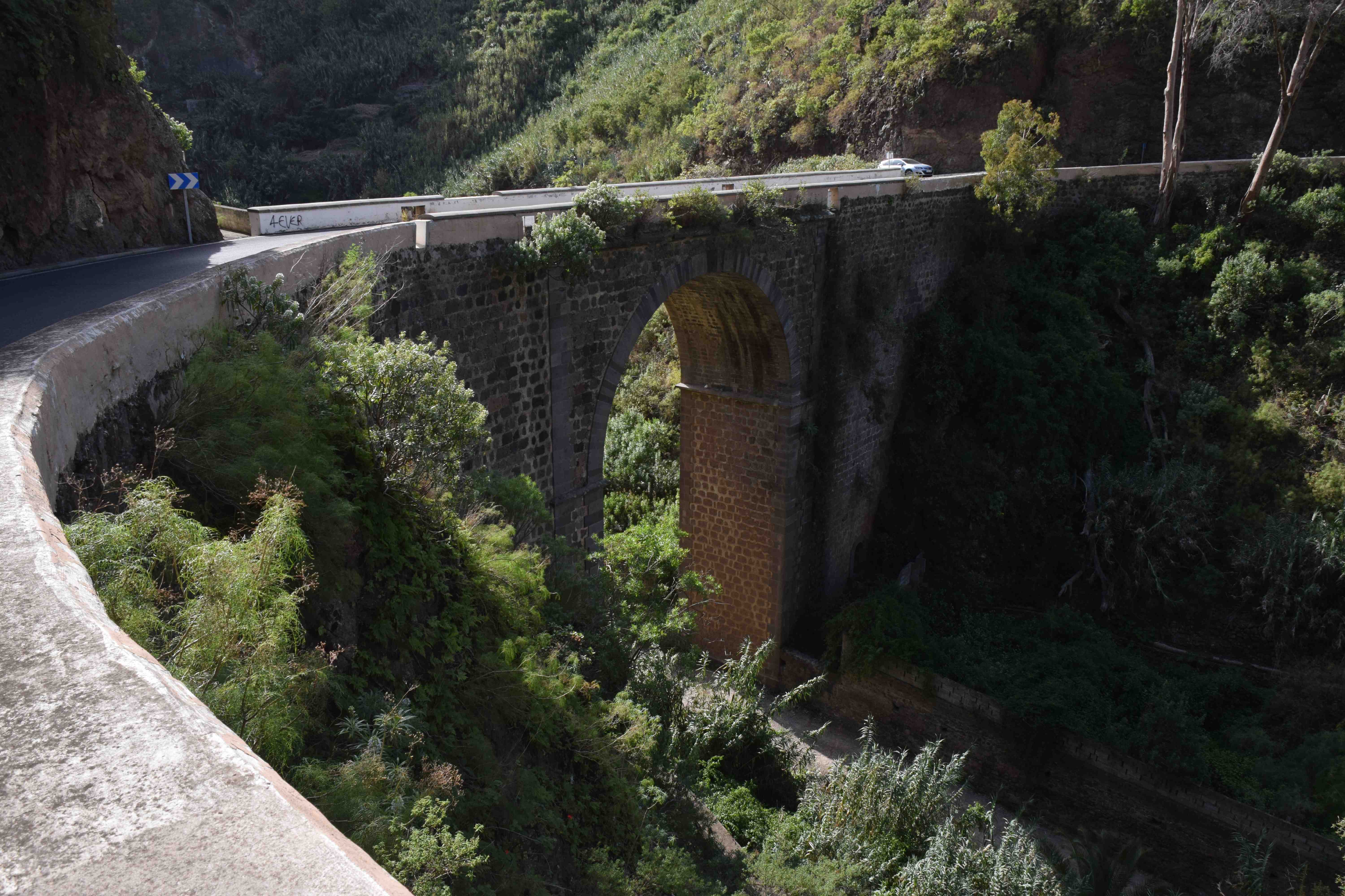 Not far away is the Barranco de Azuaje. The road follows the sides of the barranco and cross it at the narrowest part, furthest from the sea. In the narrow floor of the barranco are signs of cultivation of crops, presumably fed by one of the many springs.